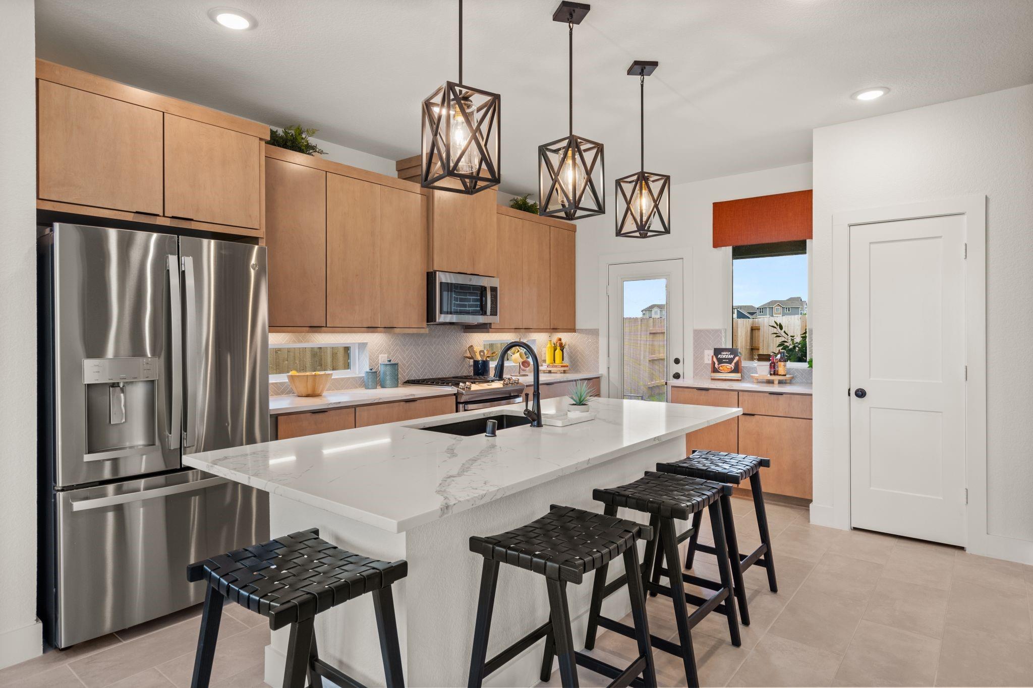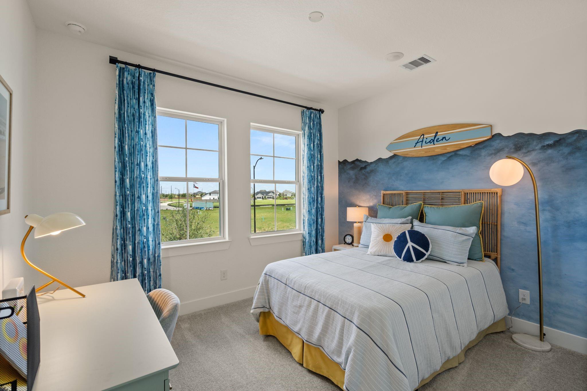 Introducing The Dynamic Dillon: Where Style Meets Functionality! Fall in love with this courtyard two-story home featuring 4 spacious bedrooms, 2.5 baths, and a versatile game room perfect for entertainment or relaxation. Enjoy a 2-car garage, covered front porch, and rear patio for effortless outdoor living. The first floor offers an open family room with a modern fireplace, casual dining, and a gourmet quartz-island kitchen—an ideal gathering space. Upstairs, retreat to the private owner’s suite with dual sinks, a luxury walk-in shower, and double closets. Secondary bedrooms with walk-in closets sit near the game room, creating a flexible hub for work or play. Premium features include GE stainless appliances, blinds, security and sprinkler systems, full gutters, and a fully sodded, professionally landscaped yard. The Dynamic Dillon blends elegance, comfort, and versatility—welcome home.