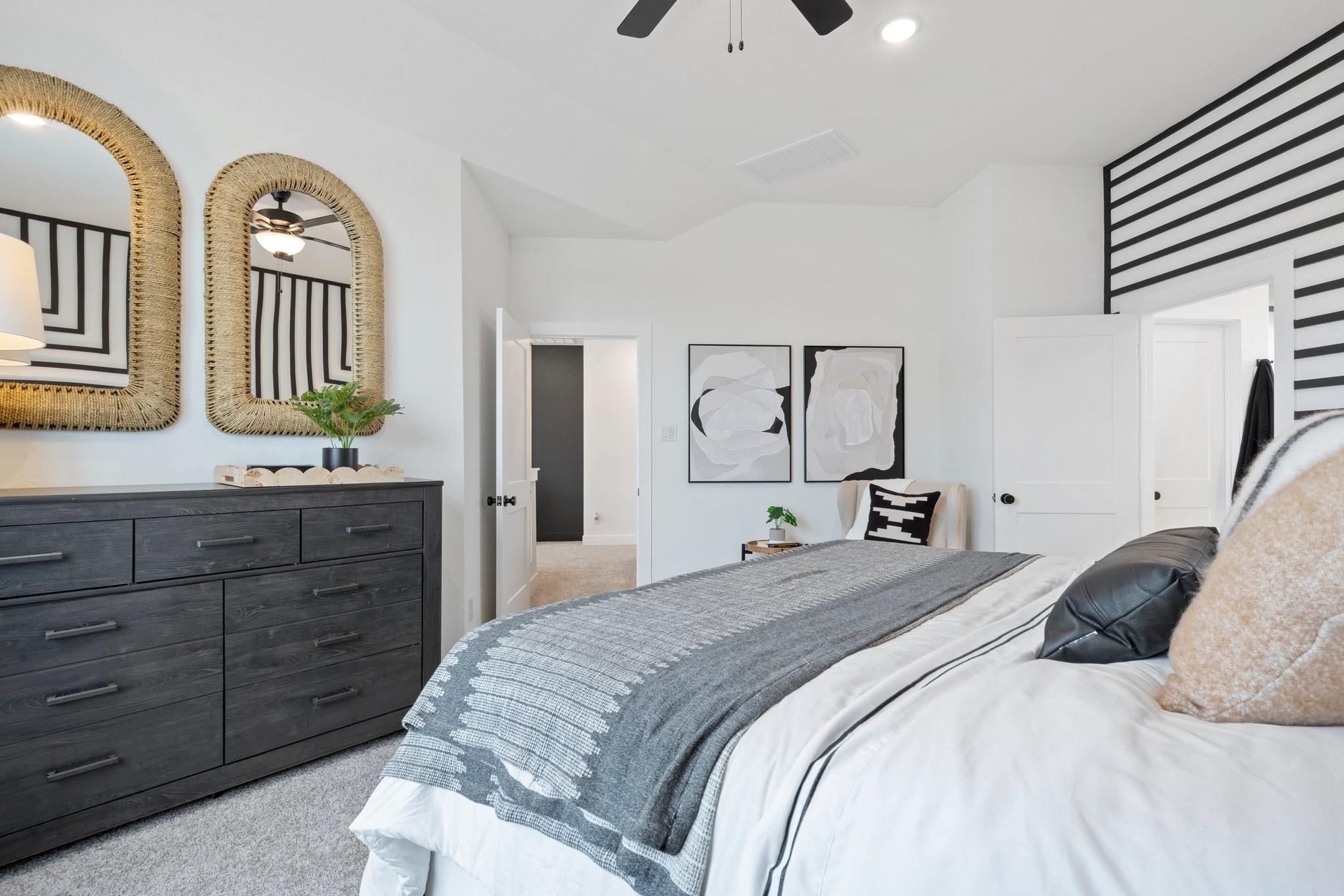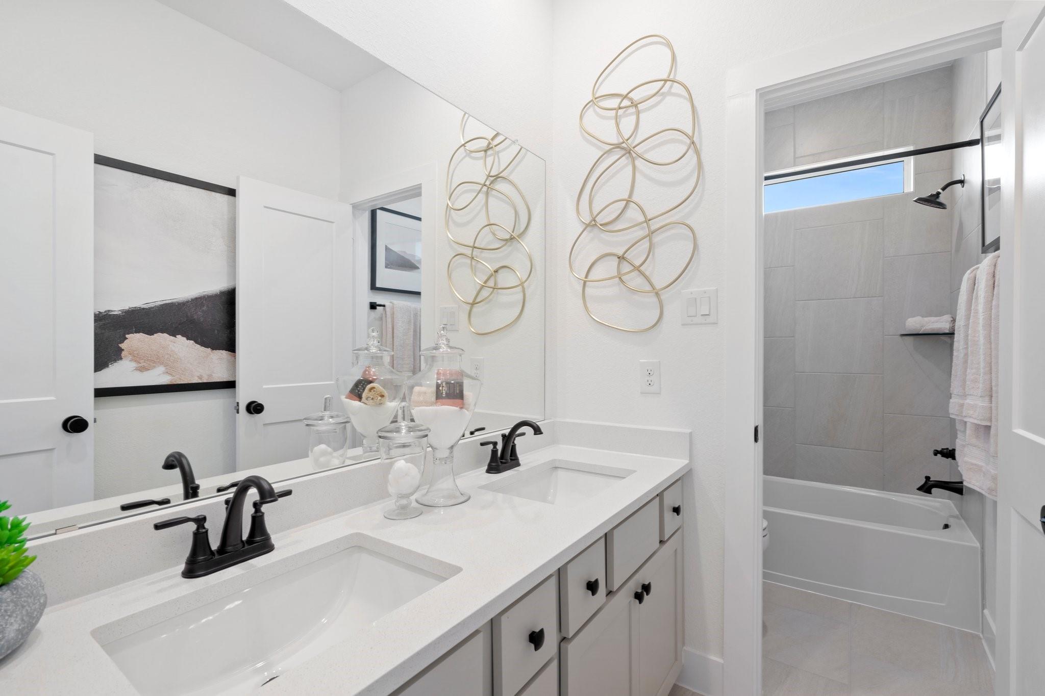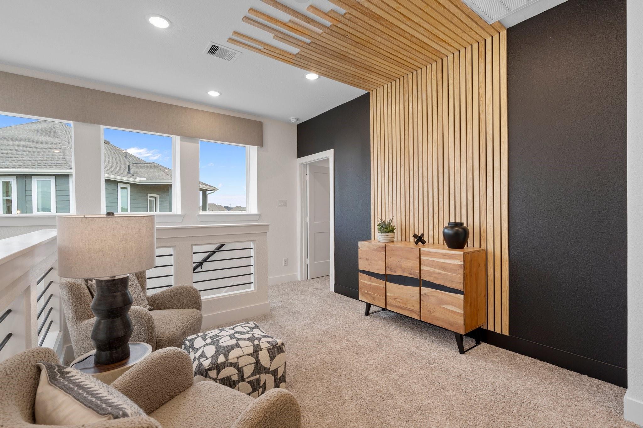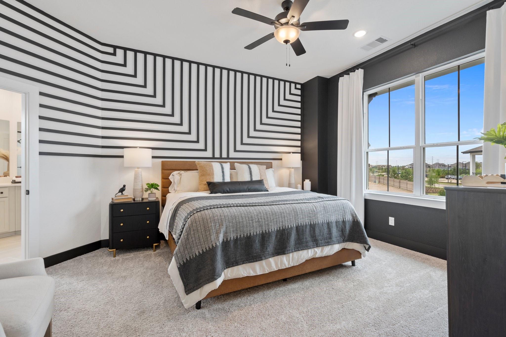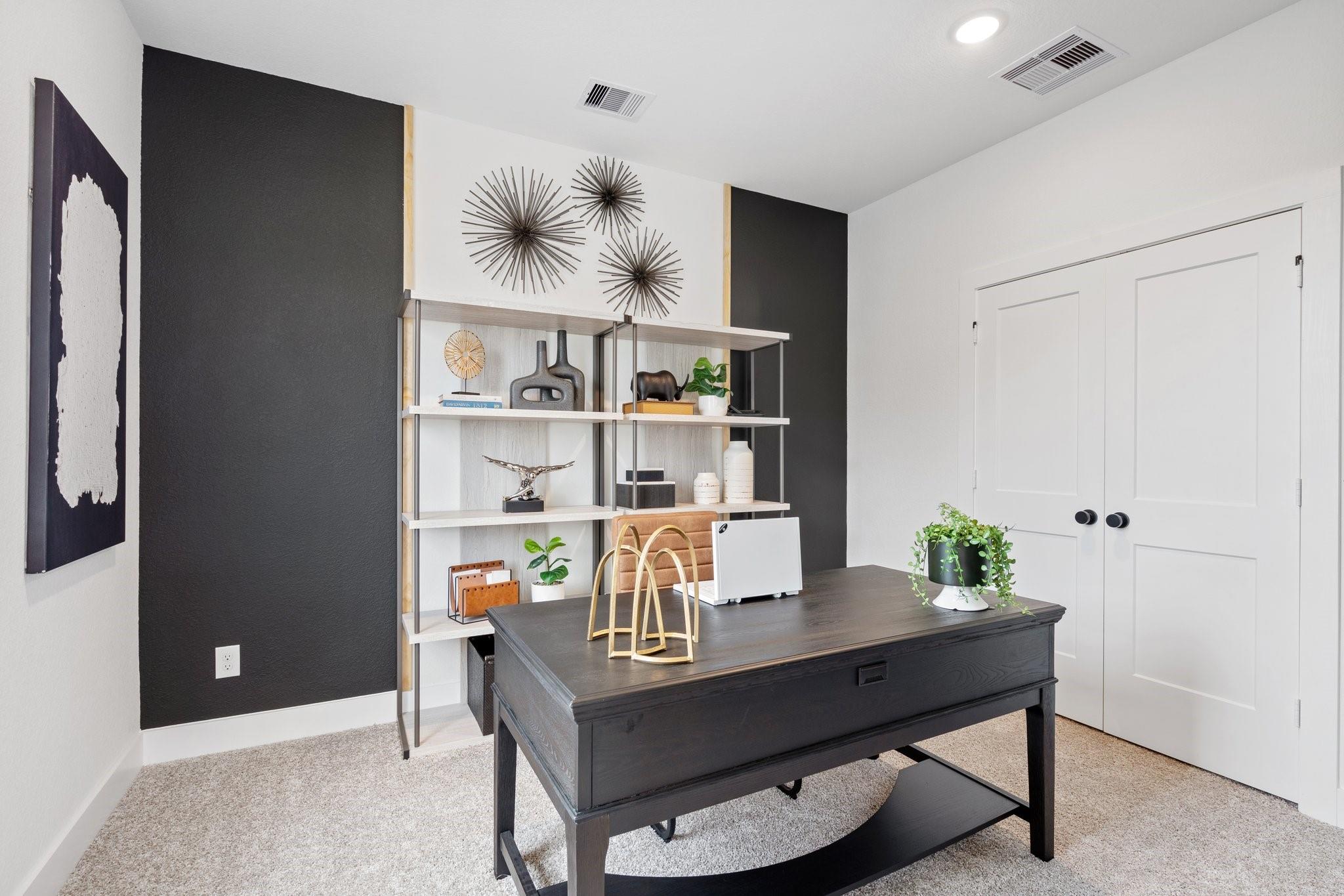 Fall in love with this courtyard two-story stunner featuring wide-open spaces and thoughtful design. The main floor offers a sprawling great room with a modern fireplace, a sleek quartz-island kitchen, and a dining area that flows to a spacious covered patio—perfect for relaxing outdoors. A versatile pocket office adds a private spot for work or hobbies. Upstairs, the owner’s suite is a true retreat with dual sinks, an oversized shower, and a walk-in closet. Secondary bedrooms surround a central flex space ideal as a game room or study. This home includes GE stainless steel appliances, blinds, security and sprinkler systems, full gutters, a fully sodded yard, and premium landscaping—all crafted for comfort, beauty, and ease. The Rosewood is ready to welcome you home.