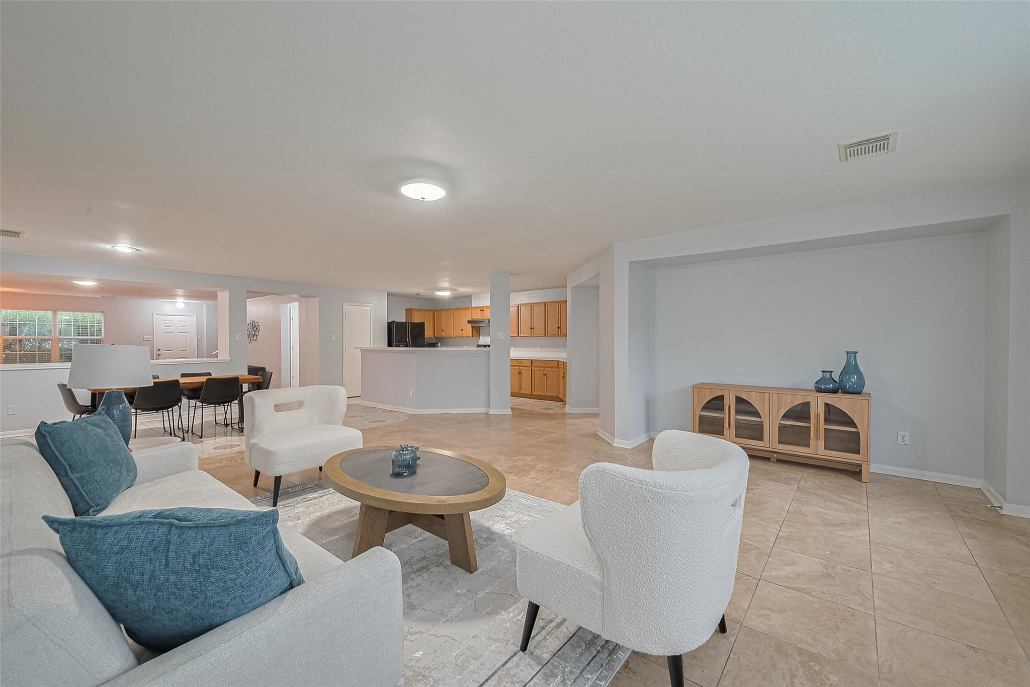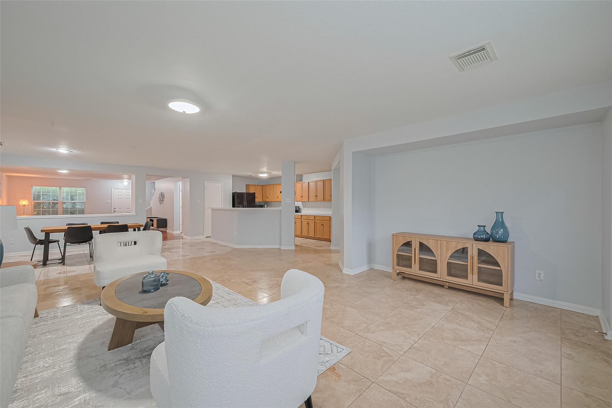 Welcome home to 2123 Gable Hollow Ln in the desirable Westgreen Park community of Katy! This beautifully maintained 5–6 bedroom, 3.5 bath home offers nearly 3,400 sq ft of living space on a premium corner lot zoned to top-rated KISD schools. Step inside to a bright, open layout with elegant tile and wood-style floors, soaring ceilings, and abundant natural light. The inviting kitchen features a gas range, ample cabinetry, and bar seating that connects seamlessly to the dining and family rooms—perfect for entertaining or family gatherings. The primary suite is conveniently located downstairs, while upstairs offers spacious secondary bedrooms and a large game/flex room ideal for a home office, media space, or play area. Recent updates include a brand-new roof (2024) and fresh interior touches throughout. Enjoy the fenced backyard, nearby walking trails, and quick access to I-10, LaCenterra, Katy Mills, shopping, and dining. Move-in ready and truly a must-see in Katy 77450!