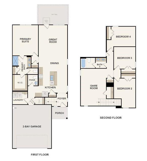 Designed with your comfort and convenience in mind, the Whitney is anchored by an inviting open-concept living space, featuring a spacious great room—boasting access to an optional covered patio—that flows into a versatile dining area and an inviting kitchen with a center island and pantry. You’ll also love the convenient main-floor primary suite, featuring an attached bath and a roomy walk-in closet. Additional main-floor highlights include a laundry room and a valet entrance off the two-bay garage. Heading upstairs, you’ll find additional living and private space with a multipurpose game room, surrounded by three generous secondary bedrooms and a full hall bath.