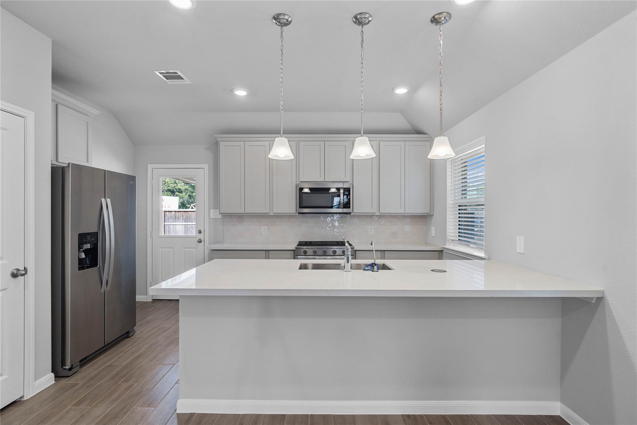 BEAZER HOMES NEW CONSTRUCTION – Welcome to 21322 Catelonia Yew Lane, a beautiful home in the master-planned community of Sorella, zoned to Waller ISD. This charming one story single family home is designed for both style and convenience. It features 3 bedrooms, 2 full bathrooms, and a 2 car garage. A welcoming front covered porch creates instant curb appeal, while an extended covered back patio extends outdoor living. Inside, the open flow enhances the connection throughout the home, and the attached garage provides everyday ease. This home sits on a lot that has NO BACK NEIGHBORS and comes equipped with ALL appliances including refrigerator, washer and dryer, and has an integrated pop-up outlet on the island. This home also features a Dupure water filtration system at kitchen sink, full gutters with down spouts, EV charger in garage and a 1 year maintenance program on the HVAC system. Don’t miss the opportunity to make this stunning home yours—schedule your private tour today!