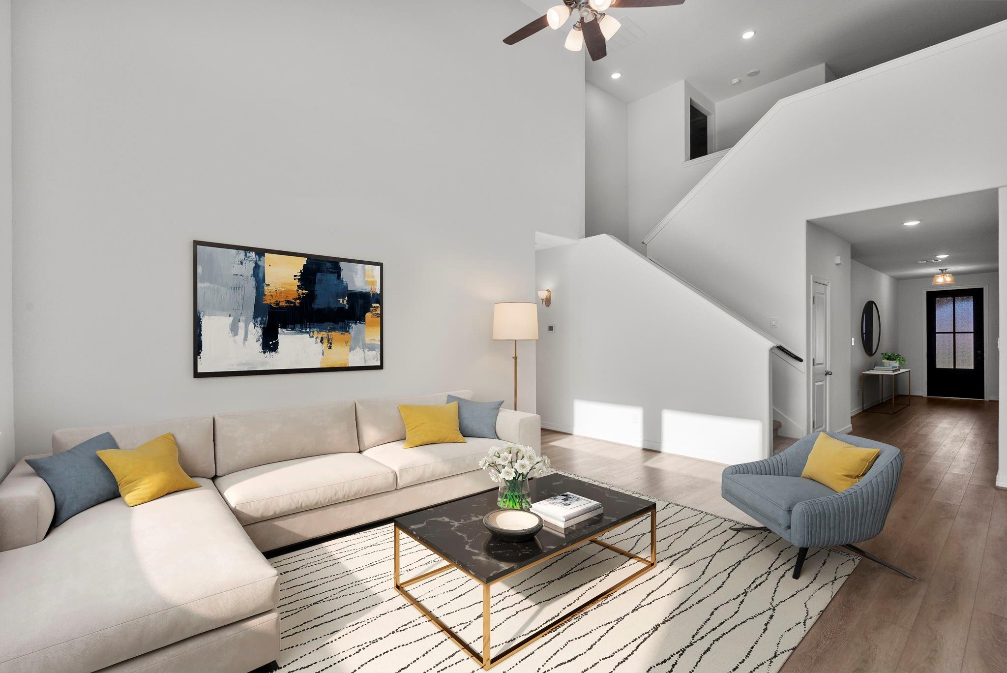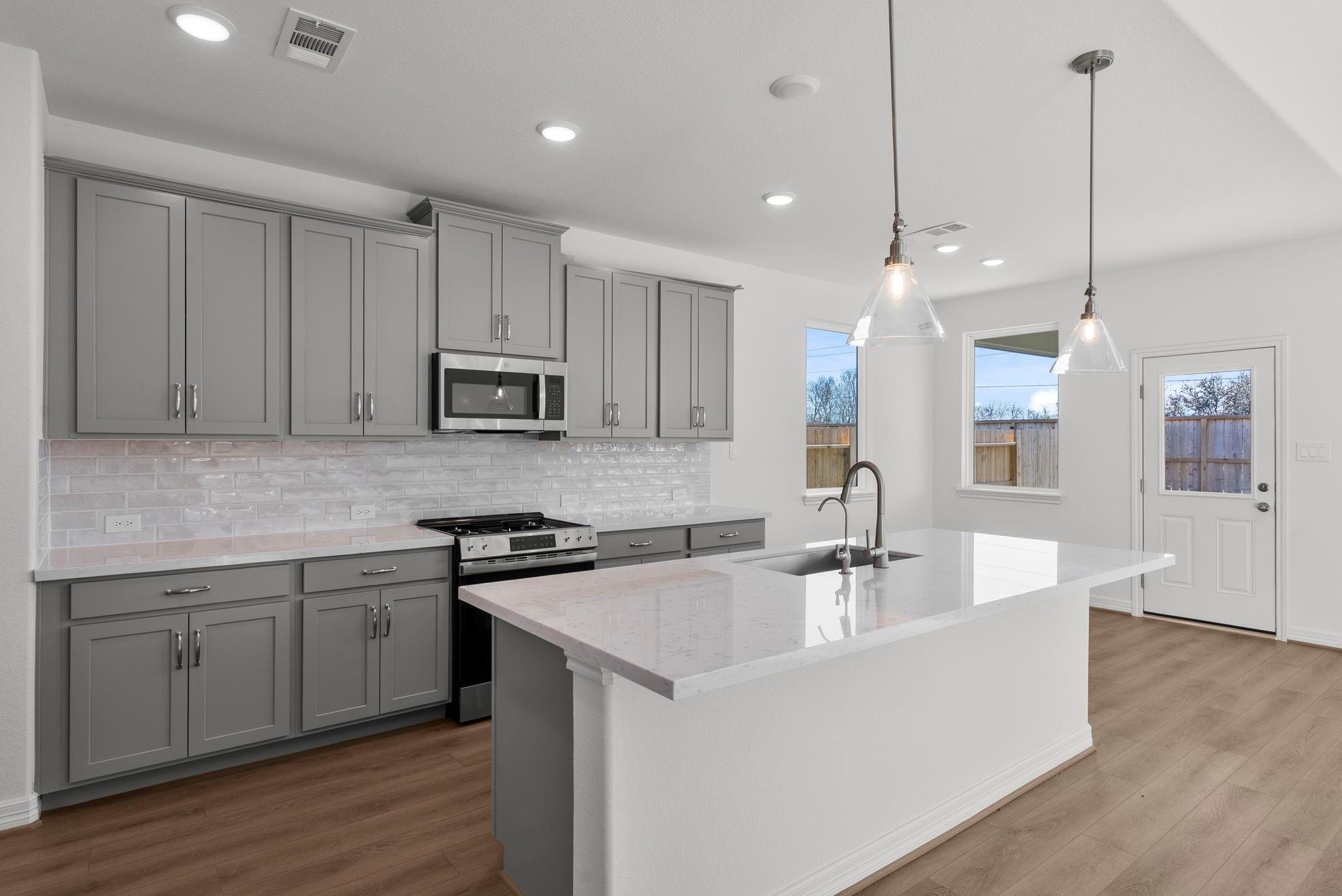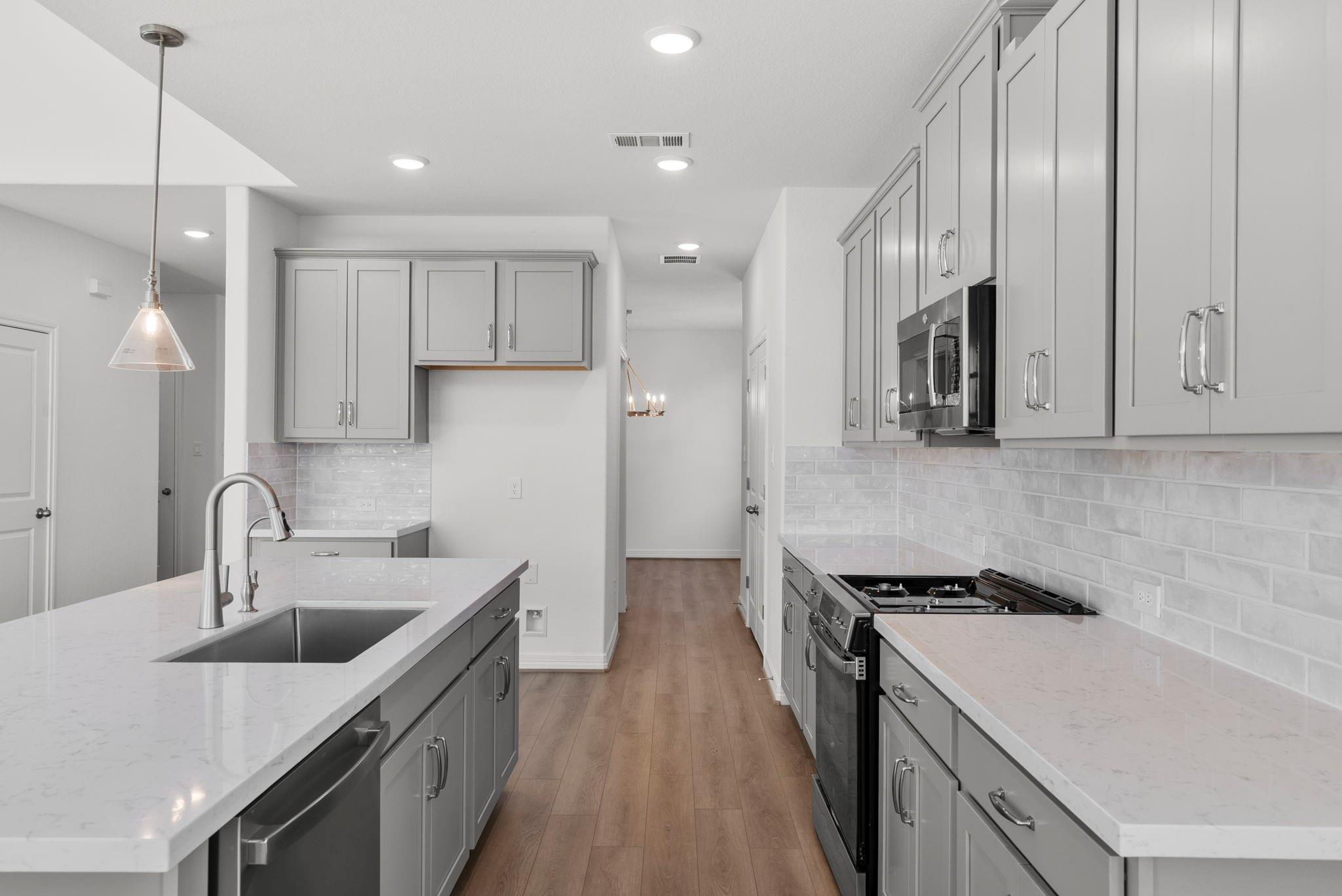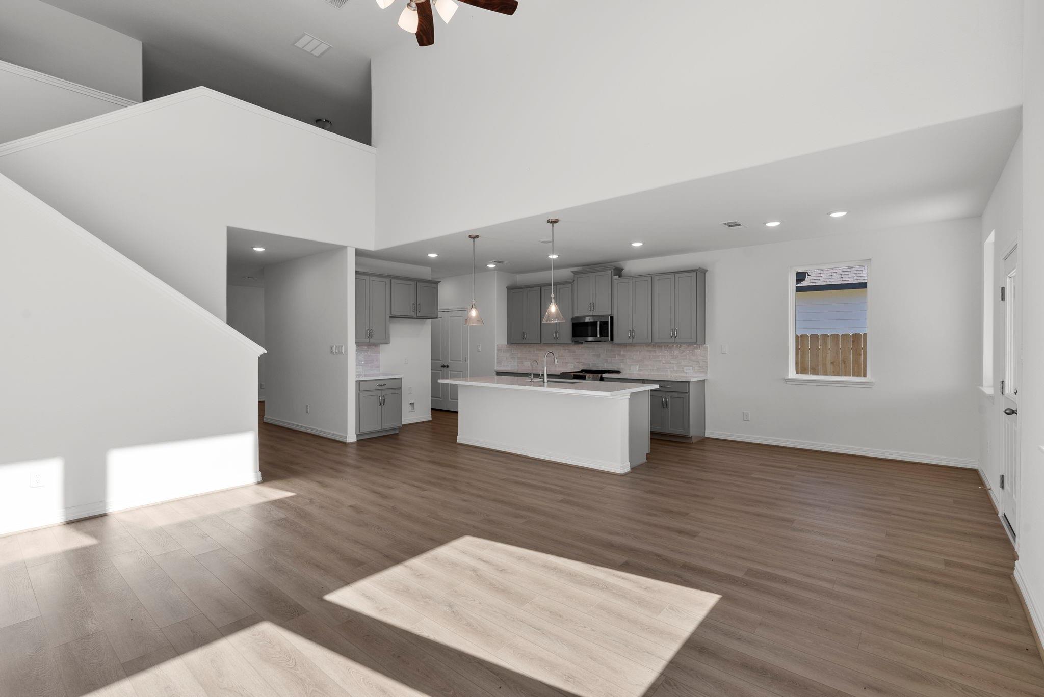 Stunning & stately 2-story home with no back neighbors. The Thames offers an inviting open design that welcomes you the moment you enter. A private study off the foyer provides the perfect work-from-home space, followed by a semi-formal dining area ideal for gatherings. A convenient hallway leads into the gourmet kitchen, featuring a grand island overlooking the family room with a soaring two-story ceiling. Dual pantries ensure generous storage. The primary suite sits at the back of the home for added privacy and comfort. Upstairs, 3 secondary bedrooms & a spacious game room provide plenty of room for relaxation and fun. Styled with the AW Collection® Milan, this home showcases sleek gray cabinetry, smooth ceramics, and chic European-inspired finishes. Located in Cedar Pointe, Crosby’s newest master-planned community, residents enjoy resort-style amenities including a pool, pavilion, playground, event spaces, a scenic lake, & miles of trails, all minutes from Crosby’s city center.
