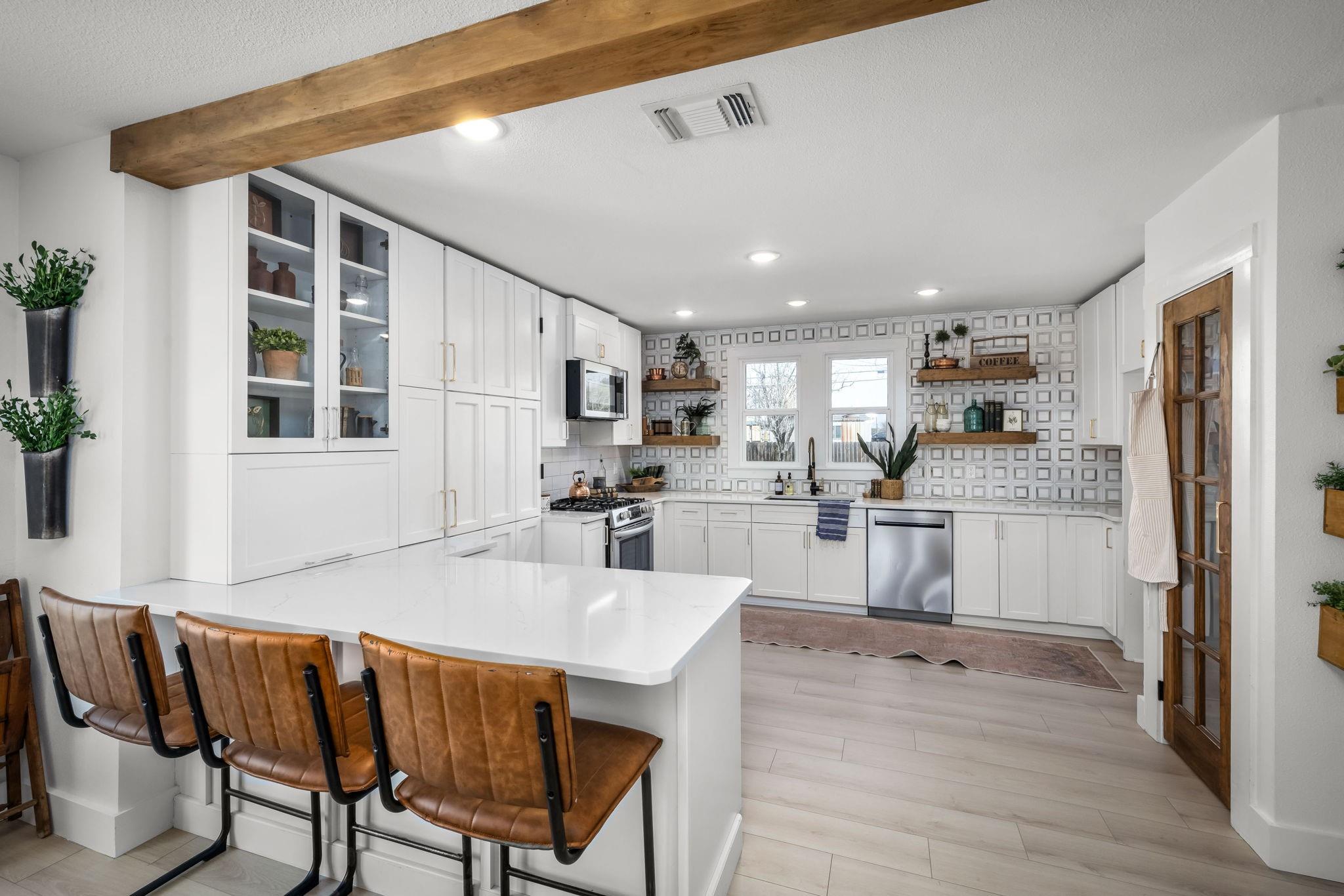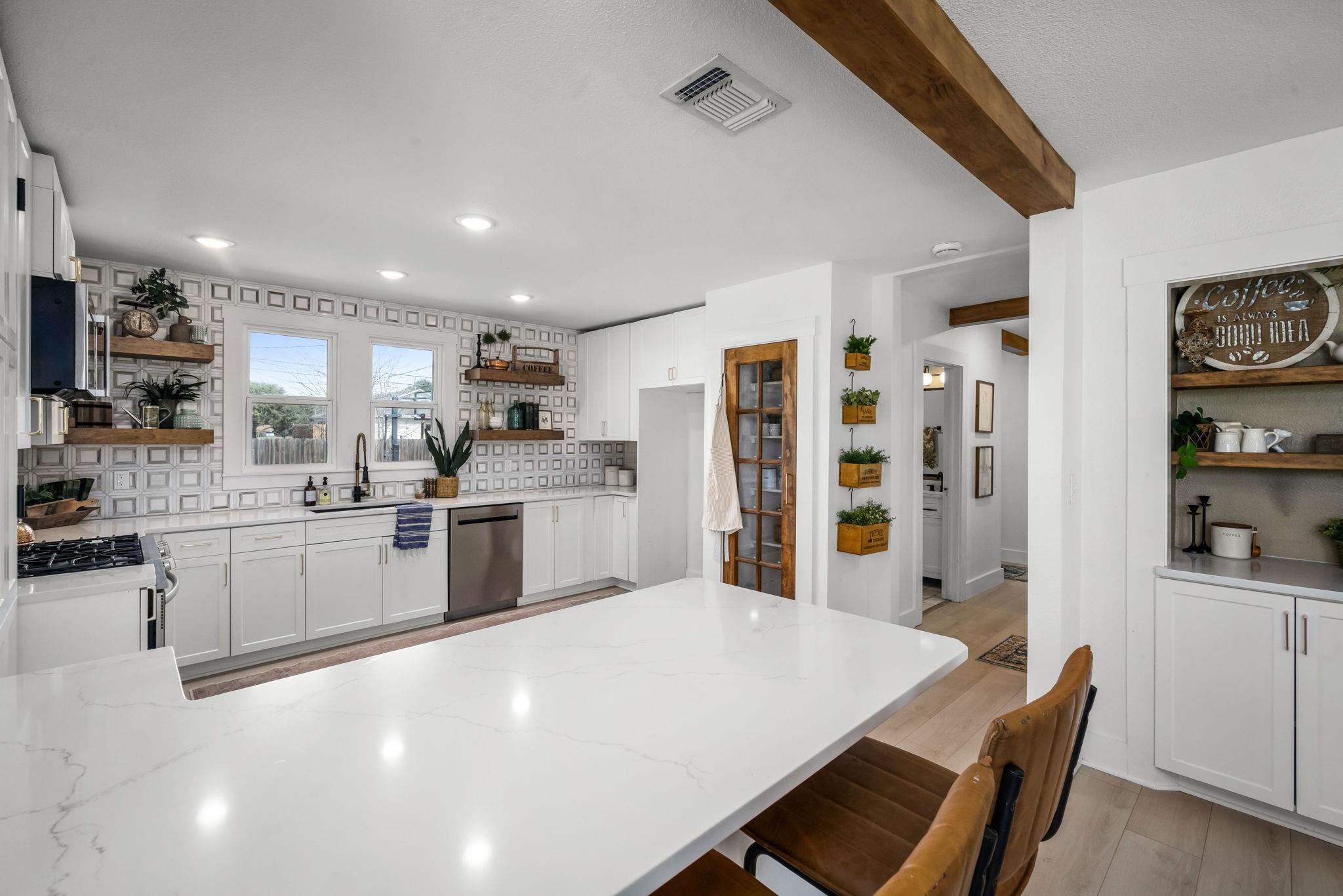 Designer Remodeled Home with Hidden Guest Suite Welcome to this stunning, fully renovated 4-bedroom, 2-bathroom home where every detail has been thoughtfully designed and beautifully executed. Completed in 2022, the remodel spared no expense; featuring brand-new windows, electrical, plumbing, HVAC, insulation and roof, plus a thoughtfully added primary suite for ultimate comfort and privacy. Step inside to an open-concept kitchen and living space that’s as functional as it is striking, showcasing designer finishes, premium countertops, and elevated fixtures throughout. A hidden hallway leads to a private guest suite—perfect for visitors or multigenerational living. Out back, enjoy a spacious yard ideal for entertaining. This is more than a remodel, it’s a reimagination of home living. Move-in ready and made to impress. Schedule your showing today!