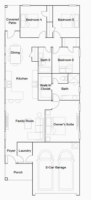 NEW Village Builder Avante Collection "Linfield" Plan Elevation "A" in Binford Creek! This new four-bedroom home showcases a modern layout contained to a convenient single level. An open-concept floorplan with access to a covered patio promotes effortless entertaining and multitasking. Three secondary bedrooms can be found at the back of the home, and the luxurious owner’s suite is tucked away to the side for enhanced comfort and privacy, complete with an en-suite bathroom and generous walk-in closet.