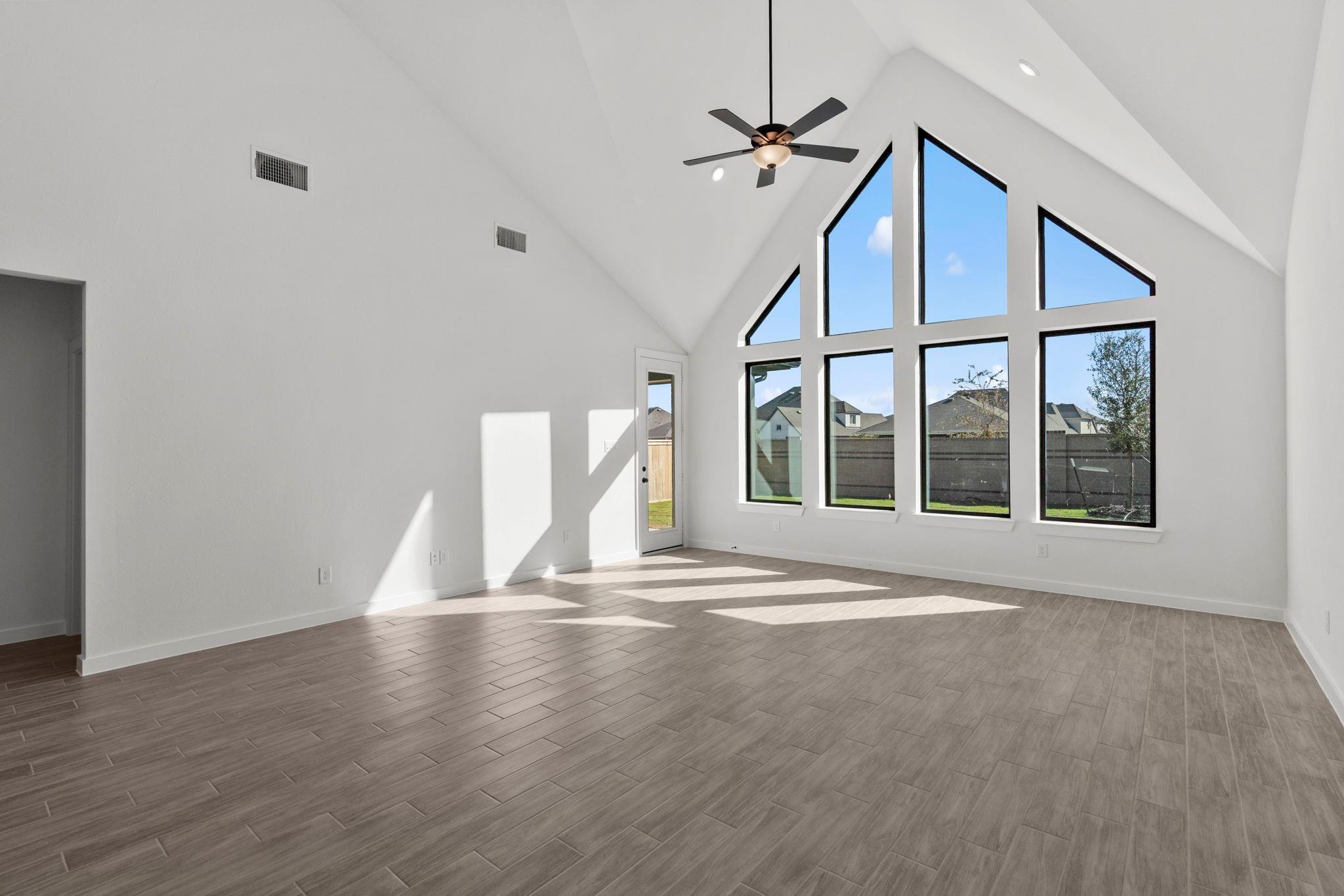 NO REAR NEIGHBORS! NAVARRO PLAN BY NEWMARK HOMES, where an unparalleled curved staircase with soaring high 2-story ceilings invites you in. This exquisitely designed home features 4 bedrooms with 2 down and 2 up, 3 full bathrooms, an impressive game room, a huge walk-in pantry, utility room, and mudroom! Immaculate vaulted windows in the family room overlook a private backyard with a relaxing covered patio, offering serene outdoor living.