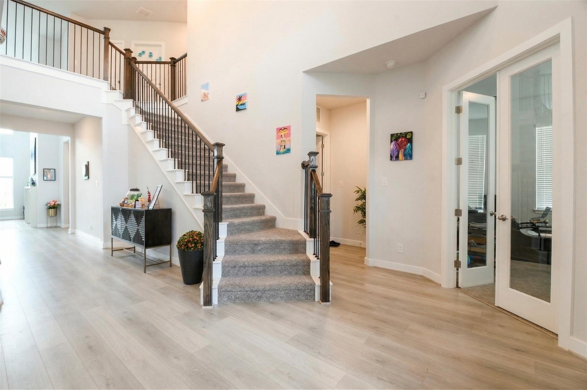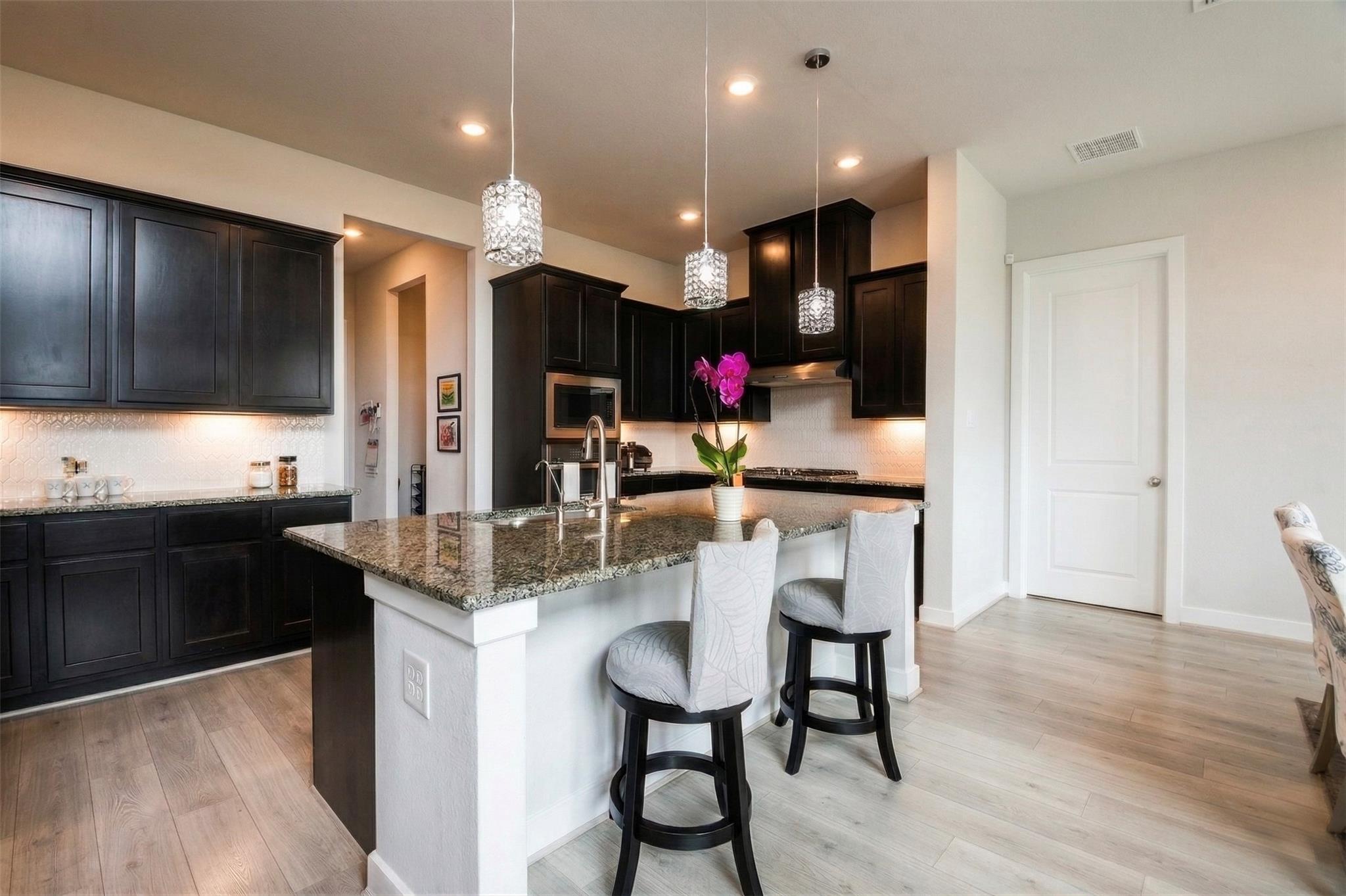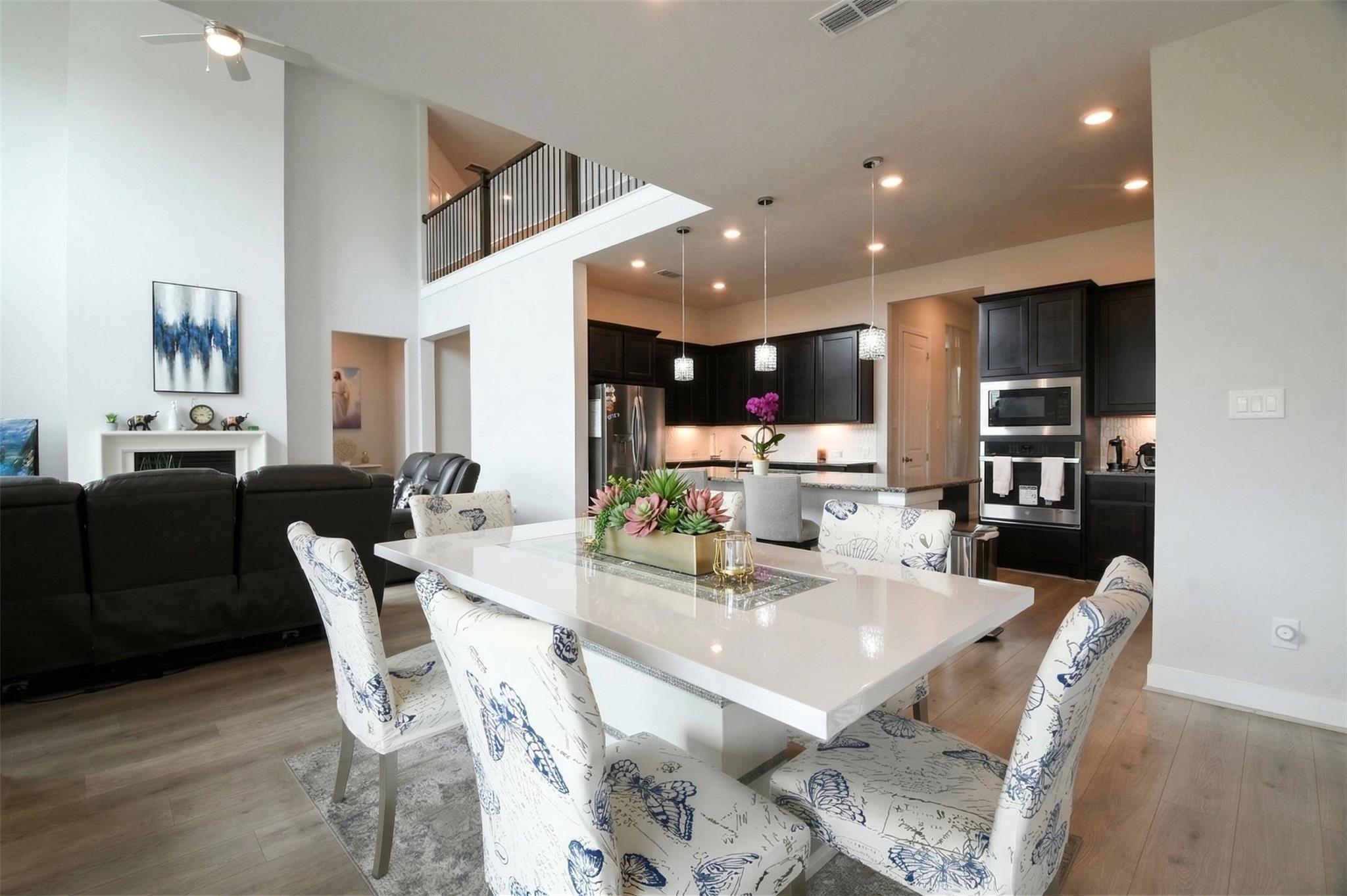 Beautiful 5 bed, 5.5 bath Palisade home by Taylor Morrison in sought-after Avalon at Cypress (Sec 70) with stunning lake views! This open-concept home features a gourmet island kitchen with granite counters, stainless appliances, and ample cabinetry, flowing into bright living and dining areas with vinyl plank flooring and fireplace. Flexible layout with 2 beds down, including an extended primary suite with spa-like bath, dual sinks, soaking tub, walk-in shower & closet. Upstairs offers 3 ensuite bedrooms, game room & media room. Enjoy a 3-car garage, extended covered patio, sprinkler system & water softener. Located in top-rated Cy-Fair ISD near all schools. Resort-style amenities include pool, tennis, pickleball & more. Priced to attract strong interest—schedule your showing before it’s gone!