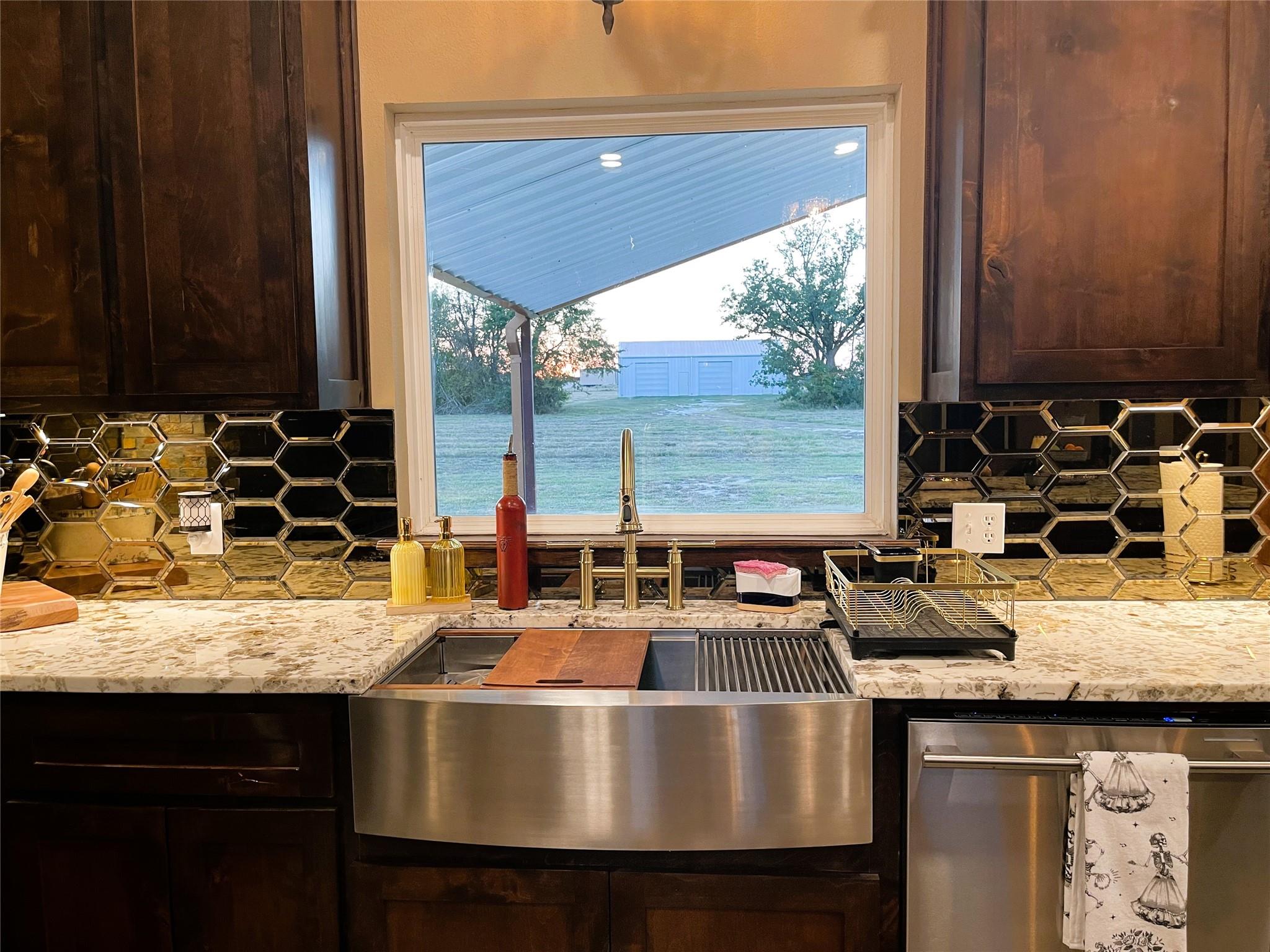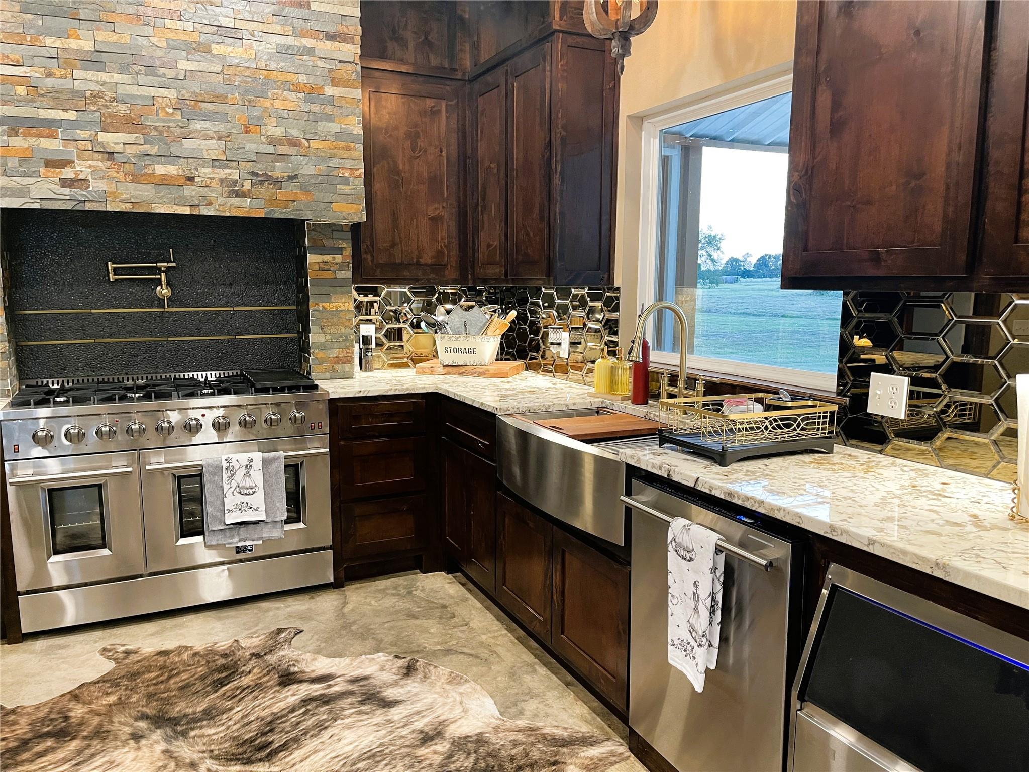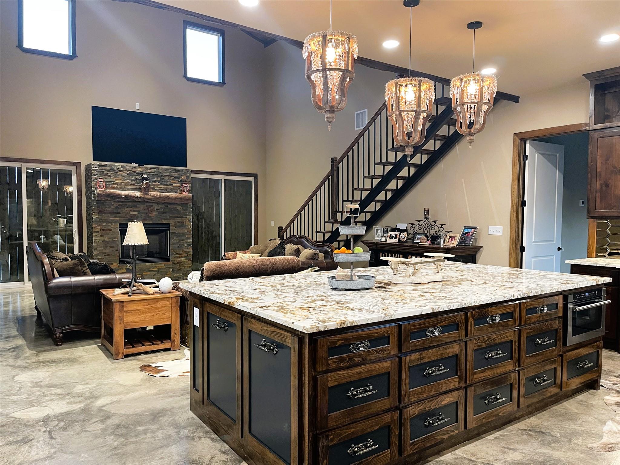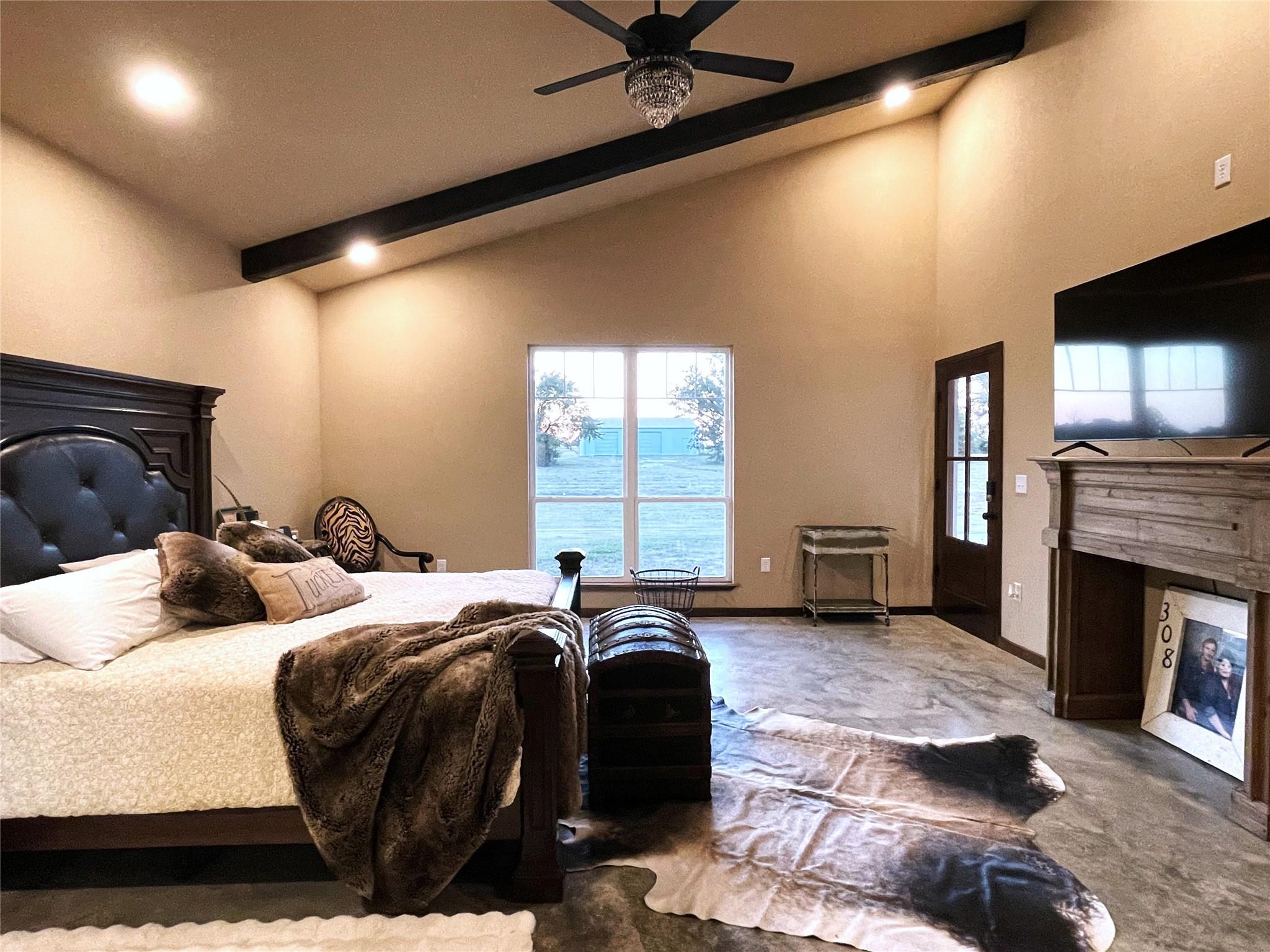 Sleek & Smart meets Comfort & Efficiency in this Truly One of Kind Barndominium on 10.323 acres. Metal Roof & Siding, foam insulation, polished concrete floors, water well approx 475' deep, propane stove, tankless water heater, & fireplace. Open concept, stunning island kitchen, commercial grade appliances, icemaker, 8 burner gas range, pot filler, granite countertps, Soaring cathedral clg in the living rm. Fireplace framed by sliding glass patio drs for lots of natural light, revealing the pasture & pond in front. Close the exterior barn drs to provide privacy. Primary suite, tremendous organized walk in closets, Luxurious bathtub, double vessel sink, French Country shutters cover the window near the Roman shower of tumbled tile, dual shower head syst. Upstairs bedrm, ensuite bath, Bedrm 2, ensuite bath, opulent black & gold accented blk tile, glass dr, vessel sink. Laundry rm, mop sink, Oversized carport, storage rm & Half Bath, 30x50 Shop, 20x50 Lean to. 1 pond. Ag exempt.