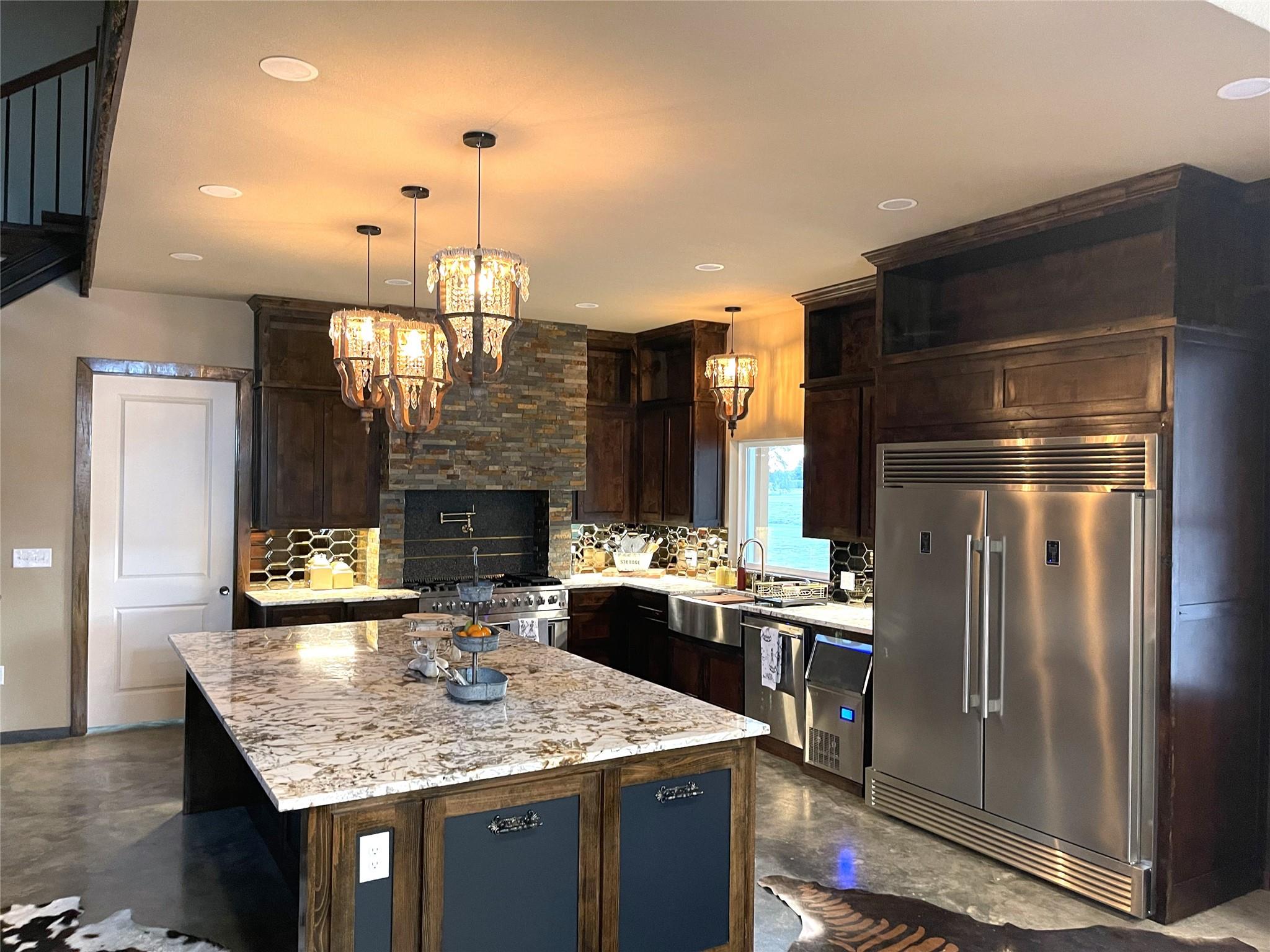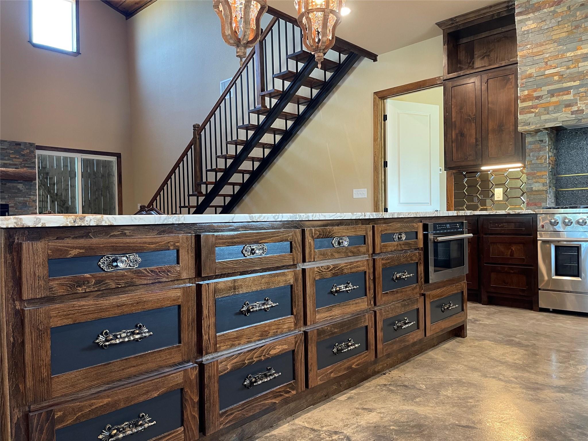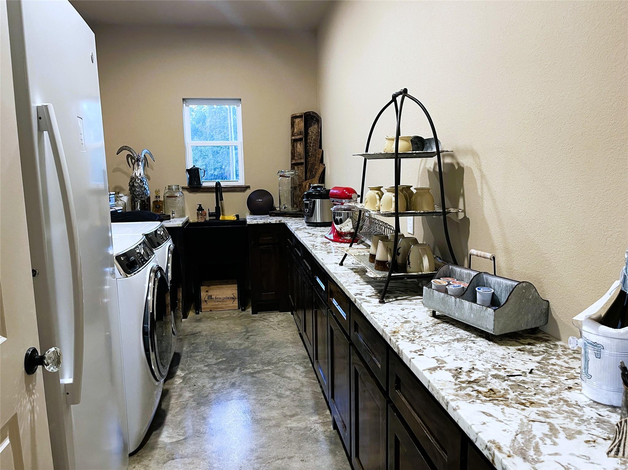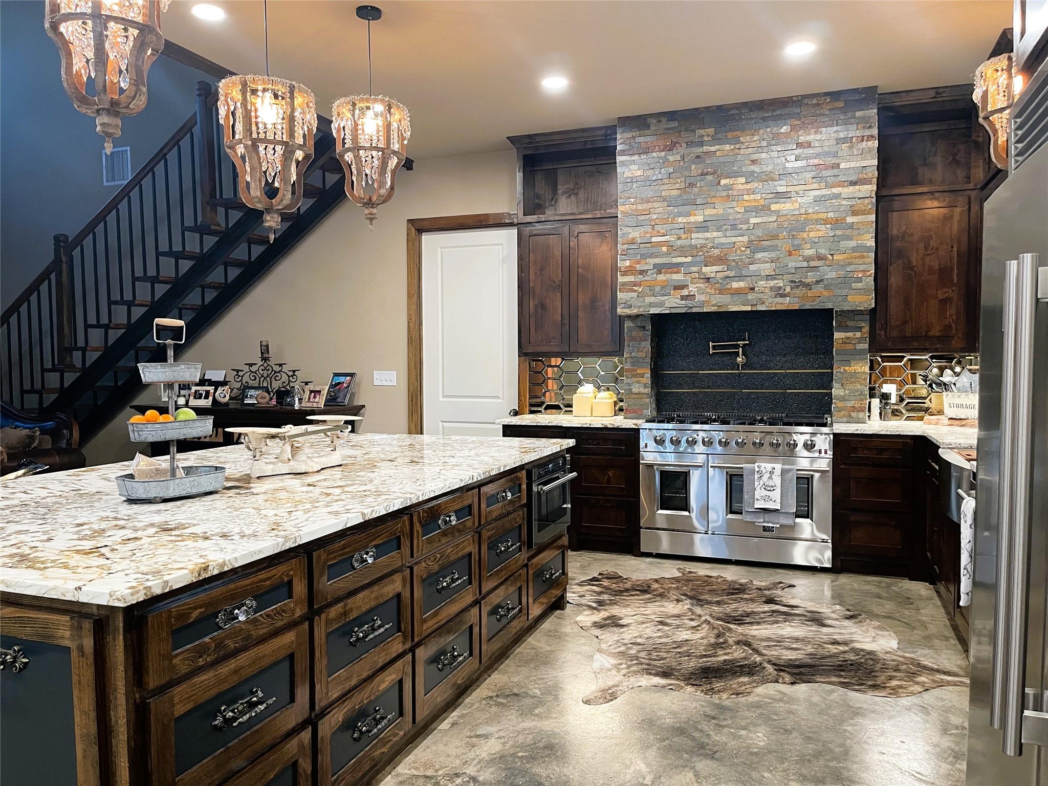 InteriorFireplace:1/Gas ConnectionsFloors:ConcreteCountertop:GraniteBathroom Description:Half Bath,Primary Bath: Double Sinks,Primary Bath: Separate Shower,Primary Bath: Soaking Tub,Secondary Bath(s): Shower Only,Secondary Bath(s): Tub/Shower ComboBedroom Desc:1 Bedroom Up,2 Bedrooms Down,En-Suite Bath,Primary Bed - 1st Floor,Walk-In ClosetKitchen Desc:Island w/o Cooktop,Kitchen open to Family Room,Pot Filler,Pots/Pans DrawersRoom Description:1 Living Area,Formal Dining,Utility Room in HouseHeating:Central ElectricCooling:Central ElectricConnections:Electric Dryer Connections,Washer ConnectionsDishwasher:YesDisposal:NoMicrowave:YesRange:Gas RangeIce Maker:YesEnergy Feature:Ceiling Fans,Insulation - Spray-Foam,Tankless/On-Demand H2O HeaterInterior:High Ceiling,Refrigerator Included