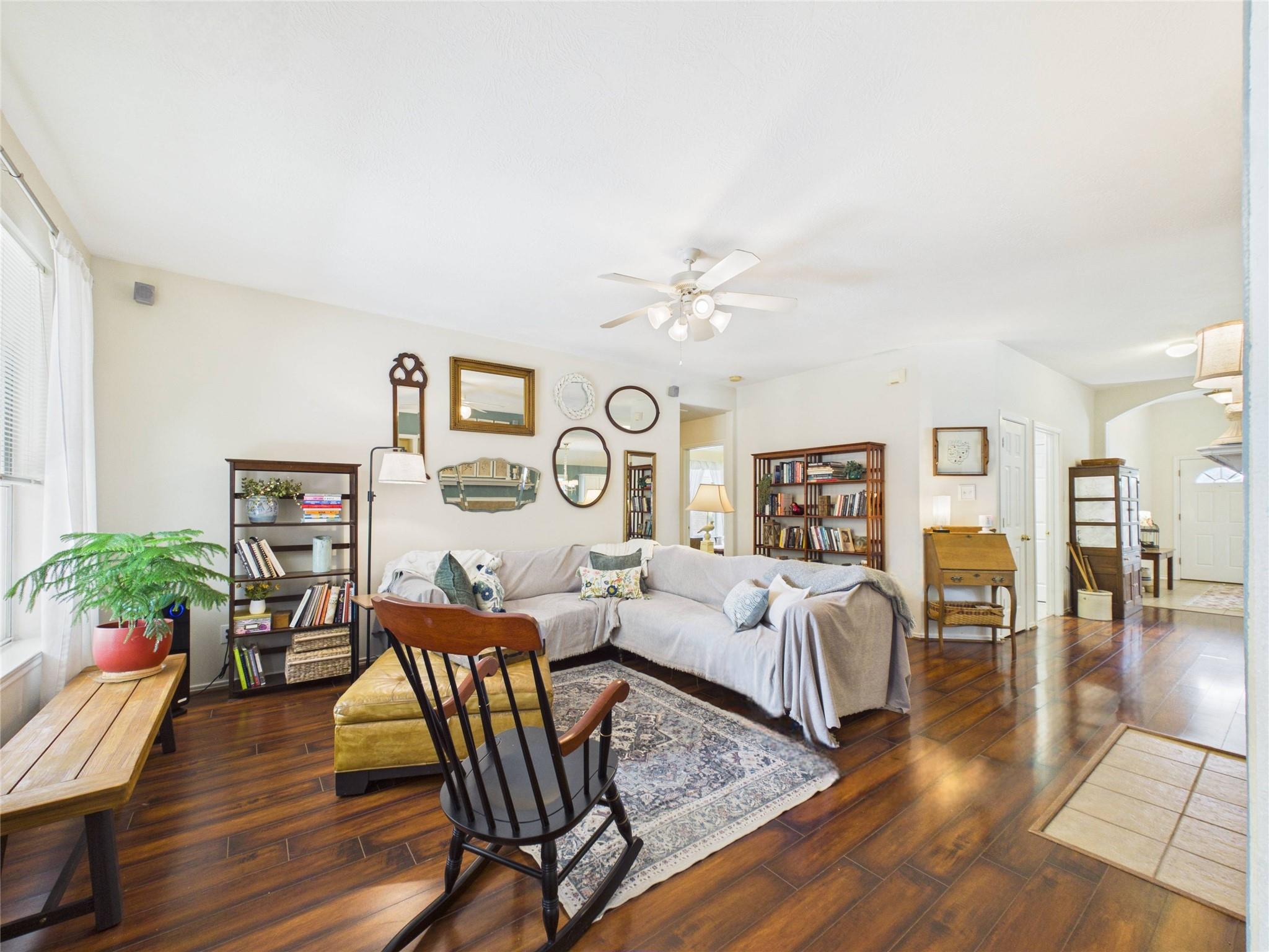 Welcome to this charming, thoughtfully refreshed home offering modern comfort and effortless style. Recent enhancements include a 2024 roof, carpet-free living, and fresh interior paint, creating a clean, move-in-ready experience. The well-designed split-bedroom layout ensures privacy, while the primary suite offers a serene retreat with a beautifully appointed en-suite bath and walk-in shower. There is an additional room at the front of the house commonly used as a Home Office/Study. Step outside to a nicely landscaped backyard and spacious patio, ideal for entertaining or unwinding. Perfectly positioned near I-45 South, with seamless access to premier shopping, dining, and the Galveston coastline. A true blend of comfort, convenience, and charm. Make it your Home Sweet Home!