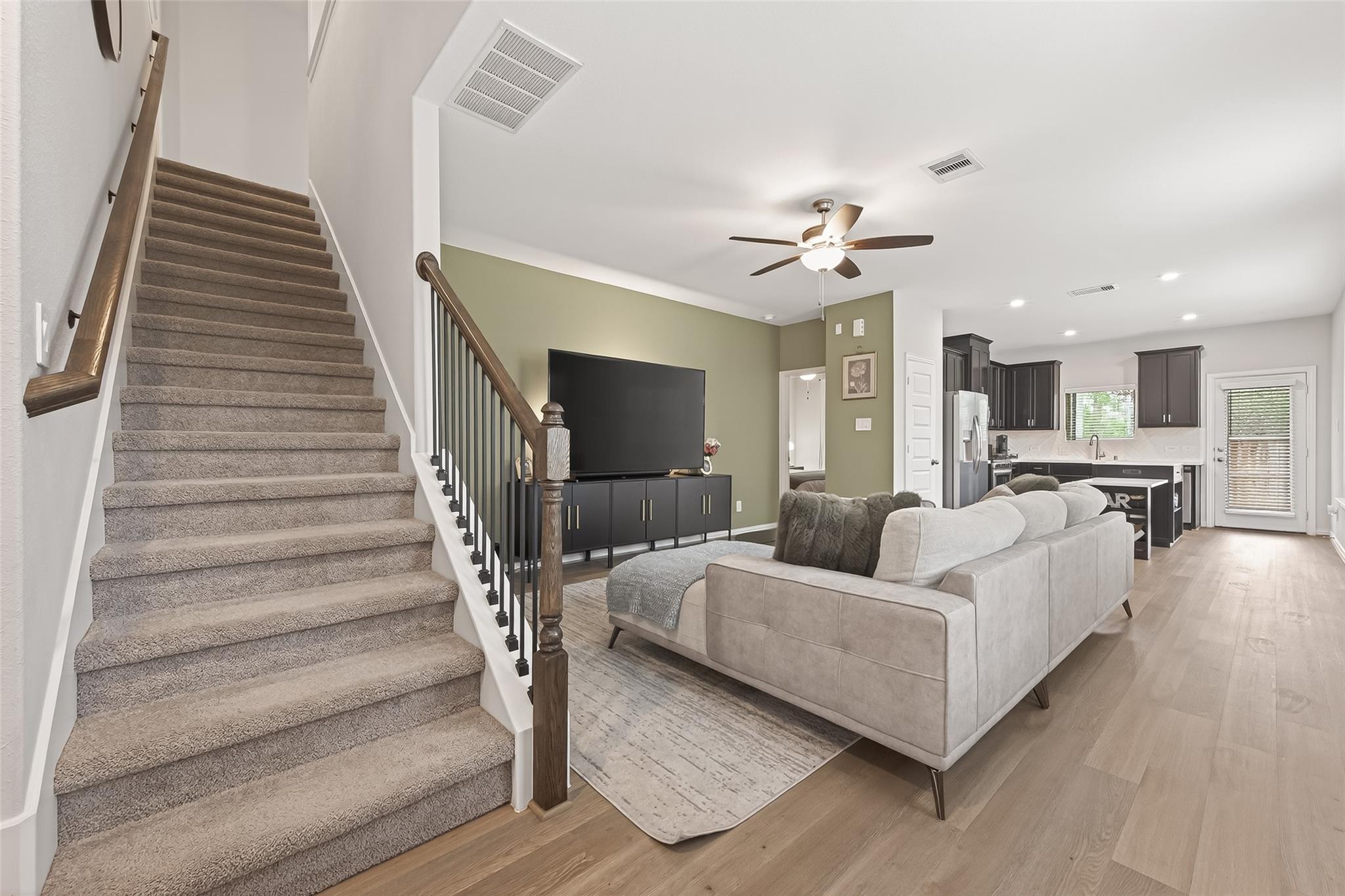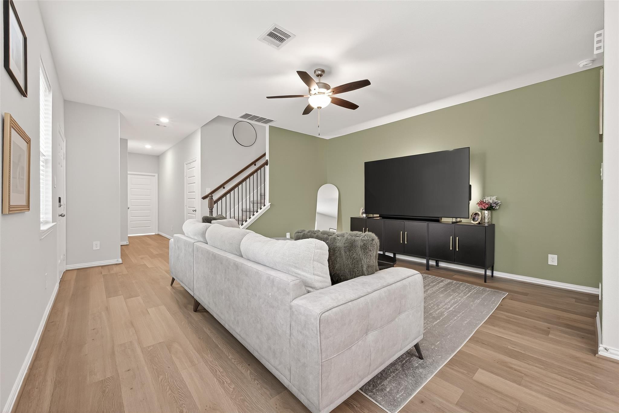 Welcome to this charming townhome with fenced backyard and great location near shops, parks, and more! Move-in ready, this home has an open plan from the kitchen with a movable island, to the a dining area, and into a cozy living room. The property features 4 bedrooms, 2 bathrooms, 1 half bath and a spacious layout perfect for comfort and convenience. Situated in the esteemed Grand Central Park community, this modern home offers stainless steel appliances, stylish finishes, and a prime location for shopping and dining. With the primary bedroom located on the first floor, this low-maintenance home is ideal. Don't miss out on this opportunity in a highly sought-after area!