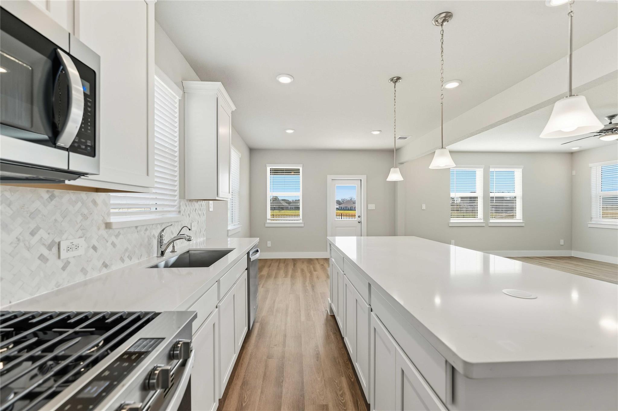 NEW CONSTRUCTION by Beazer Homes, America’s #1 Energy Efficient New Home Builder! Welcome home to 219 Orchard Laurel Drive in Laurel Landing, zoned to Hasse Elementary, G.W. Harby Junior High, and Alvin High School. This two-story Walker Plan offers 3 bedrooms, 2.5 bathrooms, and 1,893 sq. ft. of living space with a 2-car garage and a rear waterfront site. Designed for modern living, it features an open-concept kitchen with Whirlpool® appliances, linen white cabinetry, and a designer backsplash that flows seamlessly into the great room. Upstairs, a versatile loft provides space for movie nights or game days, while the primary suite includes a spacious bath with a walk-in shower. Enjoy outdoor living on the covered patio, perfect for relaxing or entertaining. Built as an Energy Series READY home, it is DOE Zero Energy Ready, ENERGY STAR® certified, and Indoor airPLUS qualified, ensuring comfort, efficiency, and healthier indoor air. Don’t miss this incredible opportunity!