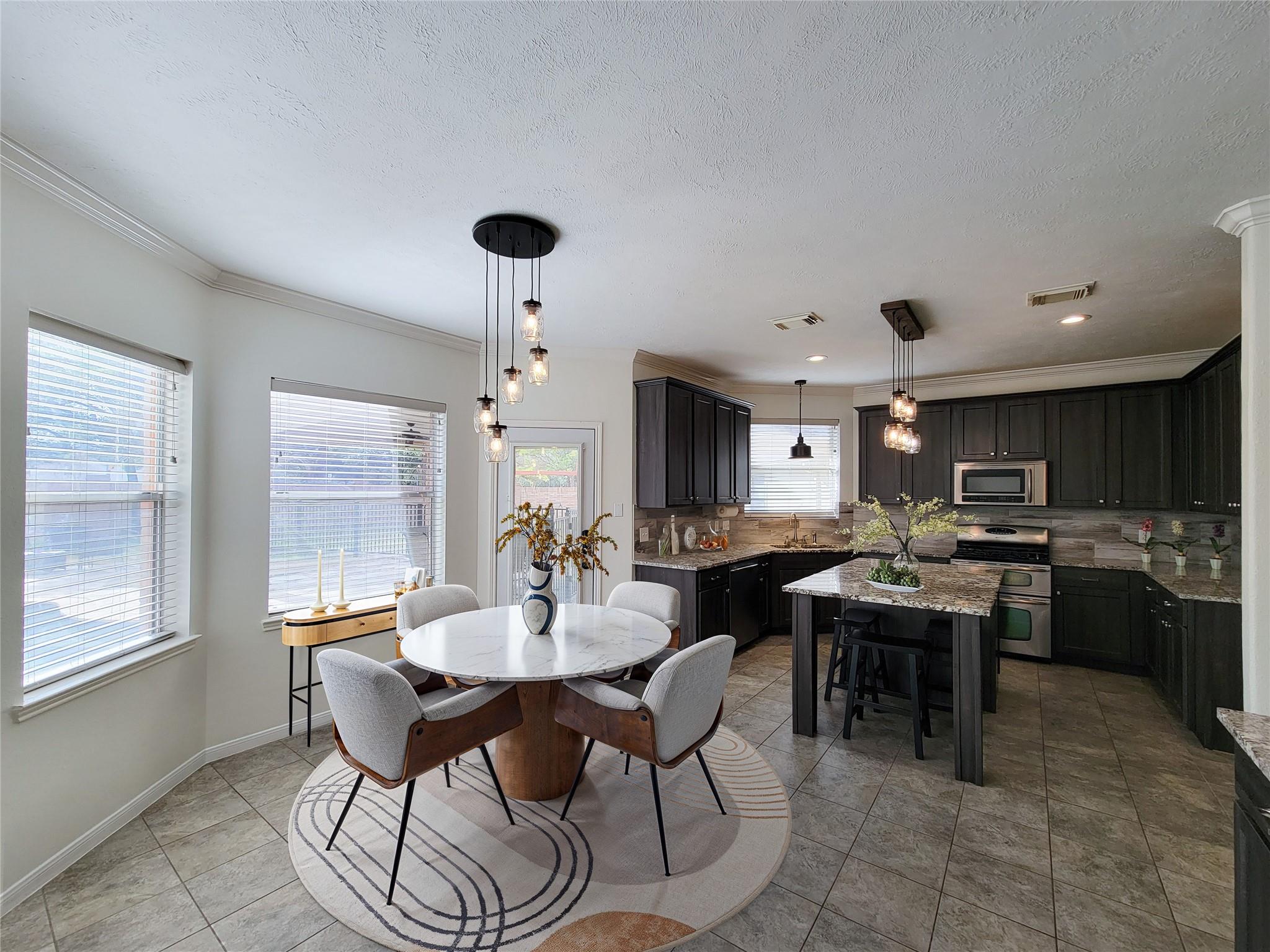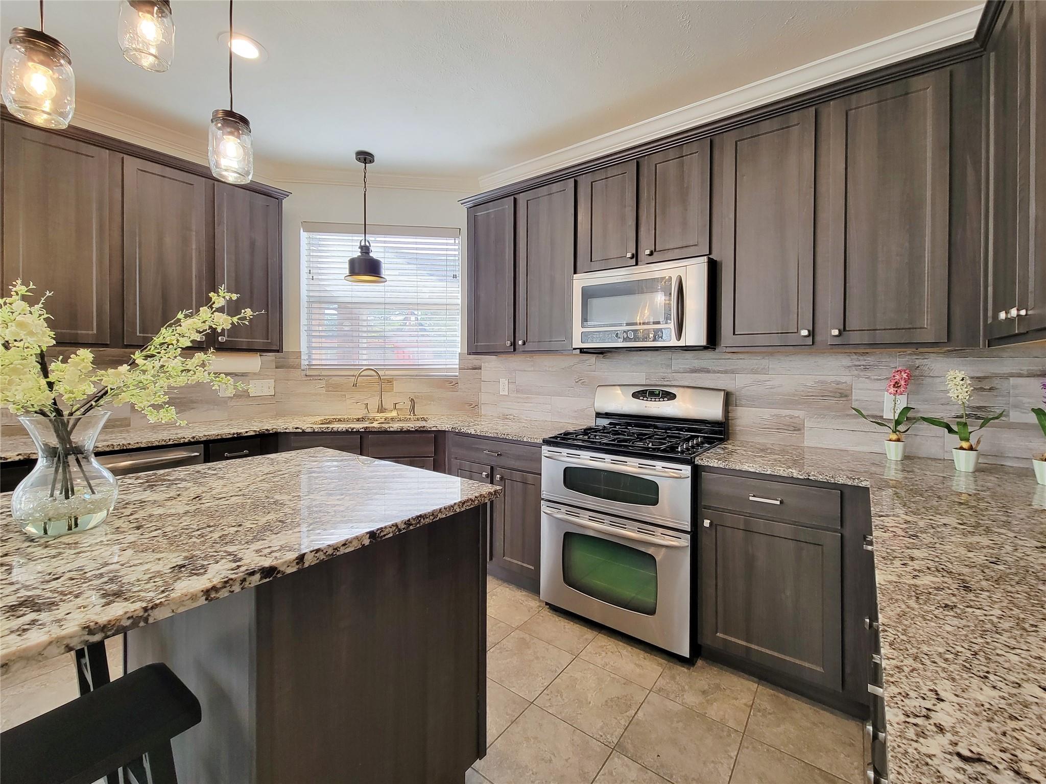 InteriorFireplace:1/Gas Connections,Wood Burning FireplaceFloors:Engineered Wood,Laminate,TileCountertop:GraniteBathroom Description:Full Secondary Bathroom Down,Primary Bath: Double Sinks,Primary Bath: Separate Shower,Primary Bath: Soaking Tub,Secondary Bath(s): Tub/Shower ComboBedroom Desc:1 Bedroom Down - Not Primary BR,3 Bedrooms Up,En-Suite Bath,Primary Bed - 2nd Floor,Multilevel Bedroom,Sitting Area,Walk-In ClosetKitchen Desc:Butler Pantry,Island w/o Cooktop,Kitchen open to Family Room,Soft Closing DrawersRoom Description:Breakfast Room,Butlers Pantry,Entry,Family Room,Formal Dining,Gameroom Up,Kitchen/Dining Combo,Living Area - 1st Floor,Utility Room in HouseHeating:Central Gas,ZonedCooling:Central Electric,ZonedConnections:Electric Dryer Connections,Washer ConnectionsDishwasher:YesDisposal:YesMicrowave:YesRange:Gas RangeOven:Freestanding OvenEnergy Feature:Attic Vents,Ceiling Fans,Digital Program Thermostat,HVAC>13 SEERInterior:Alarm System - Owned,Crown Molding,Fire/Smoke Alarm,Formal Entry/Foyer,High Ceiling,Window Coverings