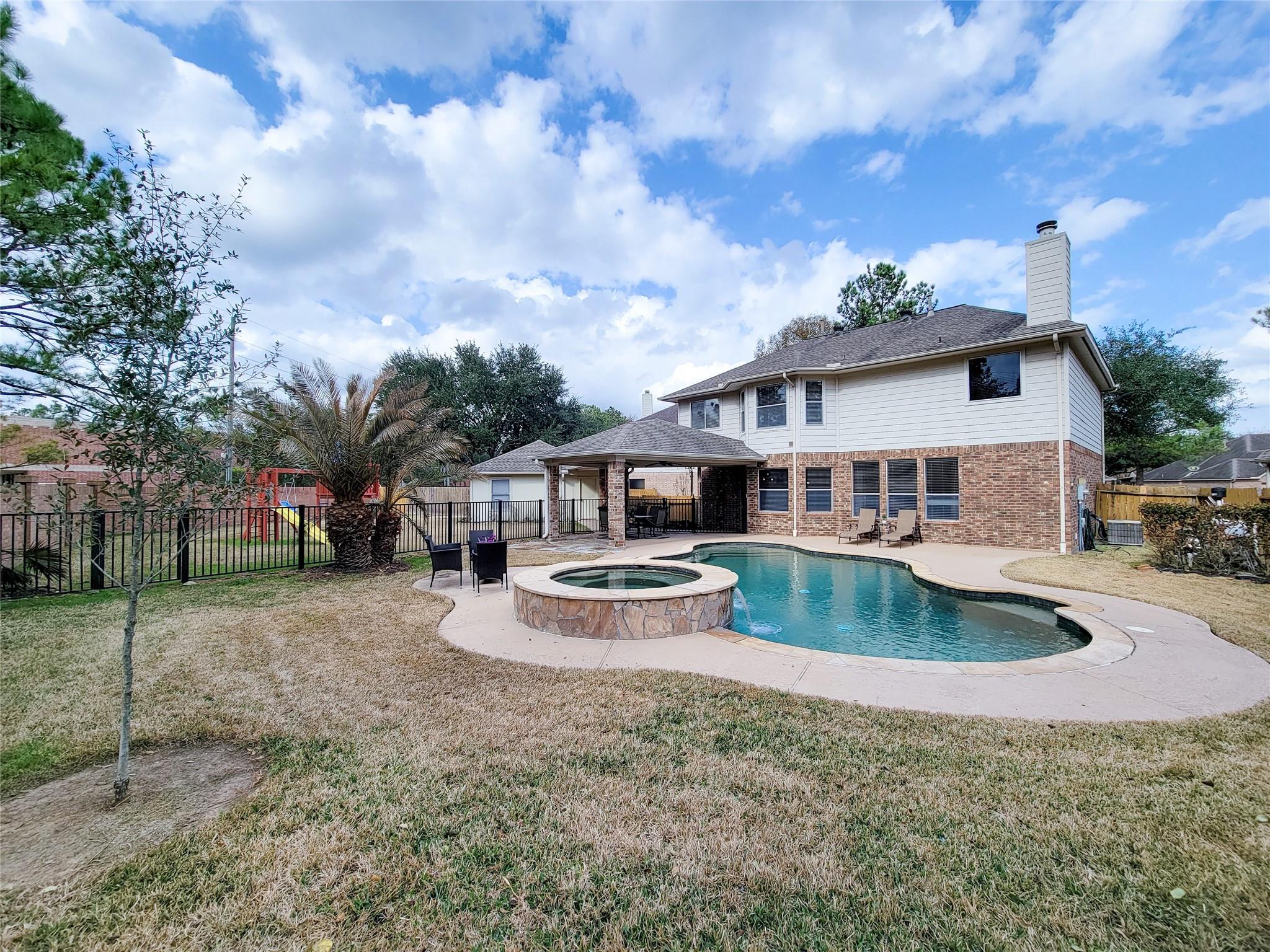 Stunning 2 Story Beauty in Heart of Cinco Ranch!! Enjoy your own private backyard Paradise with POOL/SPA on a Premium oversized cul-de-sac lot, with no back neighbors (11,280 sqft). Fenced section great for kids play-area, for pets to roam & or Kitchen Garden! Designed to enjoy both indoor/outdoor living. Pretty 2 Story Foyer. Open concept Remodeled Kitchen features an oversized Granite Island, custom cabinets, double oven, stainless steel appliances, designer light fixtures & with built-in Butler's Pantry. Downstairs has a decent size bedroom with full Bathroom (or use it as a Study/Home Office). Primary Bedroom upstairs along with Game-room & 2 more Bedrooms. Hardwood engineered floor throughout (no carpet in this home). Recent fresh paint & more. Covered Patio, large side yard and detached garage w/workbench & back garage door access. Katy ISD. Walking distance to Exley Elem School. Easy access to Shops & fine Dining. Call today for more details & appointment!!!!