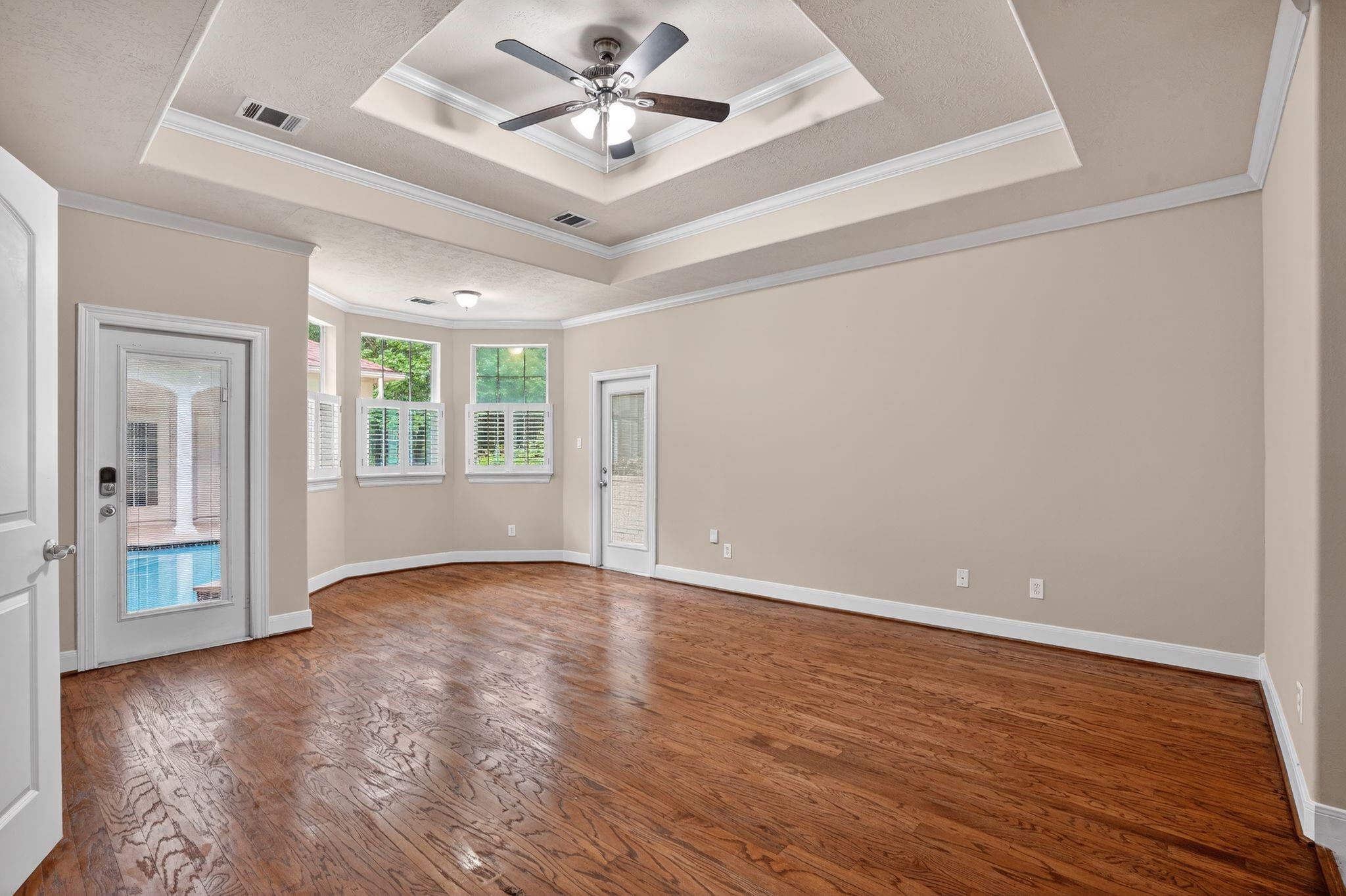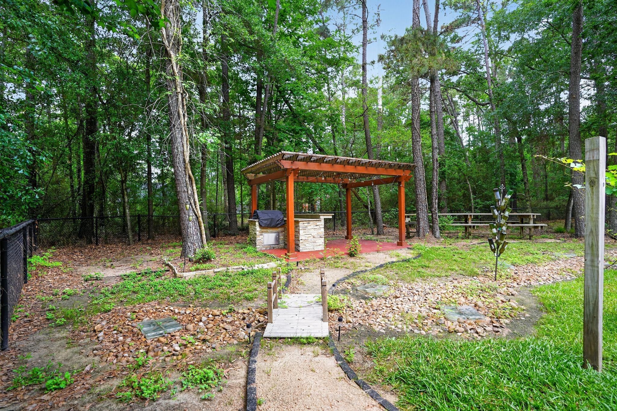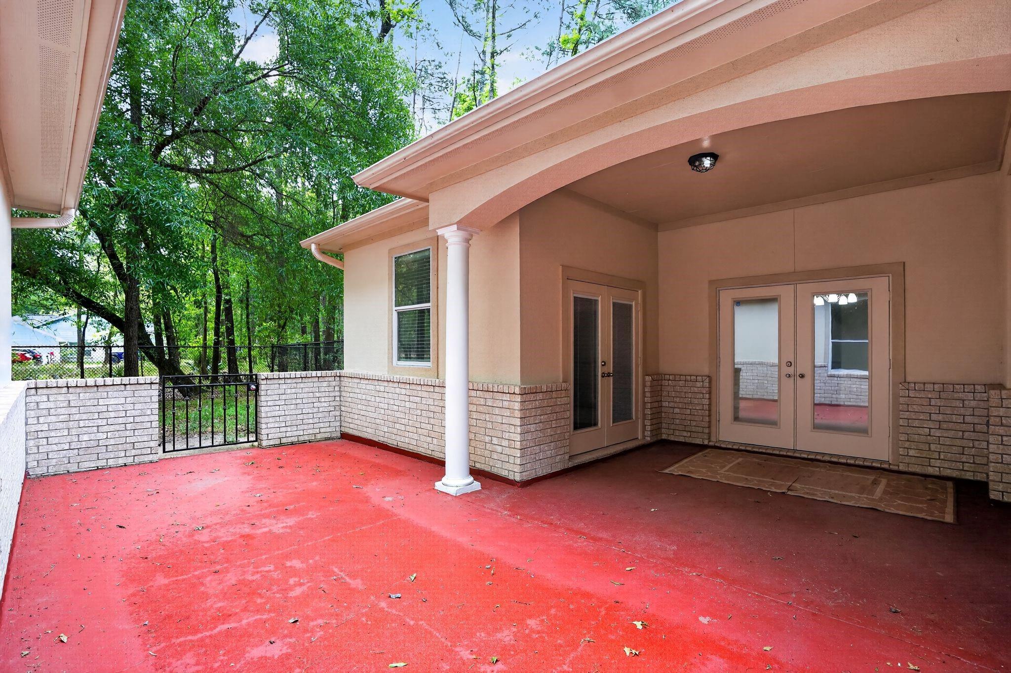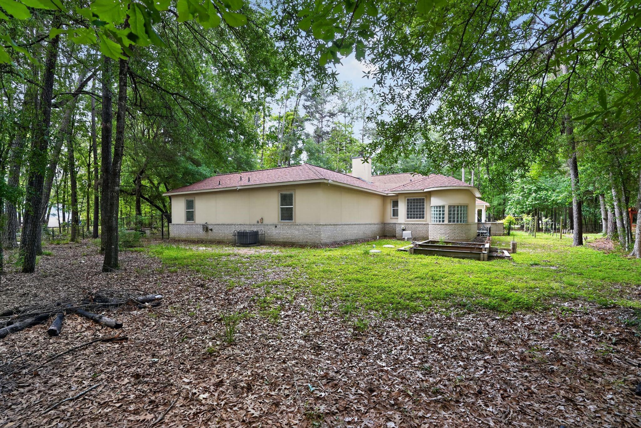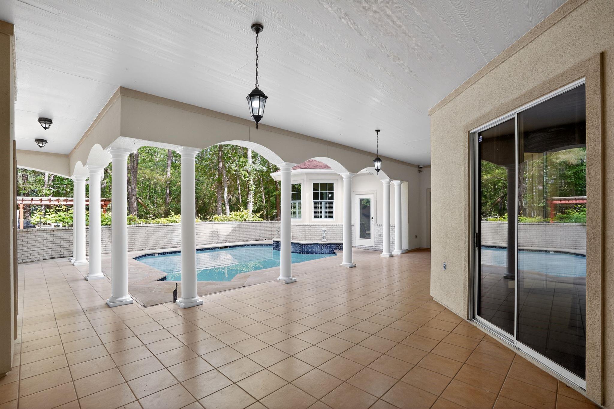 Spacious 5-bedroom, 4-bath home located in New Caney, offering ample room for comfortable living and entertaining. This unique property features a private pool and is nestled on a wooded lot, providing added privacy and a serene setting. The home boasts distinctive architectural details, including a covered front porch with columns, a circular turret-style design, and a gated entry leading to a welcoming foyer. A wide driveway and attached multi-car garage offer plenty of parking space. Surrounded by mature trees, the property delivers a peaceful, retreat-like atmosphere while still being conveniently located. Property is being sold in its present condition. Great opportunity for buyers looking to customize or invest.