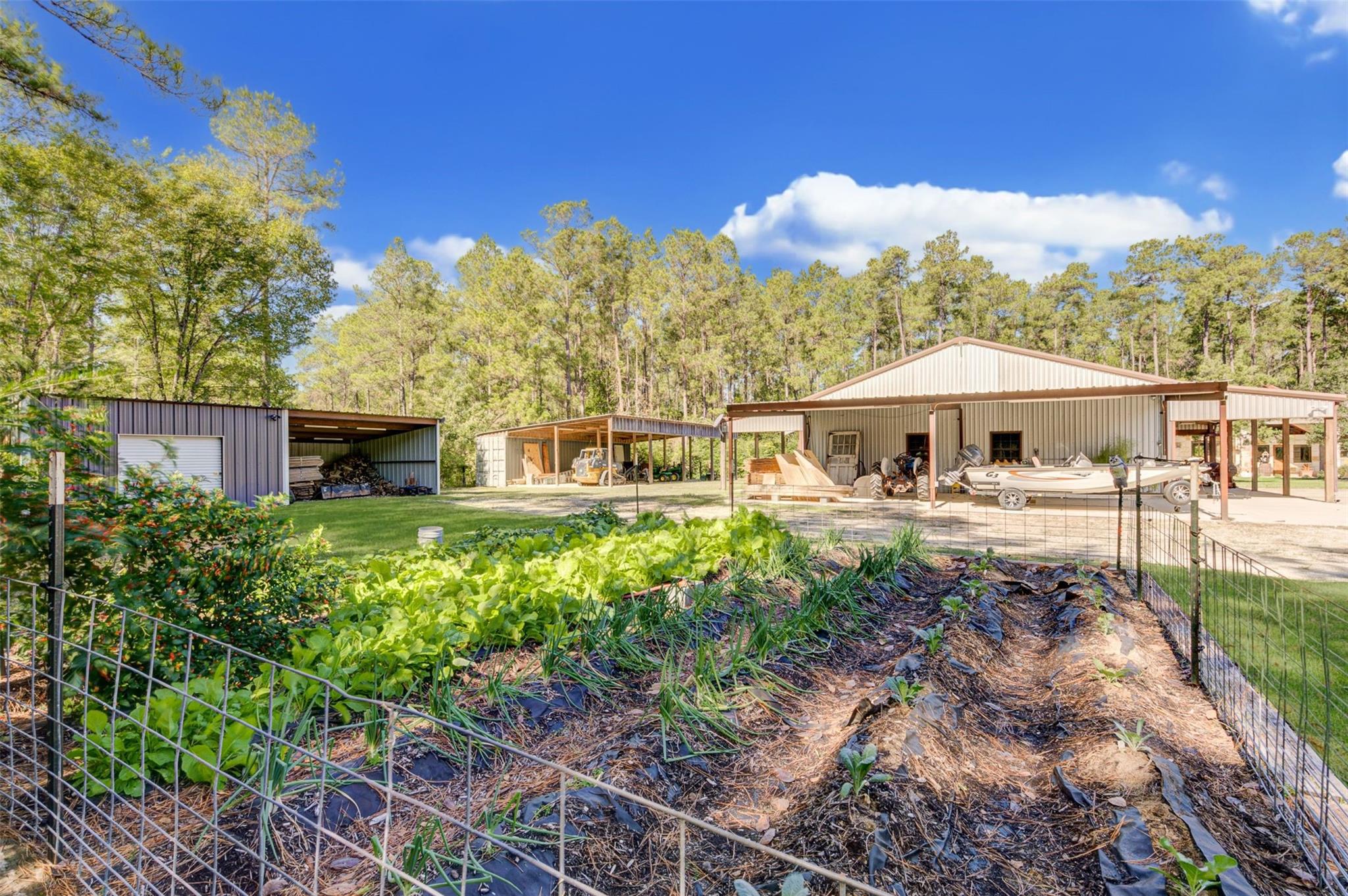 A Truly Remarkable Private Estate on 13 Acres! You know you've arrived somewhere special as you leave the county road and enter the property. The residence is completely surrounded by a natural timber line for maximum privacy. The Primary 1 story Custom Home was Designed & Built in the Popular Farmhouse Style with Heavy exposed Beams inside & out. Antique Entry into a huge Naturally Lighted, Family Room & Kitchen with a Weathered Corrugated Metal Ceiling and Stained Concrete Flooring. Enjoy your family & friends while preparing & serving dinner in this Fantastic Kitchen that looks like a picture from a magazine. Convenient Butler Pantry accesses the Utility Room & Porte Cochere/Carport. Time for bed? Comfortable Primary Carpeted Bedroom with a large private bathroom & Jetted Tub & Separate Shower. Three additional bedrooms opposite the Family Room. Relax in your backyard oasis - pool & bar. You'll spend a lot of time in the Secondary Shop & Kitchen. Other bldgs to store your extras!