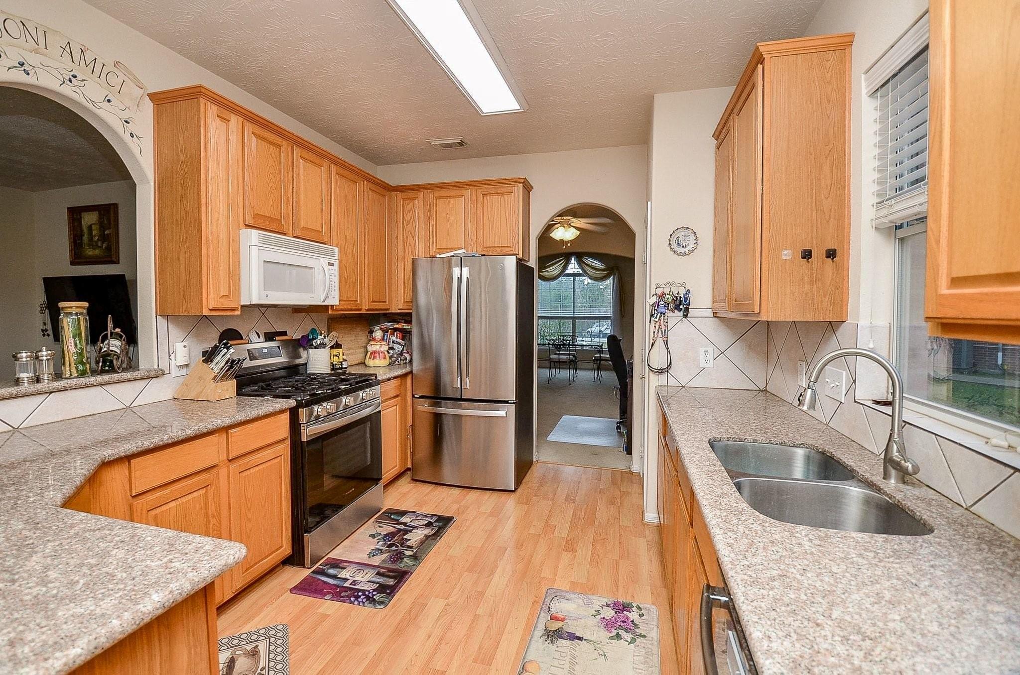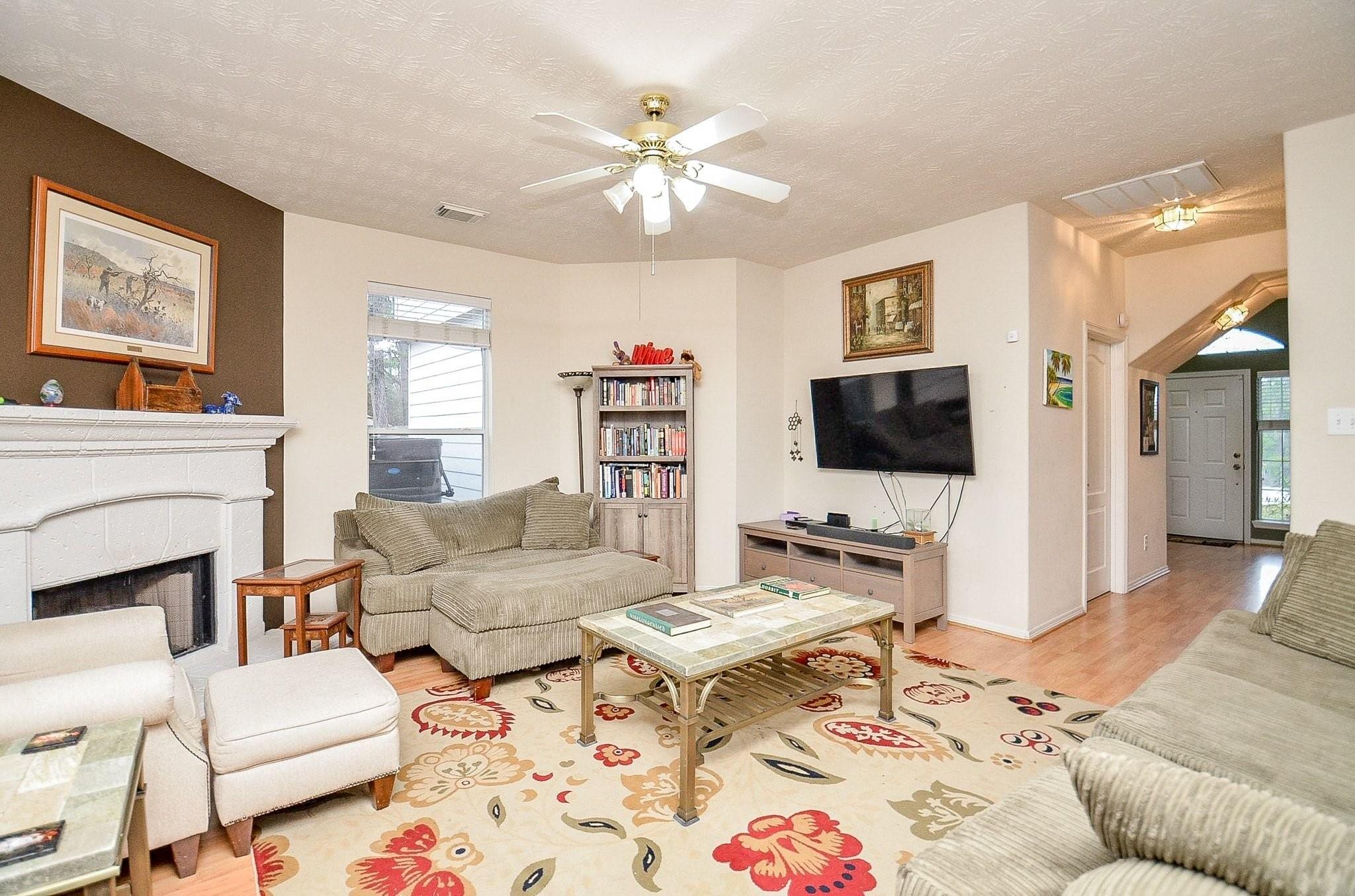 Located minutes from Downtown Magnolia in The Villages of Heritage Point, this 4-bedroom, 2.5-bath home sits on a nearly half-acre cul-de-sac lot. A grand two-story foyer opens to a welcoming layout featuring a formal dining room, a flexible formal living area, and a spacious family room with a fireplace. The kitchen offers granite countertops, ample cabinetry, and stainless steel appliances, including a custom-fit refrigerator. Upstairs, all bedrooms are thoughtfully arranged alongside a versatile game room. The primary suite features an en-suite bath with dual sinks, a soaking tub, a separate shower, and a walk-in closet. A dedicated laundry room includes a washer and dryer. Additional features include rich laminate flooring, an alarm system, zoned A/C and heating, and a 2-car garage. The back patio and expansive backyard surrounded by mature trees provides space for outdoor living, just minutes from shopping, dining, and daily conveniences. Home is being sold as-is.