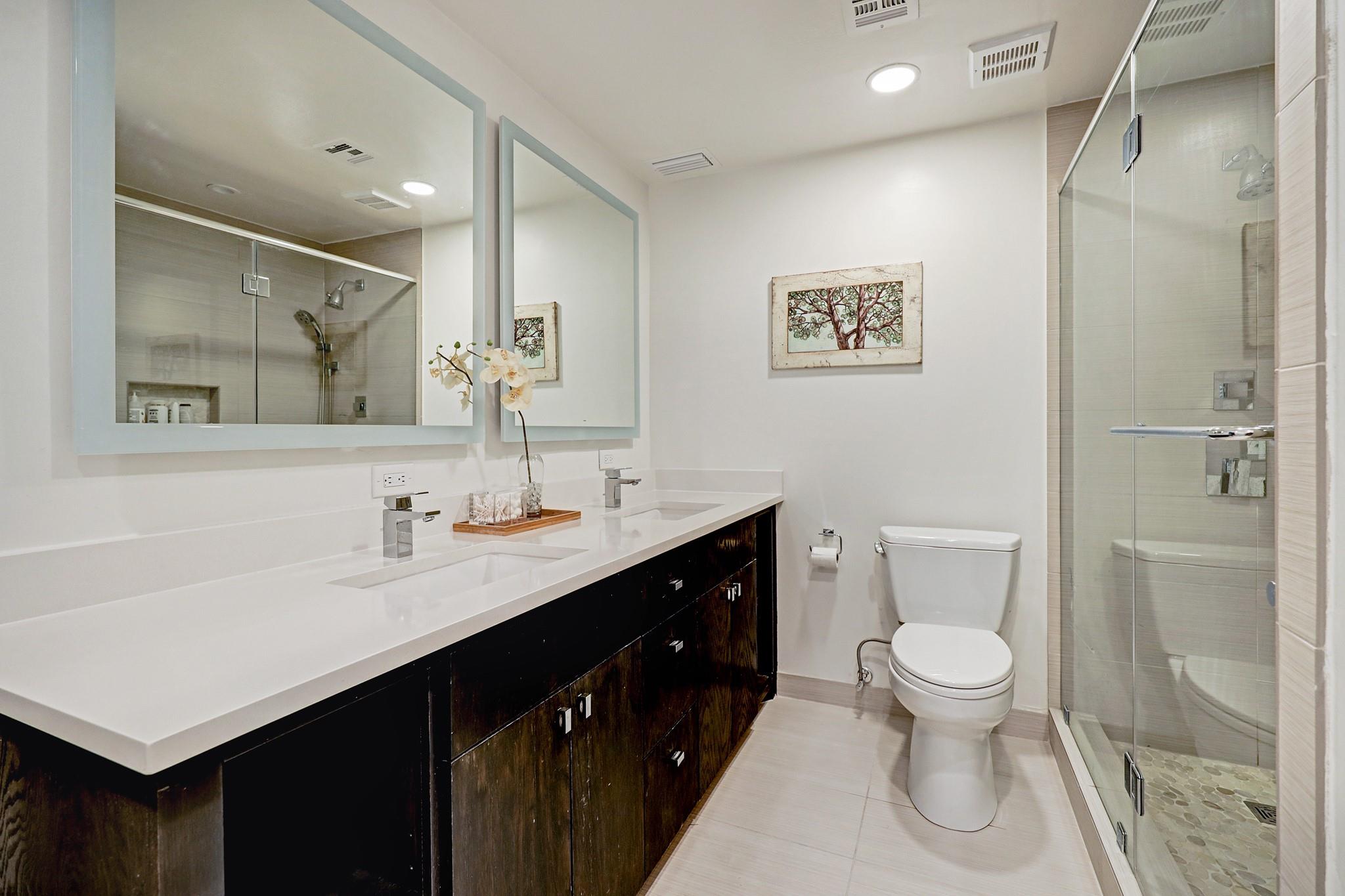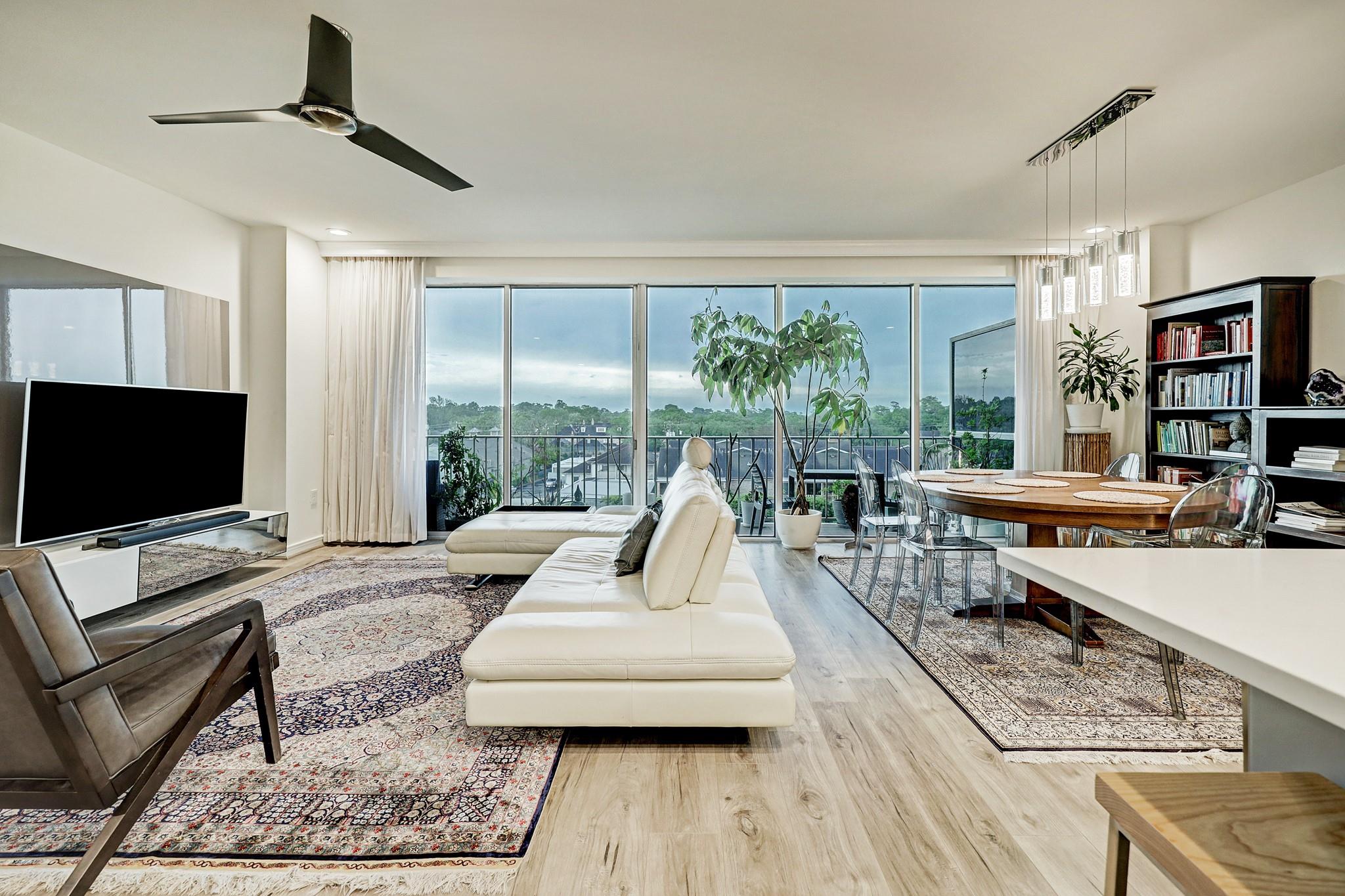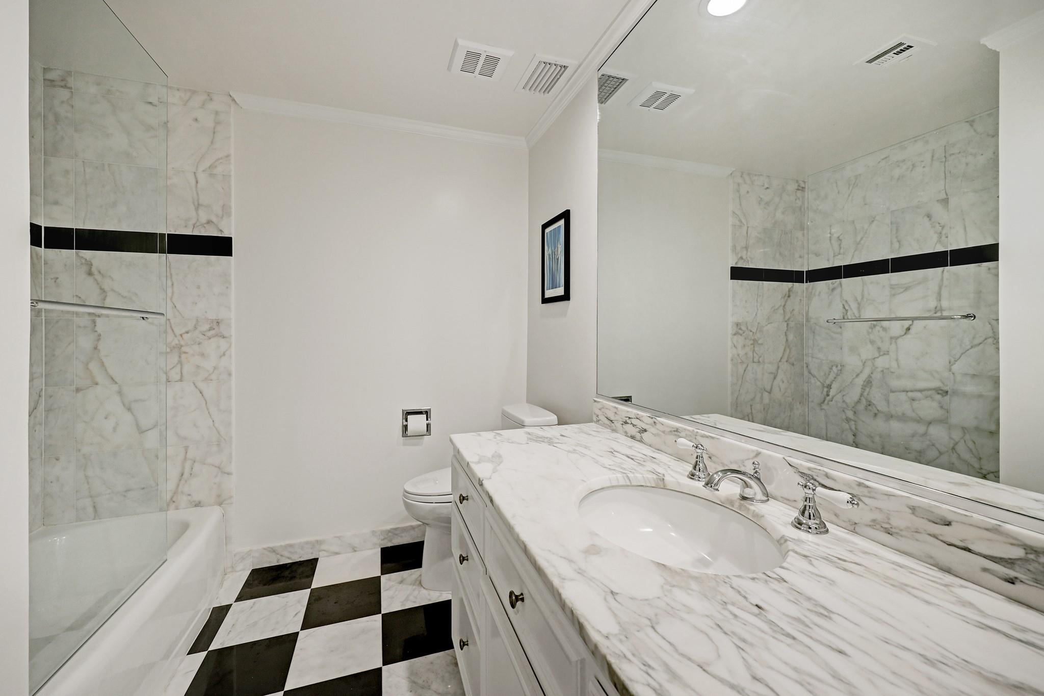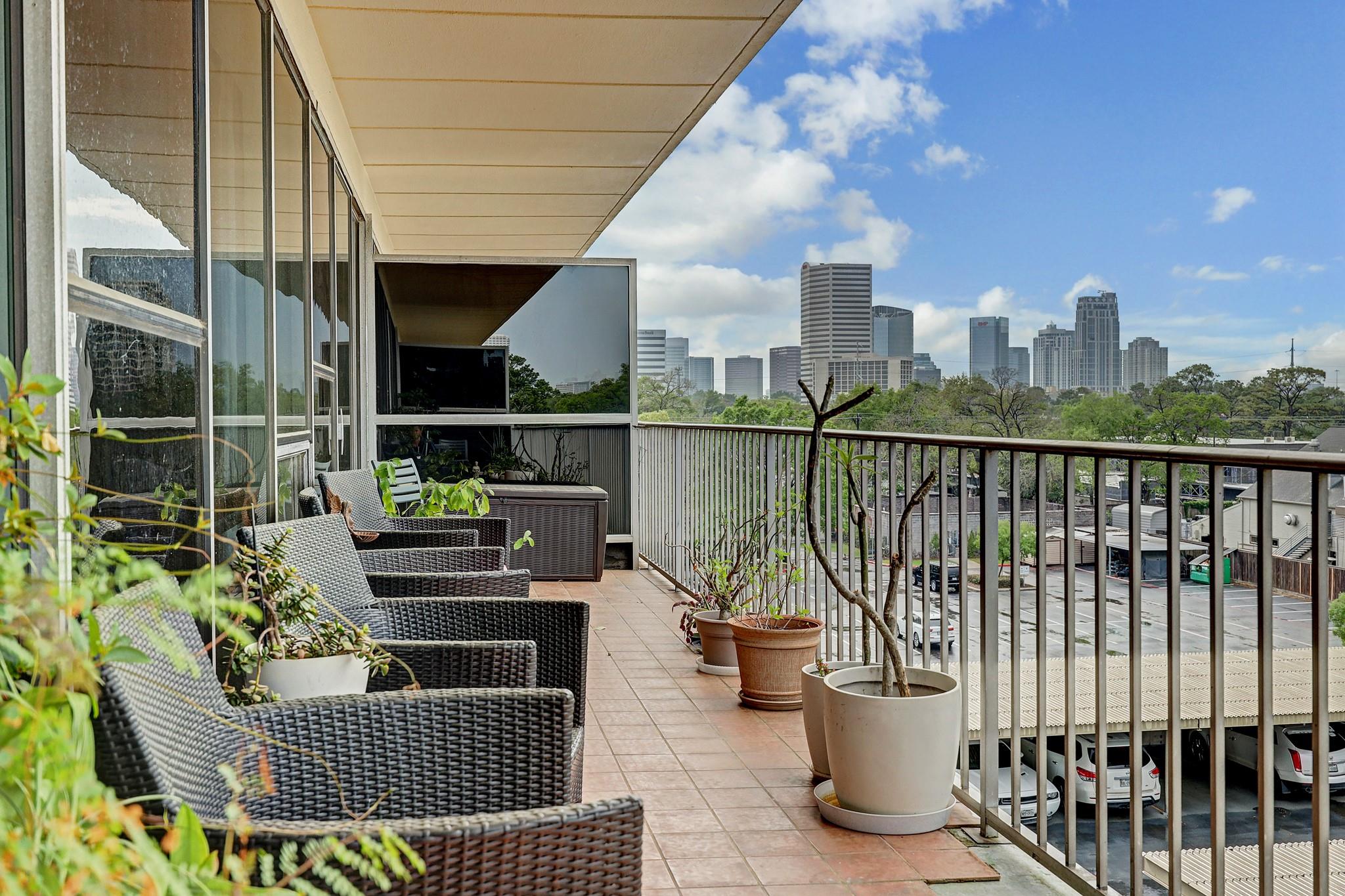 Live in the heart of Houston's upscale River Oaks neighborhood is this beautifully remodeled 2 bd/2 ba 4th flr unit.Step into a modern European-inspired open-concept layout w/ stunning kitchen complete w/ new hardware, floor-to-ceiling pantry cabinets,quartz peninsula,& built-in wine cooler.Spacious primary bed. includes an updated en-suite bath w/ a double-sink vanity, lighted mirrors, quartz counters, & walk-in shower.This space retains its original charm with a preserved marble vanity, marble floors, & shower/tub.Versatile flex room offers space for home office or additional storage. Stretching the full length of unit, the expansive balcony is ideal for relaxing or entertaining and offers lovely views of the skyline and pool. HOA covers all utilities, quarterly pest control, semi-annual AC filter changes.Enjoy access to premium amenities: grocery delivery to unit, pool, spa, fitness center, party room, outdoor kitchen, gas fireplace, 3 guest suites, concierge service, 24/7 security.