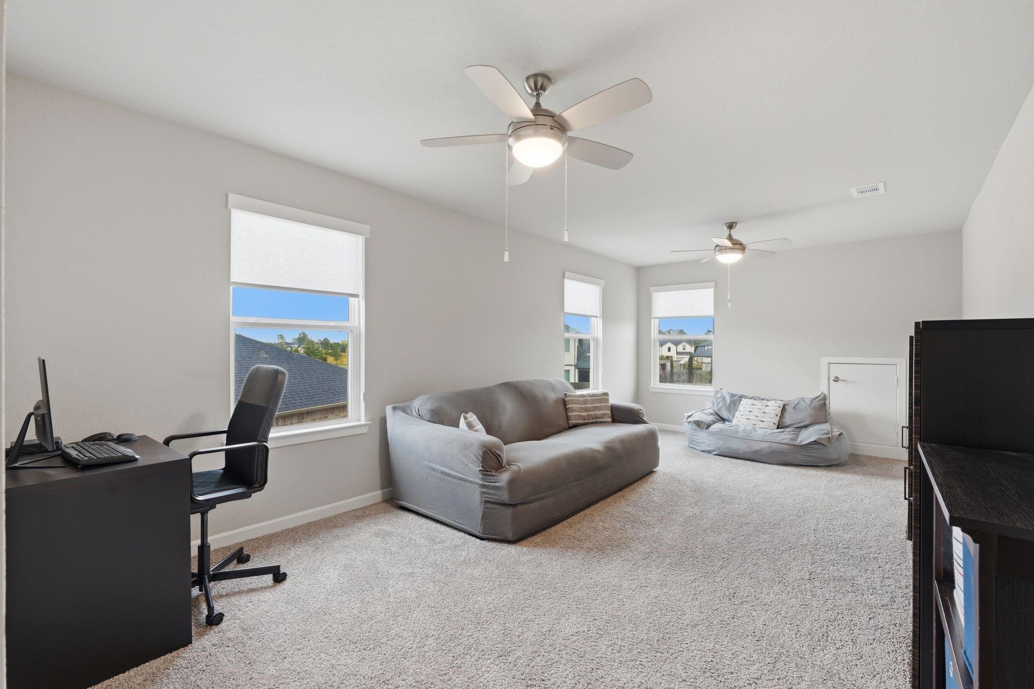 Beautiful Taylor Morrison home 4-bedroom, 3.5-bath home in Raburn Reserve offering 2,768 sq ft of thoughtfully designed living space. Features include a private home office downstairs and a spacious game room upstairs. Situated on an oversized cul de sac 14,000+ sq ft lot—one of the largest in the neighborhood—this property offers an extended patio and outdoor gas hookup, perfect for entertaining. This home is also in walking distance to the neighborhood pool and amenities! Upgrades include a whole-home dehumidifier, Stage 2 EV charger in the garage, custom roll-down blinds throughout, and plantation shutters in the dining room to name a few. Conveniently located with easy access to 99 and downtown Tomball, and zoned to top-rated Tomball ISD schools. Don't miss out on this gem!