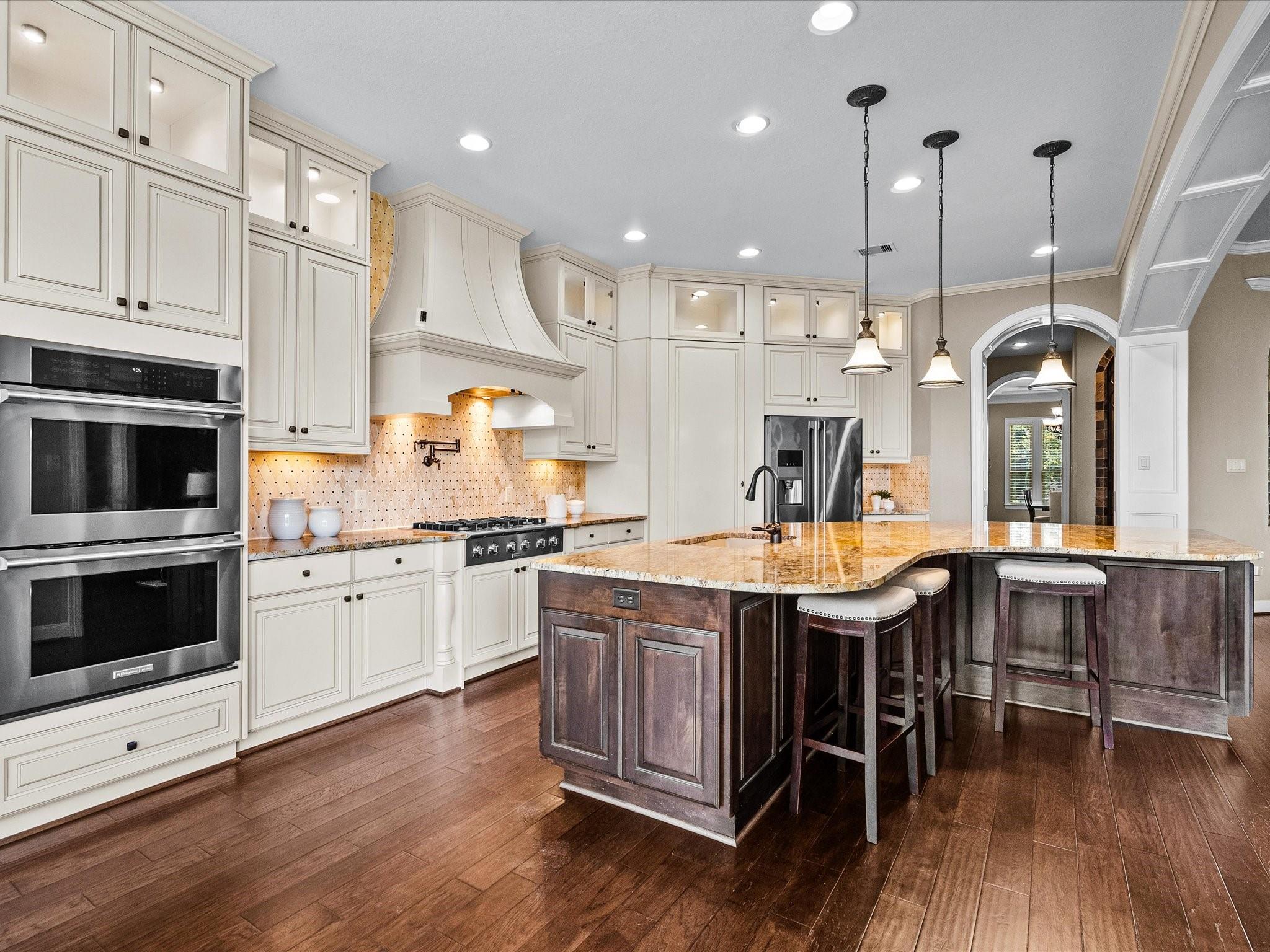 InteriorFireplace:1/Gaslog FireplaceFloors:Concrete,Tile,WoodBathroom Description:Primary Bath: Double Sinks,Primary Bath: Separate Shower,Primary Bath: Soaking TubBedroom Desc:Primary Bed - 1st FloorKitchen Desc:Breakfast BarRoom Description:1 Living Area,Breakfast Room,Formal Dining,Gameroom Up,Home Office/Study,Media,Utility Room in House,Wine RoomHeating:Central GasCooling:Central ElectricConnections:Washer ConnectionsDishwasher:YesDisposal:YesMicrowave:YesRange:Gas CooktopOven:Double Oven,Gas OvenInterior:Crown Molding,Fire/Smoke Alarm,Formal Entry/Foyer,High Ceiling,Prewired for Alarm System