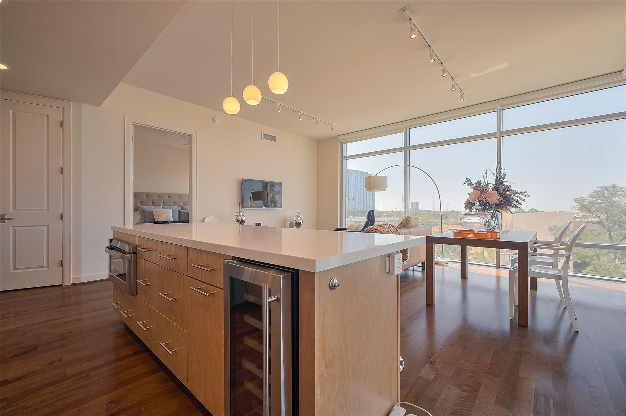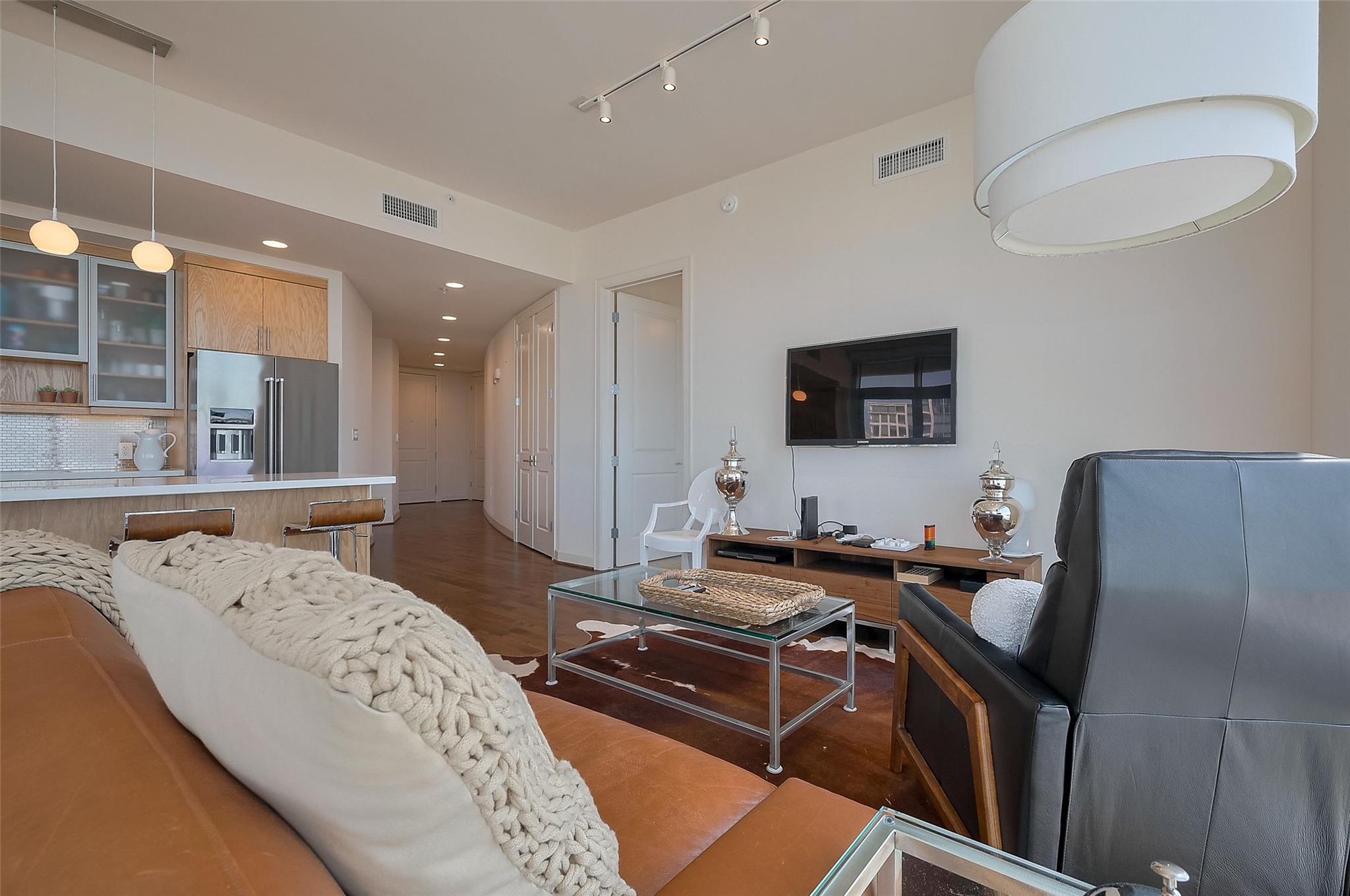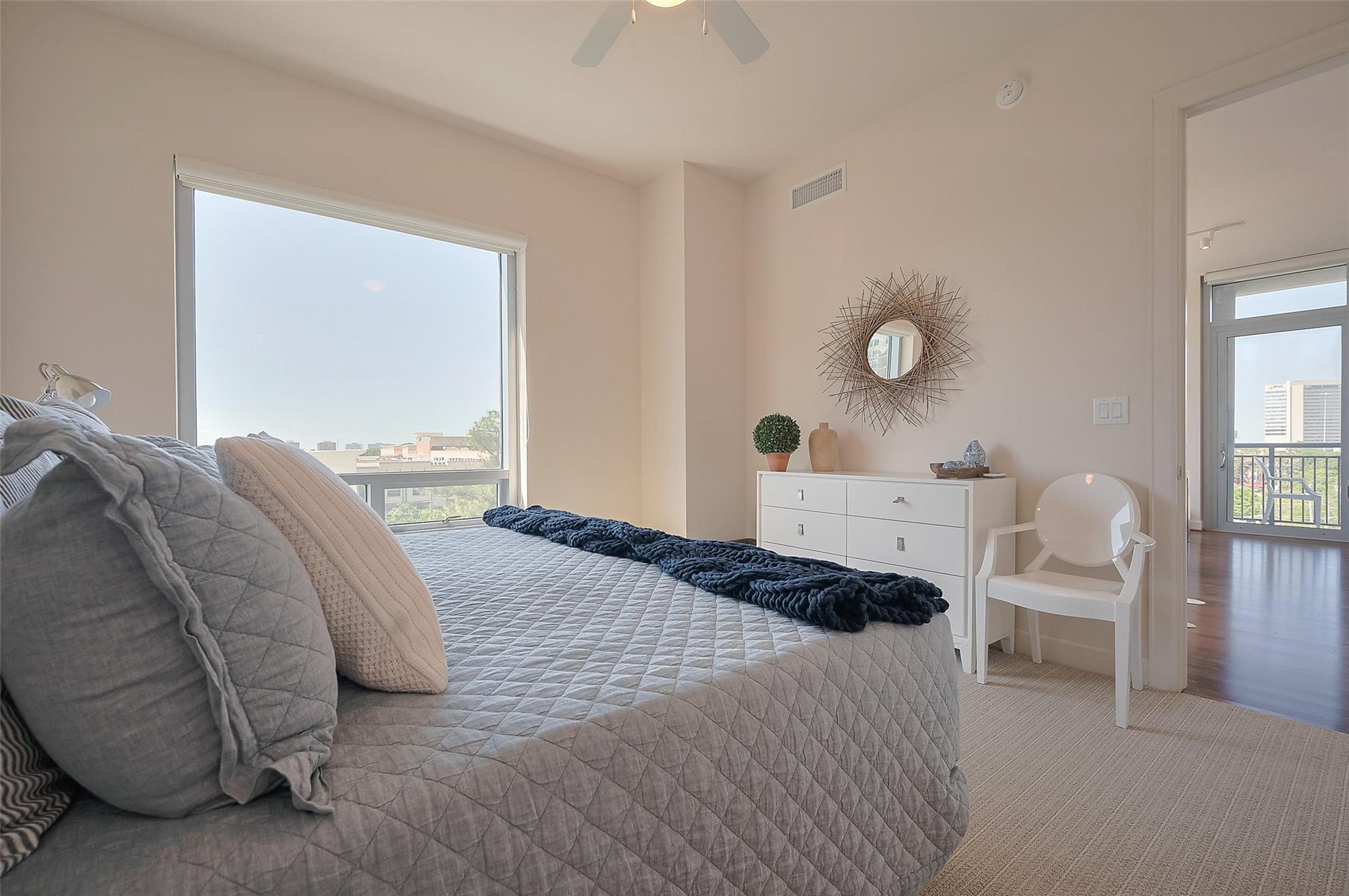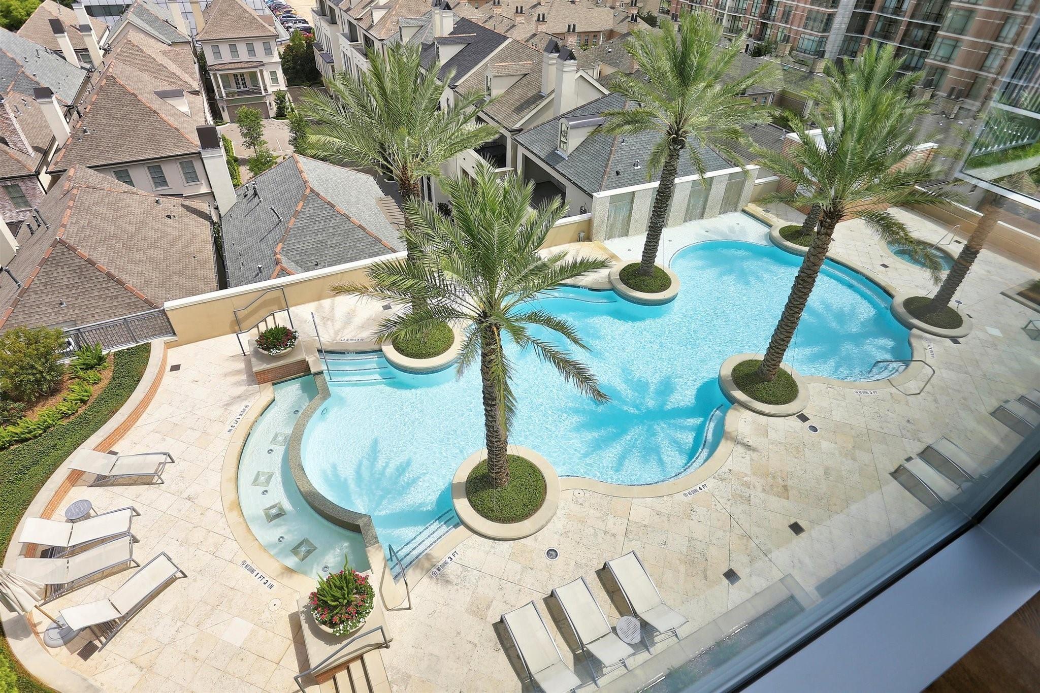 Experience a simplified and secure lifestyle with this stylish 2-Bedroom Highland Tower residence offering a chic central location and tranquil treetop views with southwestern exposures overlooking the River Oaks District and beyond. The fabulous floor plan offers open-concept living spaces enhanced by substantial 11.5+ ft. ceiling heights, walls of windows with shades plus blackout, and an island kitchen with marble countertops and stainless steel appliances, including a gas cooktop and double drawer beverage chiller. The primary suite has a marble bath and a walk-in closet—home Office alcove. Building Amenities include valet parking, 24-hour concierge, on-site management, a 5th-floor terrace with pool, outdoor grill, fireplaces, a well-equipped gym, massage room, party room, and catering kitchen. 2-Reserved Parking Spaces + climate-controlled Storage Unit on 3rd floor.