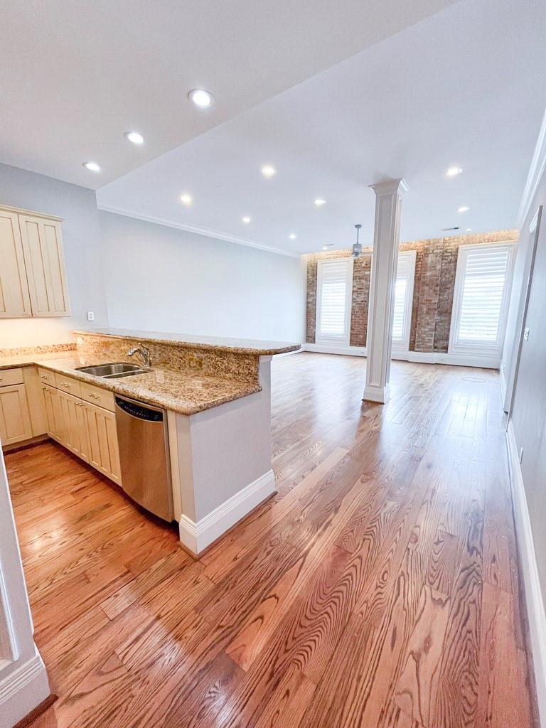 **CHARMING 2 BEDROOM CONDO in the HISTORIC EIBANDS BUILDING ON POSTOFFICE ST** Spacious 2-bedroom, 2-bath second-floor condo on Postoffice St. This is downtown living at its best, located in the heart of Galveston. This 1,689 sq ft unit features high ceilings, wood floors, abundant natural light, and views of Trinity Episcopal Church. The large kitchen offers granite countertops and stainless appliances. Both bedrooms include private baths and walk-in closets. Building amenities include a fitness center, indoor pool, hot tub, sauna, secure entry, gated parking, and private storage. Enjoy the walkability, history, and community, with the Galveston Opera House just 0.2 miles away, UTMB Health approximately 0.6 miles away, and the beach about 1.2 miles away—an easy bike ride for early mornings along the Seawall.Whether as a primary residence or a Galveston getaway, downtown living is where it all comes together. Experience the charm of Living Galveston… It’s a Lifestyle.
