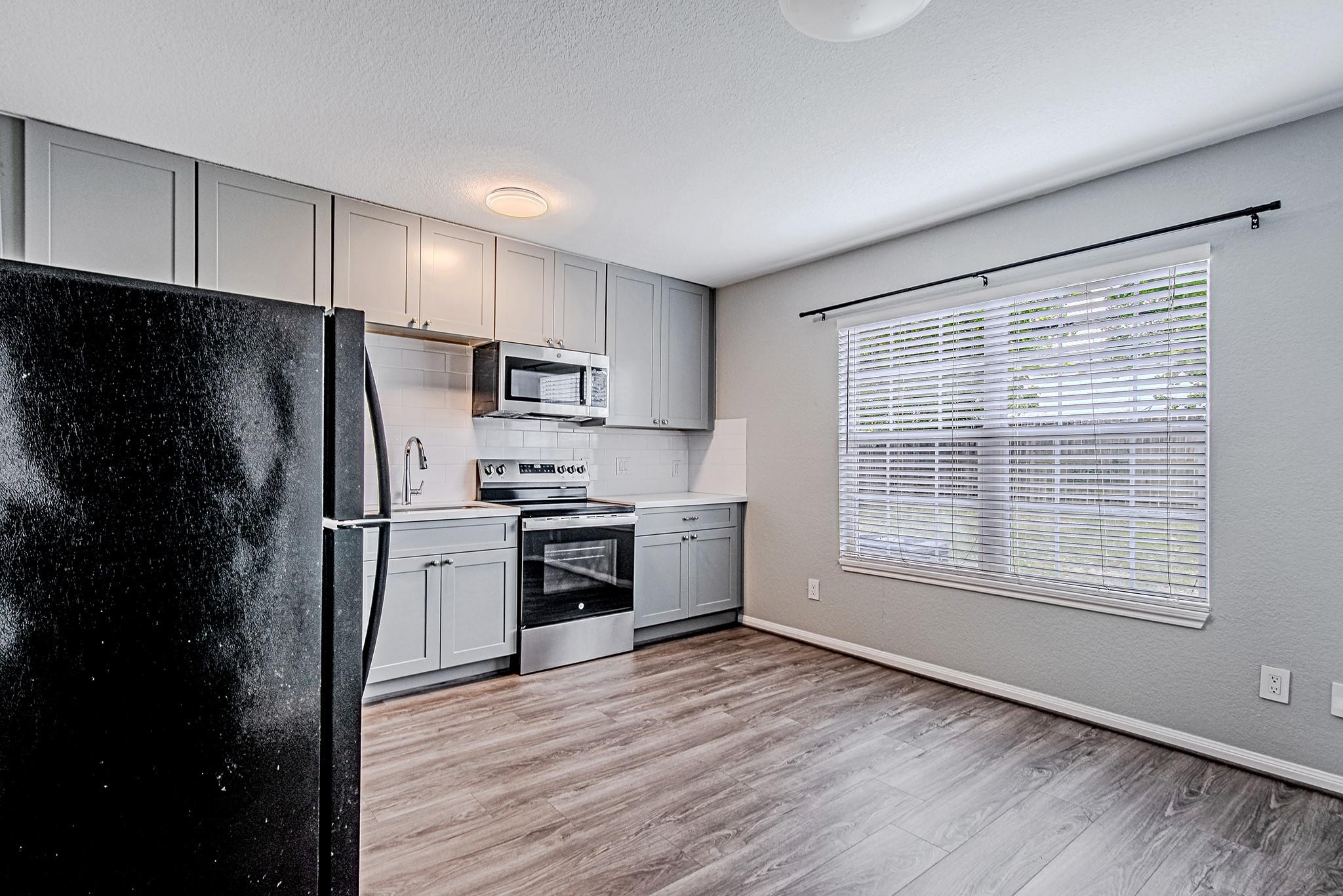 Welcome to this beautifully updated home in Pasadena! Step inside to a bright, move-in-ready space featuring fresh paint, new flooring, and modern finishes throughout. The inviting living area offers soft gray tones and plush carpet that flow into spacious bedrooms with large windows bringing in plenty of natural light. The kitchen shines with stainless steel appliances, gray shaker cabinets, subway-tile backsplash, and durable wood-look flooring, creating a clean, contemporary look perfect for everyday living. The bathroom features stylish tilework and updated fixtures for a sleek finish. Enjoy outdoor relaxation in the fully fenced backyard with mature trees and a storage shed, ideal for gardening or weekend gatherings. Complete with an attached garage and a wide driveway for added convenience, this home combines comfort, function, and charm—all in a quiet Pasadena neighborhood with easy access to nearby schools, parks, and shopping.