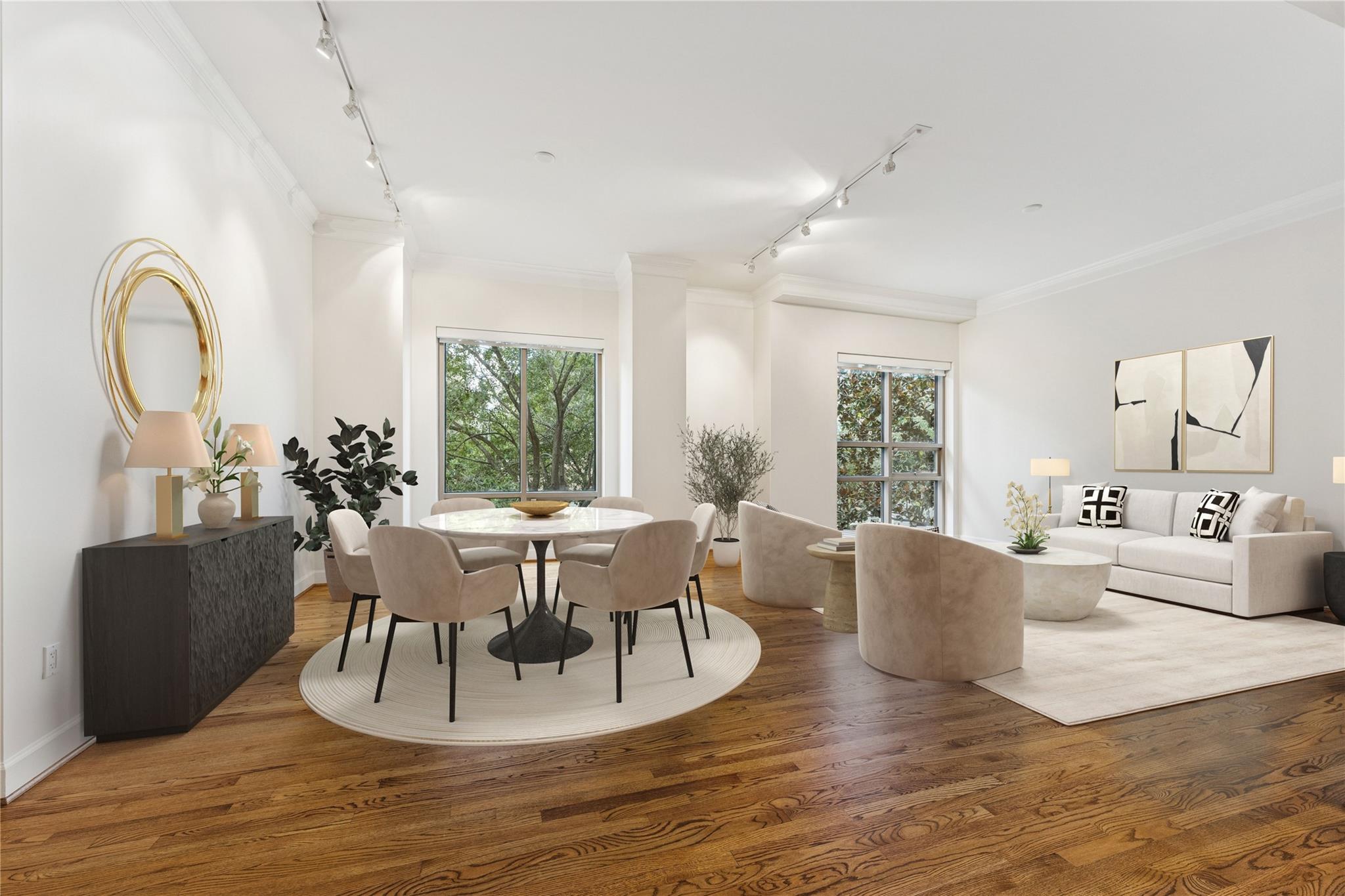 With soaring ceilings, hardwoods, crown molding, large windows with solar screens, and so much more, this 2 bedroom, 2 bath, plus an office space, is a find! This floorplan is one of the largest 2/2 in the building and rarely comes on the market. Open living/dining room. Kitchen features an abundance of cabinets, soft close drawers, granite countertops and a breakfast bar. Another special feature of this unit is the large storage closet across the hall from the condo! Building amenities include 24-hour concierge, pool, gym, and 2 decks for outdoor grilling and entertaining. Close to The Galleria, River Oaks Shopping District on Westheimer, Highland Village, Memorial Park and major highways. Per Seller