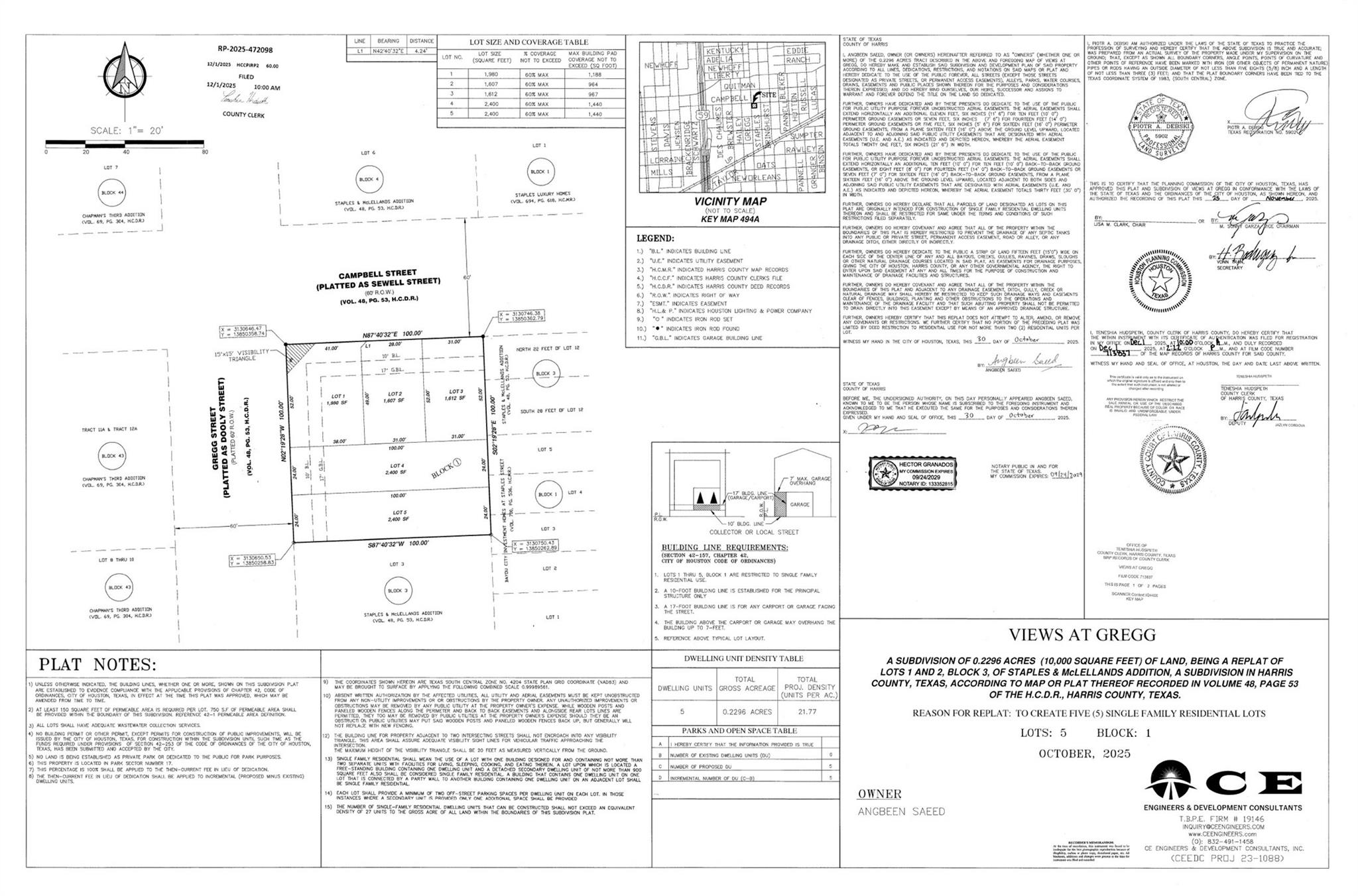 This is a great investment opportunity for builders to build in highly sought after area near downtown with close proximity to Theaters, parks, universities and world's largest Texas Medical Center. The lot is replated and divided into 5 lots with front facing houses and can build two car garage houses.