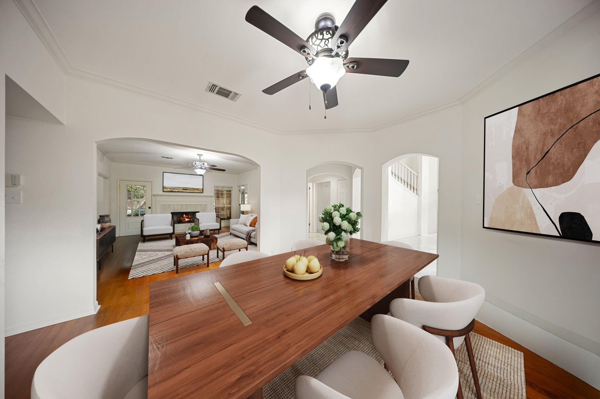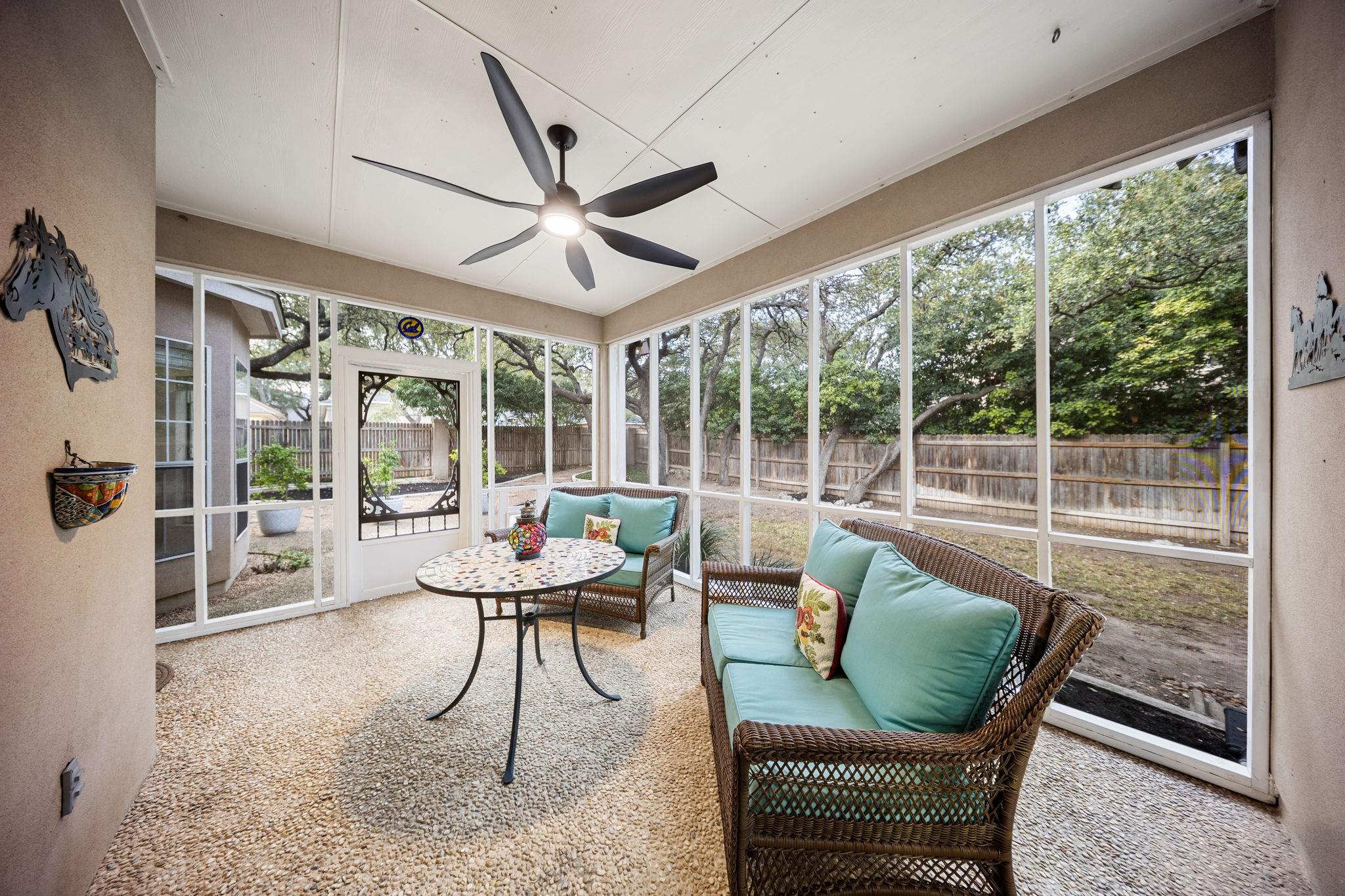 Welcome home to 2231 Bentoak Hollow, in the desirable, tree-lined Oakwood community. This well-appointed home offers 5 bedrooms, 3 full baths, and a 2-car garage. Upon entry, you are greeted by an impressive foyer with floor to ceiling windows, framed by a formal dining area and wraparound staircase. Featuring two separate living areas, an island kitchen, and a downstairs bedroom, the layout is ideal for entertaining and flexible living. The living room showcases a beautiful fireplace and large windows that fill the space with natural light, flowing into the family room. Both areas provide access to the screened-in porch, creating a comfortable indoor-outdoor connection. Upstairs, the primary suite offers a retreat, along with three secondary bedrooms. Step outside to enjoy the covered screened porch and backyard shaded by mature oak trees. Updates include tankless hot water heater and water softener + more. Conveniently located near North Star Mall, dining, entertainment, and more.