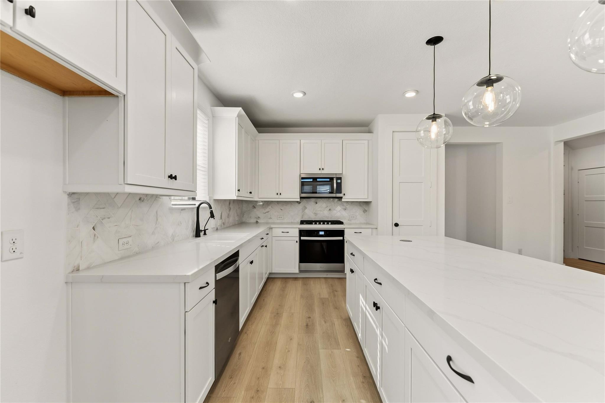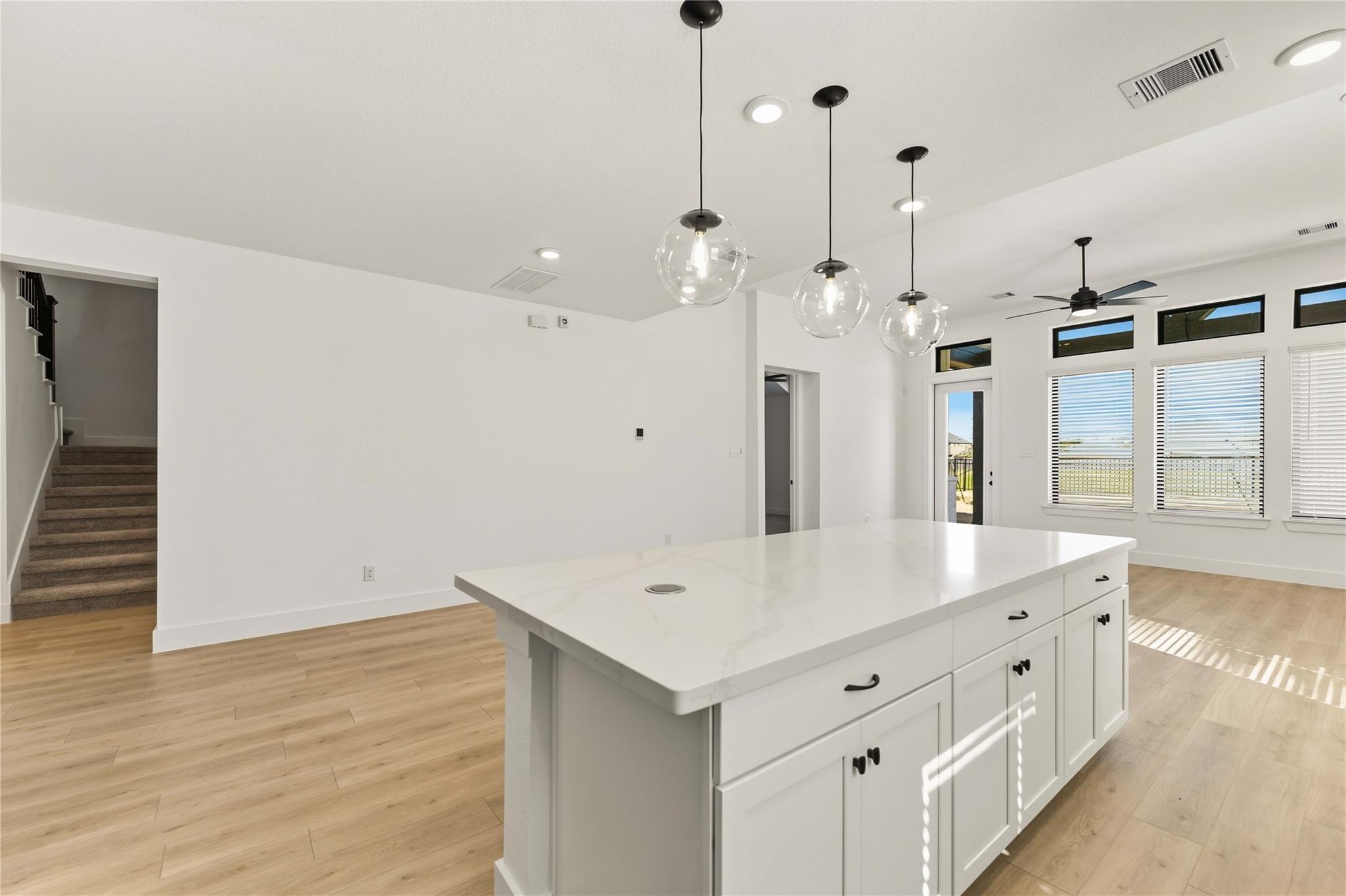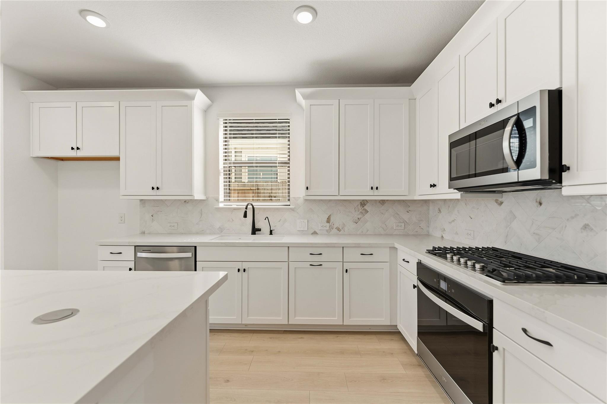 InteriorFloors:Carpet,Engineered Wood,TileCountertop:QuartzBathroom Description:Full Secondary Bathroom Down,Primary Bath: Double Sinks,Primary Bath: Separate Shower,Primary Bath: Soaking Tub,Secondary Bath(s): Shower Only,Secondary Bath(s): Tub/Shower ComboBedroom Desc:2 Bedrooms Down,1 Bedroom Up,Primary Bed - 1st Floor,Walk-In ClosetKitchen Desc:Breakfast Bar,Island w/o Cooktop,Kitchen open to Family Room,Pantry,Under Cabinet LightingRoom Description:1 Living Area,Breakfast Room,Family Room,Gameroom Up,Living Area - 1st Floor,Living/Dining Combo,Utility Room in HouseHeating:Central GasCooling:Central ElectricWasher/Dryer Conn:YesDishwasher:YesDisposal:YesCompactor:NoMicrowave:YesRange:Gas RangeOven:Single OvenIce Maker:NoAppliances:Dryer Included,Refrigerator,Washer IncludedEnergy Feature:Ceiling Fans,Digital Program Thermostat,Energy Star Appliances,Energy Star/CFL/LED Lights,Energy Star/Reflective Roof,High-Efficiency HVAC,HVAC>15 SEER,Insulated Doors,Insulated/Low-E windows,Insulation - Batt,Insulation - Spray-Foam,Tankless/On-Demand H2O HeaterInterior:Crown Molding,Fire/Smoke Alarm,Formal Entry/Foyer,High Ceiling,Prewired for Alarm System,Refrigerator Included,Window Coverings