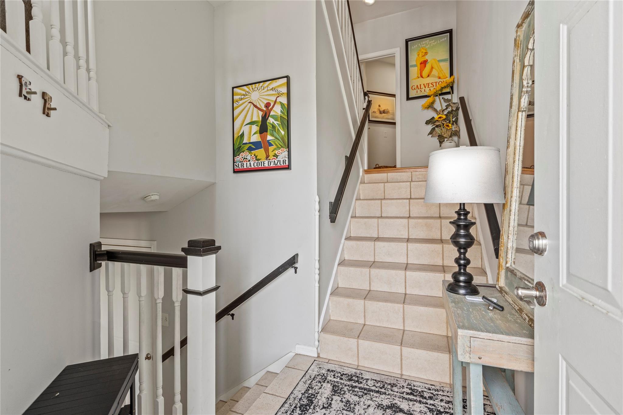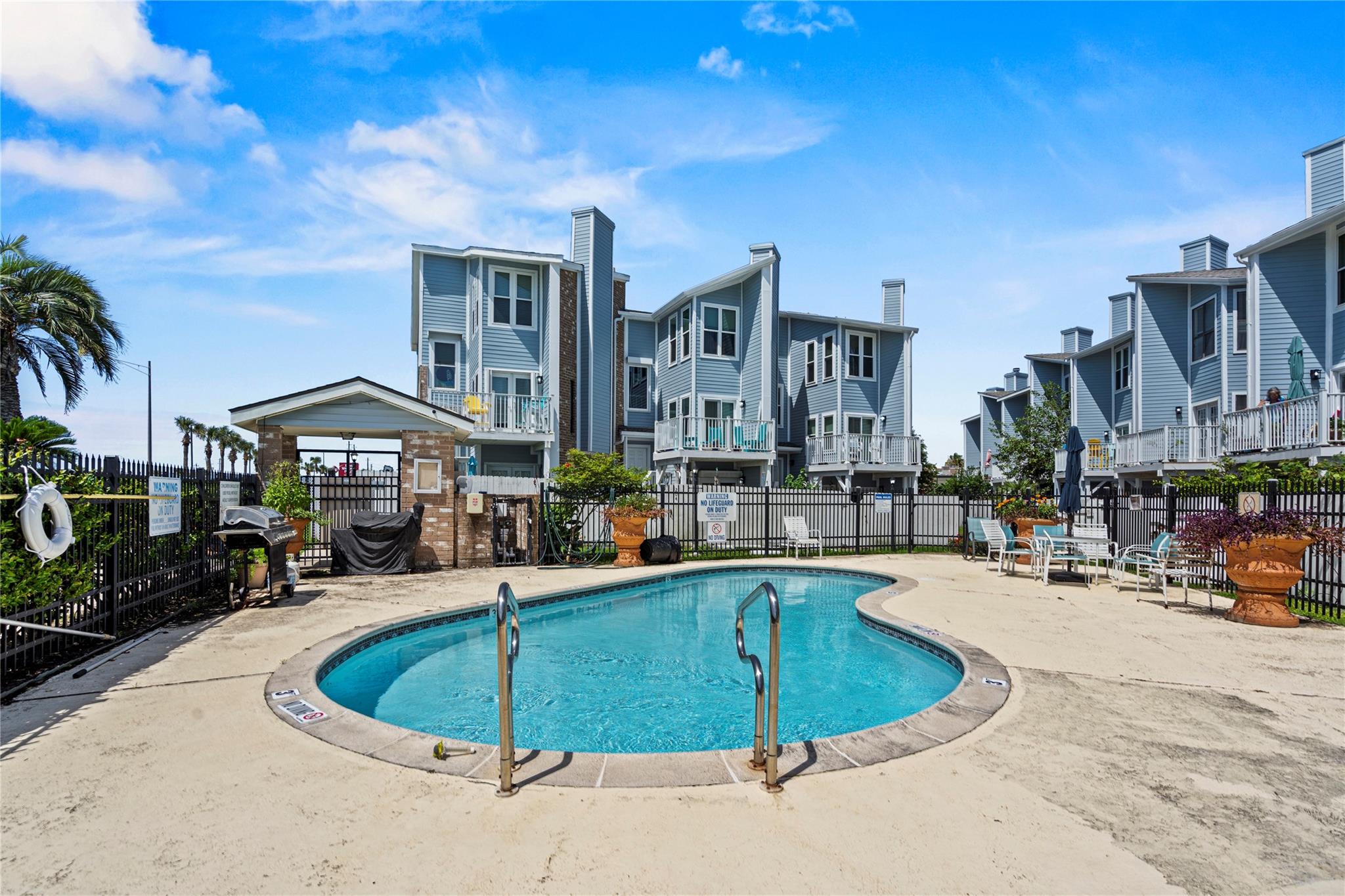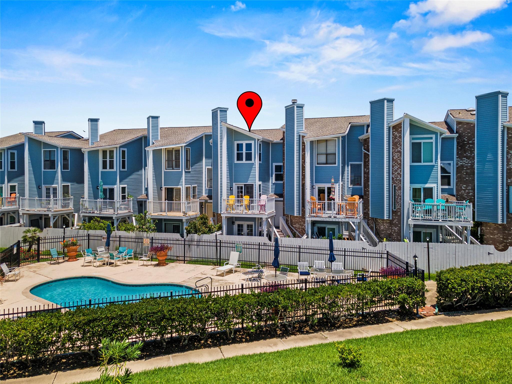 Experience the joy of living in this fully remodeled three-story townhome with stunning views of the pool & Gulf! 1st floor features attached two-car garage & private bedroom suite with French doors out to a serene courtyard. Beautifully updated interior shines on the main (2nd) floor, offering a spacious living area with decorative fireplace, elegant dining space, modern kitchen, built-in office area, & a half bath—perfect for both entertaining & everyday living. On the 3rd floor, you’ll find a generous primary bedroom with a gorgeous ensuite bath & a laundry area for added convenience. A versatile loft overlooks the living room, ideal for a cozy den or guest space. This home has never flooded & is in preferred Flood Zone X. All appliances convey & furnishings available, this property offers a seamless transition. No short-term rentals permitted. Don’t miss your chance to own this water-view townhome in a small, close-knit community with easy access to all East End amenities!
