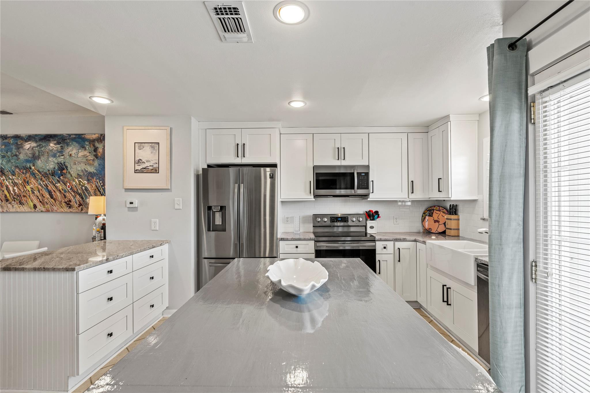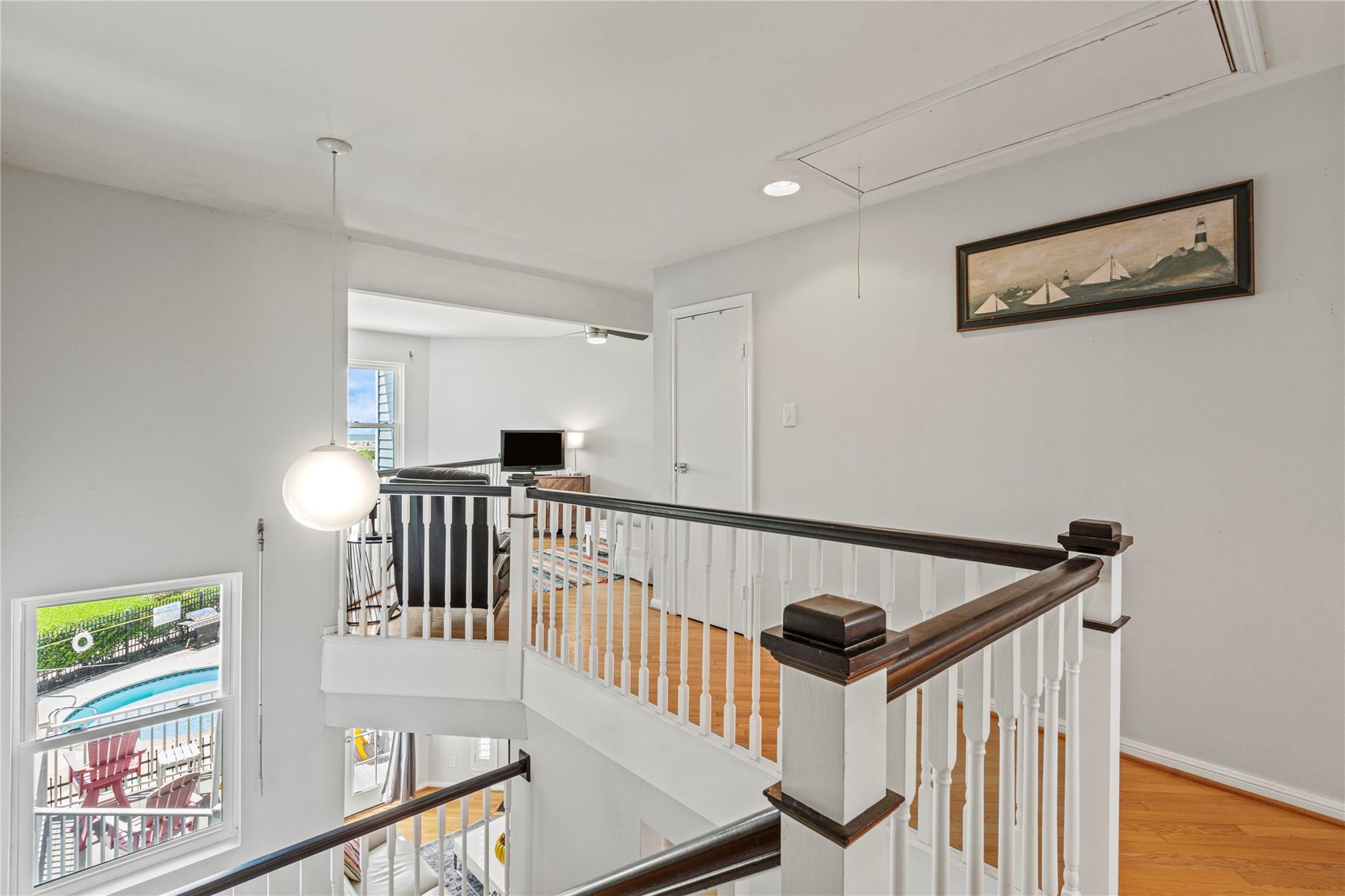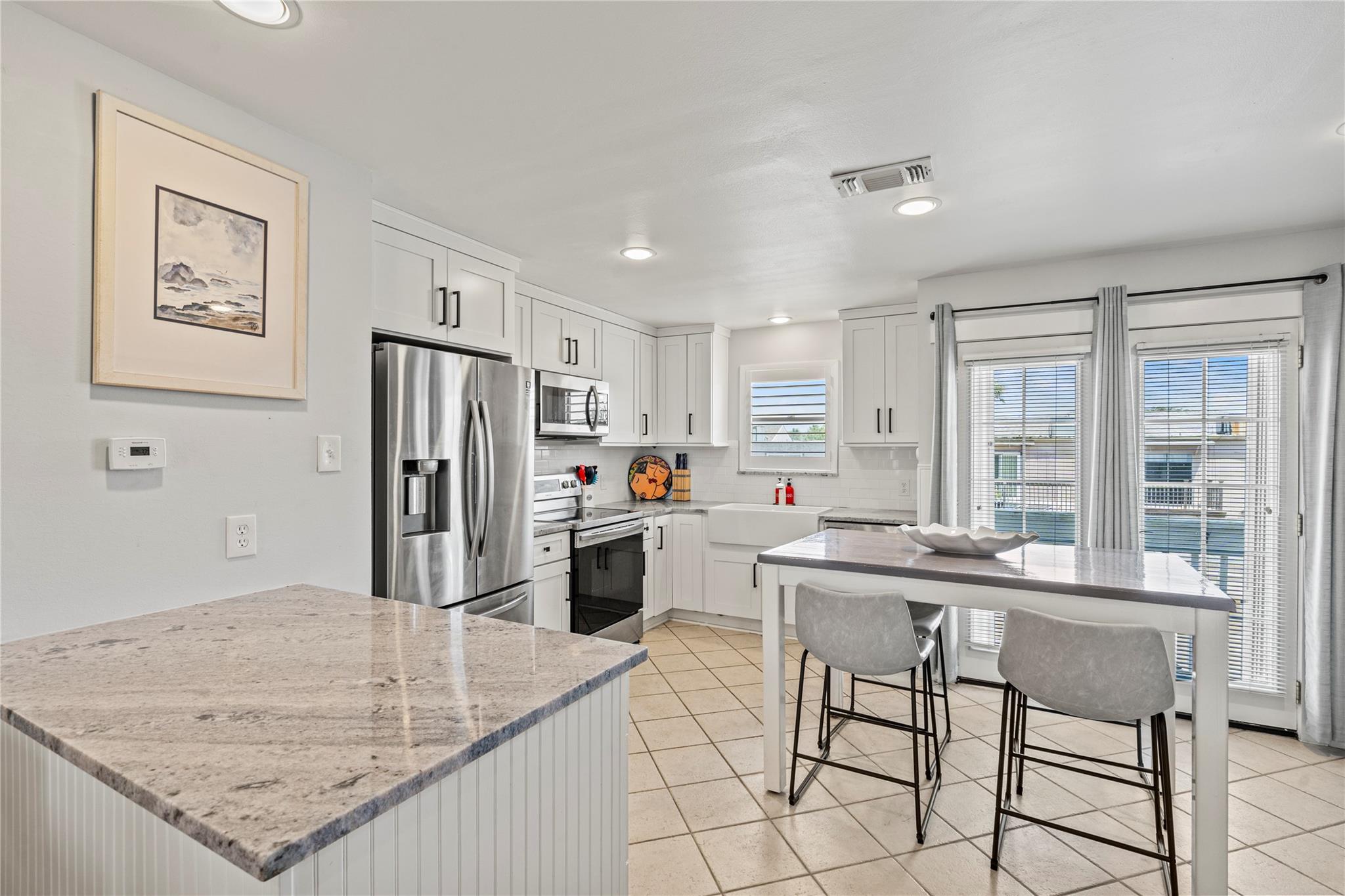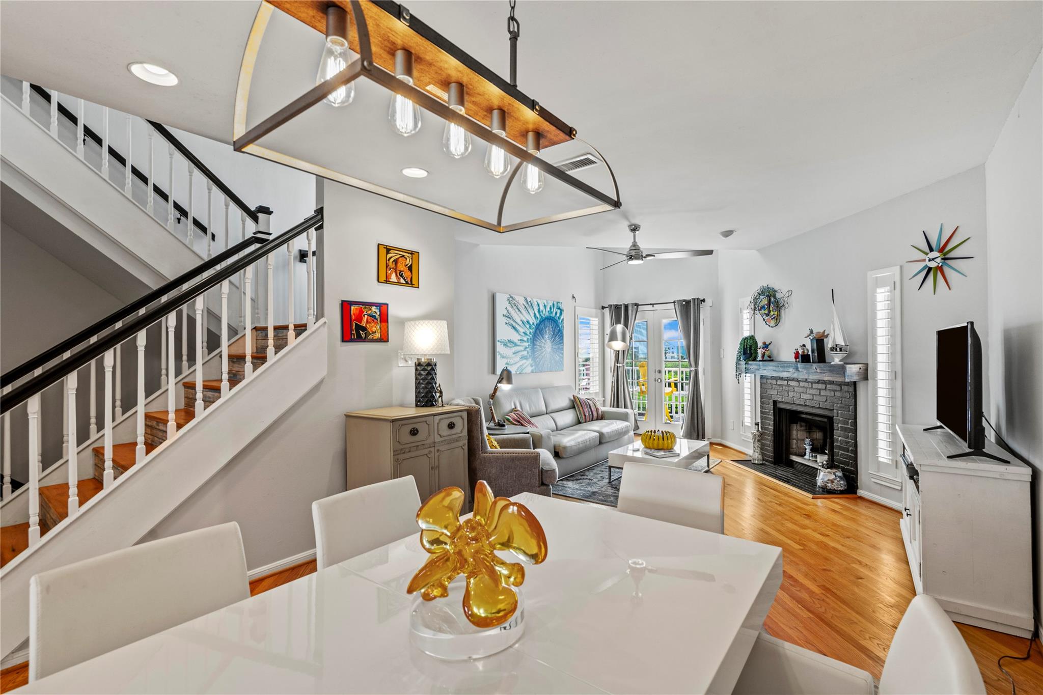 Experience the joy of living in this fully remodeled three-story townhome with stunning views of the pool & Gulf! 1st floor features attached two-car garage & private bedroom suite with French doors out to a serene courtyard. Beautifully updated interior shines on the main (2nd) floor, offering a spacious living area with decorative fireplace, elegant dining space, modern kitchen, built-in office area, & a half bath—perfect for both entertaining & everyday living. On the 3rd floor, you’ll find a generous primary bedroom with a gorgeous ensuite bath & a laundry area for added convenience. A versatile loft overlooks the living room, ideal for a cozy den or guest space. This home has never flooded & is in preferred Flood Zone X. All appliances convey & furnishings available, this property offers a seamless transition. No short-term rentals permitted. Don’t miss your chance to own this water-view townhome in a small, close-knit community with easy access to all East End amenities!