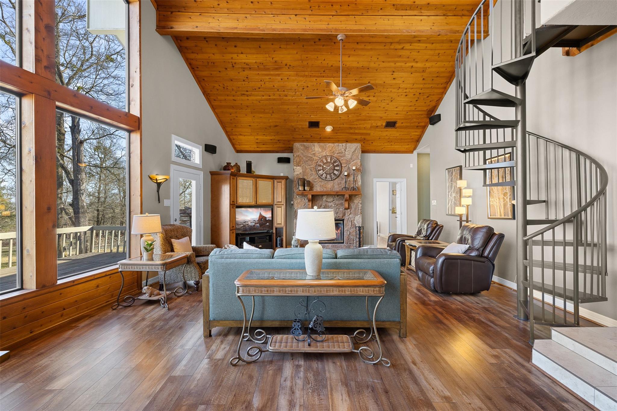 ExteriorFoundation:SlabPrivate Pool:NoLot Description:Other,Water View,Waterfront,WoodedWater Amenity:PondCarport Description:Attached CarportGarage Carport:Additional Parking,Circle Driveway,Driveway Gate,Porte-Cochere,WorkshopAccess:Driveway GateWater Sewer:Aerobic,Septic TankRoad Surface:AsphaltFront Door Face:SouthArea Pool:NoGarage Apartment:YesTree Description:Clusters,Partial Coverage