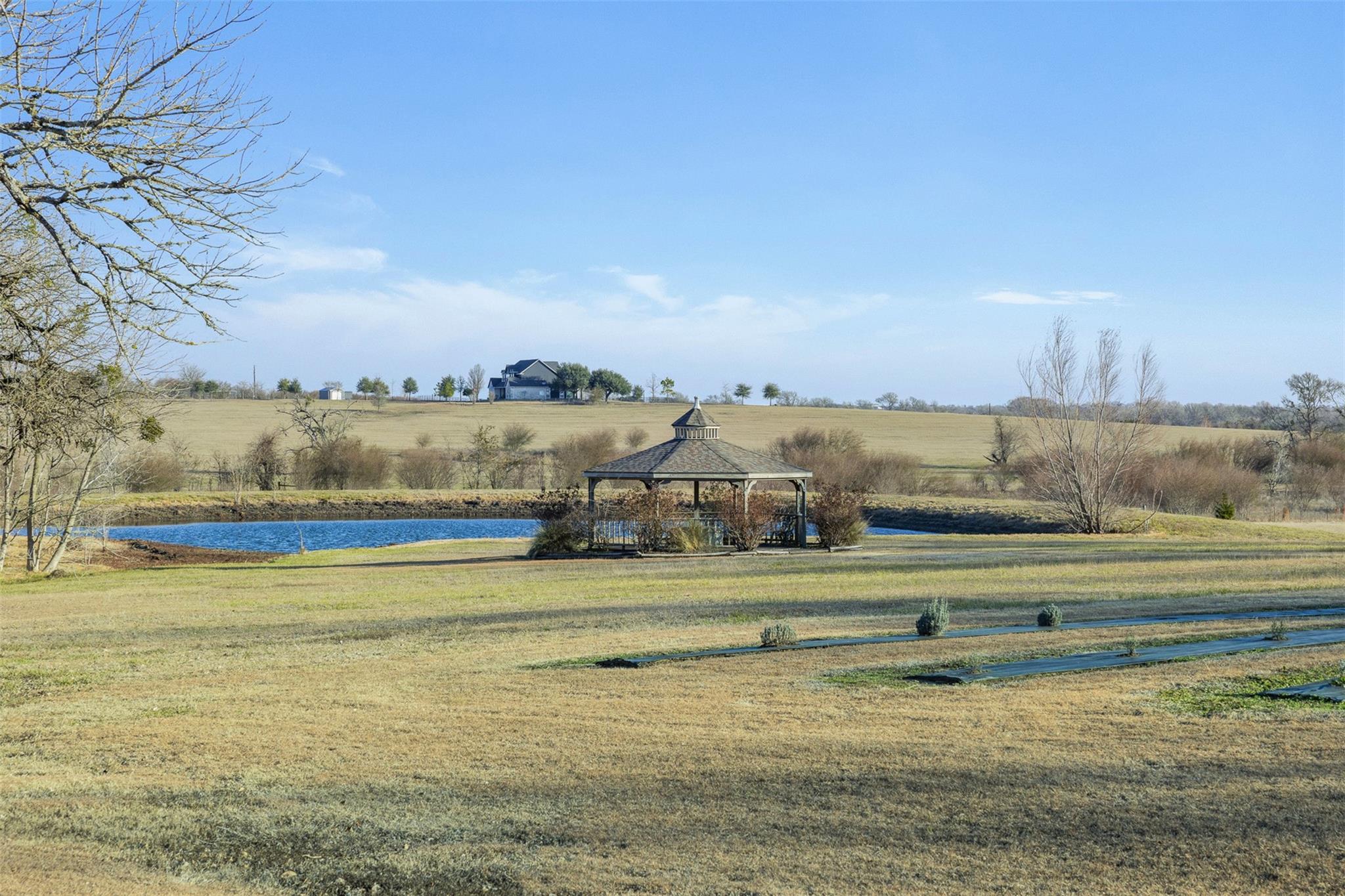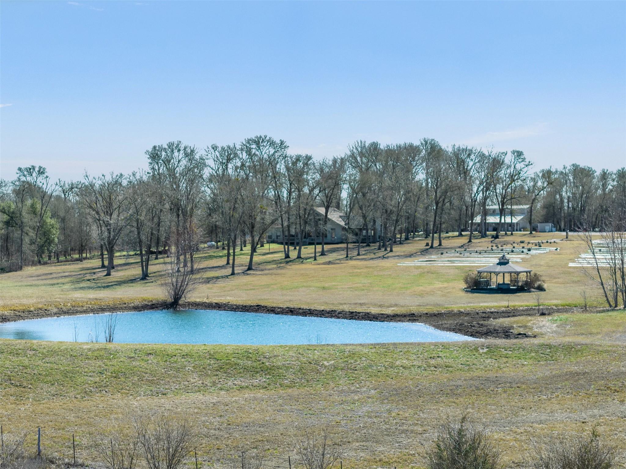 This is the dream. A rare 21-acre lavender farm just north of Chappell Hill featuring sweeping pastureland, 280 established lavender plants, and beautiful pond views. The light-filled four-bedroom, two-bath home is anchored by dramatic two-story windows that frame panoramic views of the spring-fed, stocked pond and rolling countryside, filling the open living and kitchen areas with natural light. Outdoor living includes a spacious back deck overlooking the pond, a welcoming front porch, and a covered porch. A circular driveway with porte-cochere adds elegance and everyday convenience. The property also includes a thriving fruit orchard. Additional improvements include a detached barn with approximately 900 SF apartment (1 bedroom, 1 bath, open kitchen/living area), an approximately 2,000 SF barn with office and workroom, a pondside gazebo, and a second secluded pond. Convenient access to Brenham, Navasota, and major roadways completes this exceptional and versatile countryside retreat.