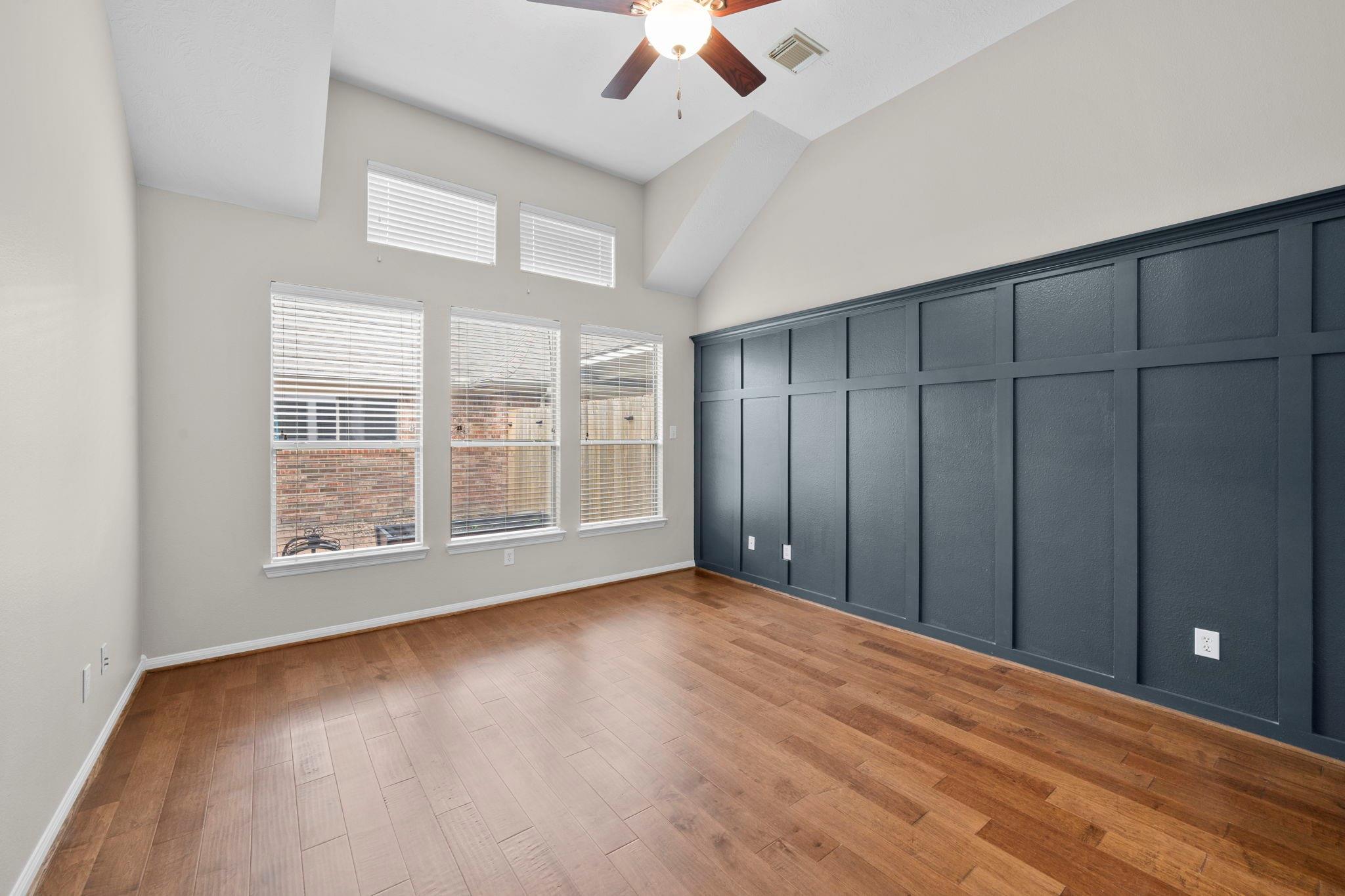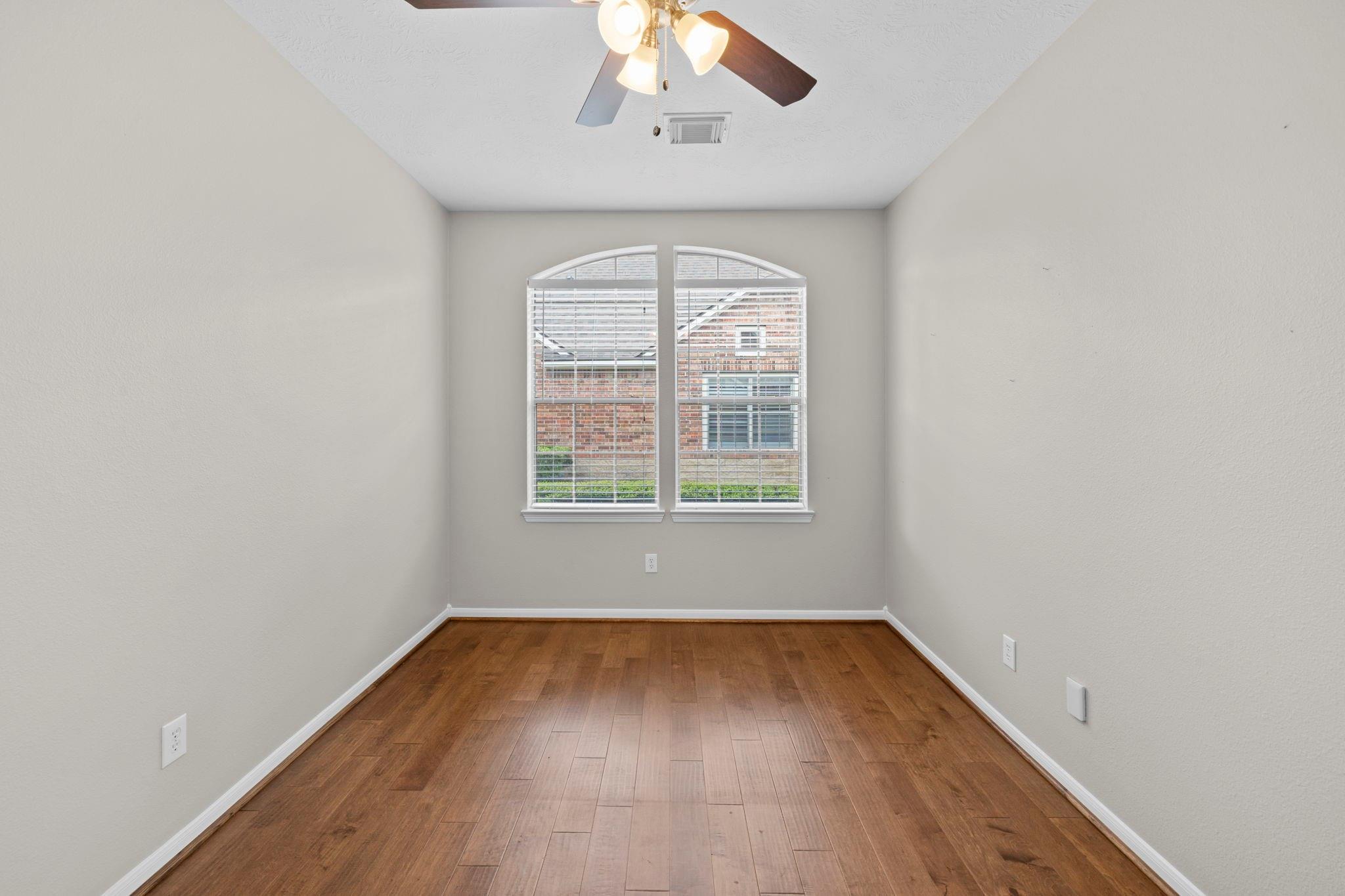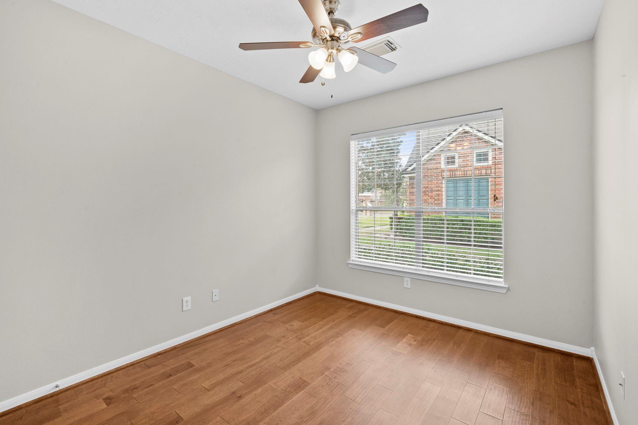 This gorgeous single-level home is truly move-in ready! Recent upgrades include fully remodeled primary & secondary baths & an updated utility room with new cabinets, flooring, & plumbing. The home features two bedrooms plus a private home office, perfect for remote work. Hardwood flooring throughout creates a seamless, elegant flow, & high ceilings enhance the spacious feel. The kitchen offers upgraded cabinetry with pull-out shelves, built-in oven, gas cooktop, raised dishwasher, pull-out trash, deep storage access, & a large walk-in pantry. The primary suite includes an accent wall and a beautifully remodeled bath with new cabinets, countertops, sinks, faucets, mirrors, & tile. Enjoy a private rear patio, sprinkler system, & a rare 3-car detached garage—ideal for a low-maintenance, lock-and-leave lifestyle with close proximity to I 10 & the Energy Corridor. This gated community offers amazing amenities including walking trails, pool, & ample guest parking. Schedule a showing toda