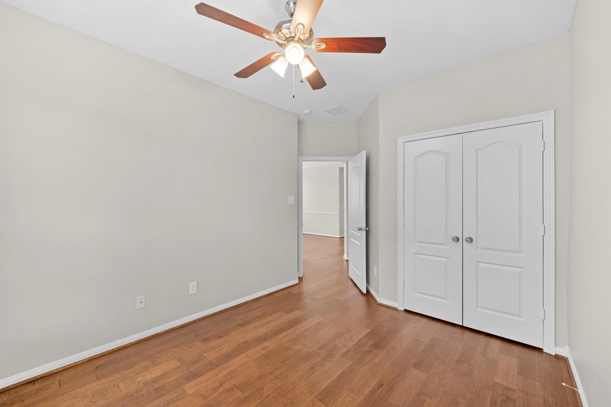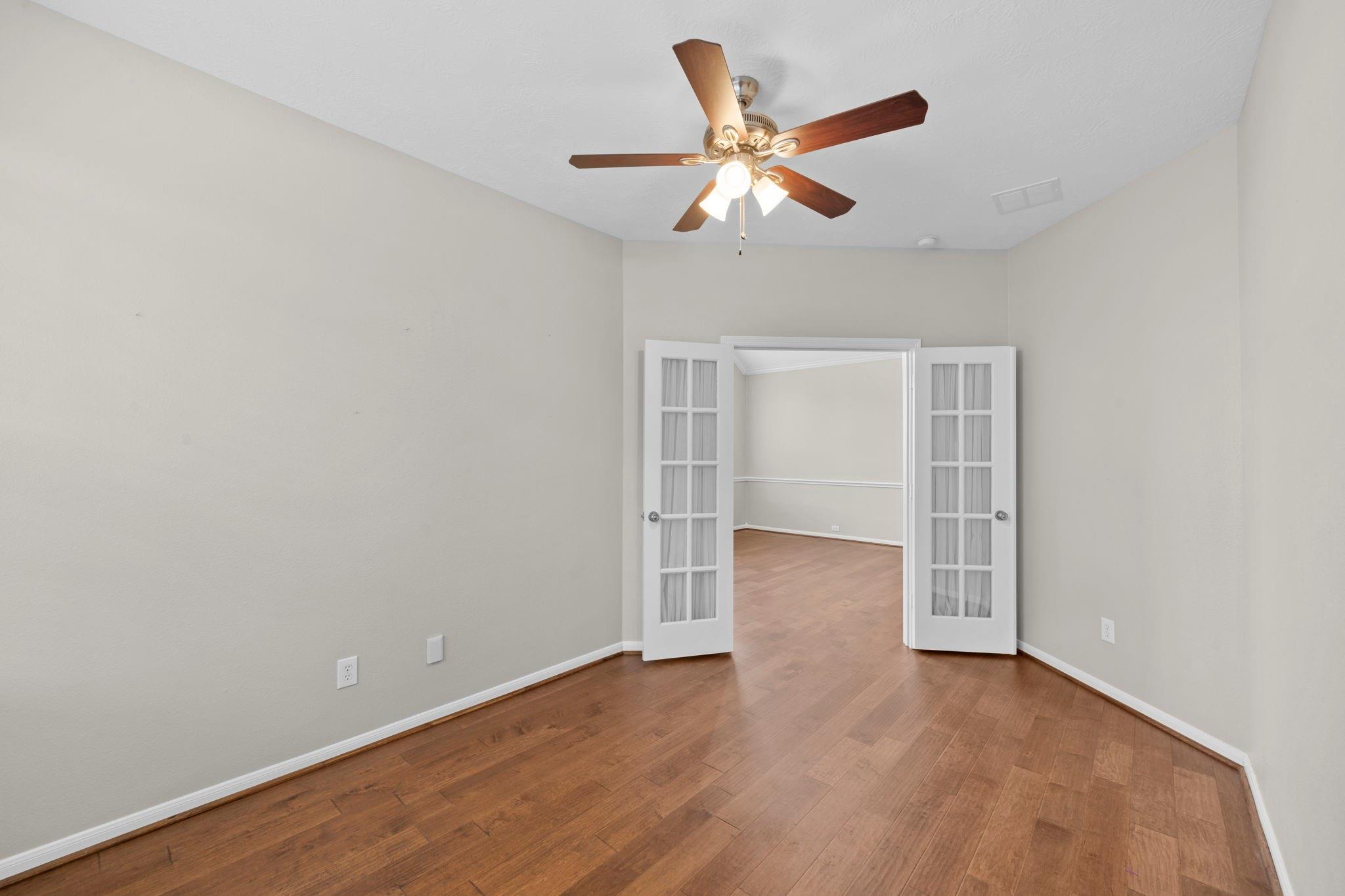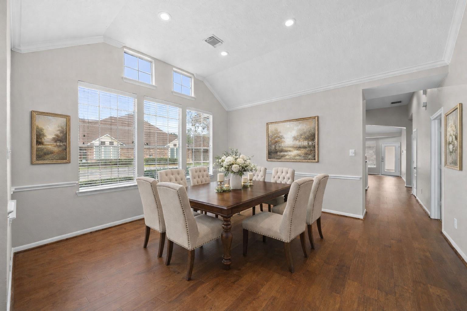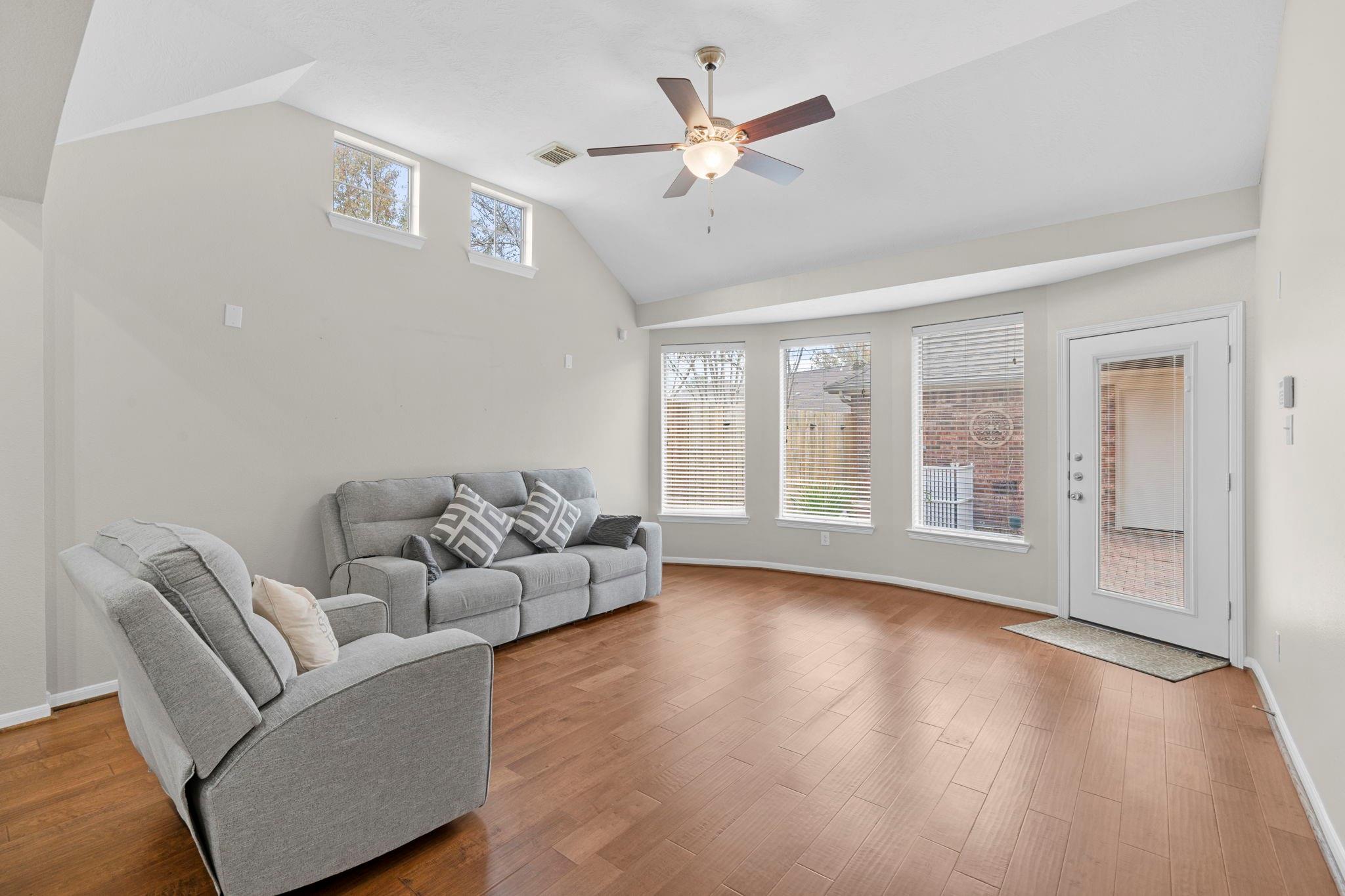This gorgeous single-level home is truly move-in ready! Recent upgrades include fully remodeled primary & secondary baths & an updated utility room with new cabinets, flooring, & plumbing. The home features two bedrooms plus a private home office, perfect for remote work. Hardwood flooring throughout creates a seamless, elegant flow, & high ceilings enhance the spacious feel. The kitchen offers upgraded cabinetry with pull-out shelves, built-in oven, gas cooktop, raised dishwasher, pull-out trash, deep storage access, & a large walk-in pantry. The primary suite includes an accent wall and a beautifully remodeled bath with new cabinets, countertops, sinks, faucets, mirrors, & tile. Enjoy a private rear patio, sprinkler system, & a rare 3-car detached garage—ideal for a low-maintenance, lock-and-leave lifestyle with close proximity to I 10 & the Energy Corridor. This gated community offers amazing amenities including walking trails, pool, & ample guest parking. Schedule a showing toda