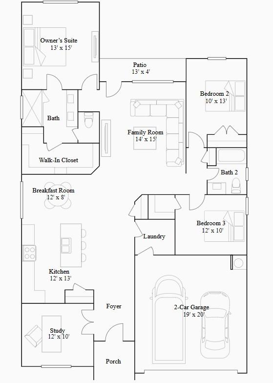 First FloorFamily Room:14x15Kitchen:12x13Breakfast:12x8Primary Bedroom:13x15Bedroom:10x13Bedroom 2:12x10Home Office/Study:12x10