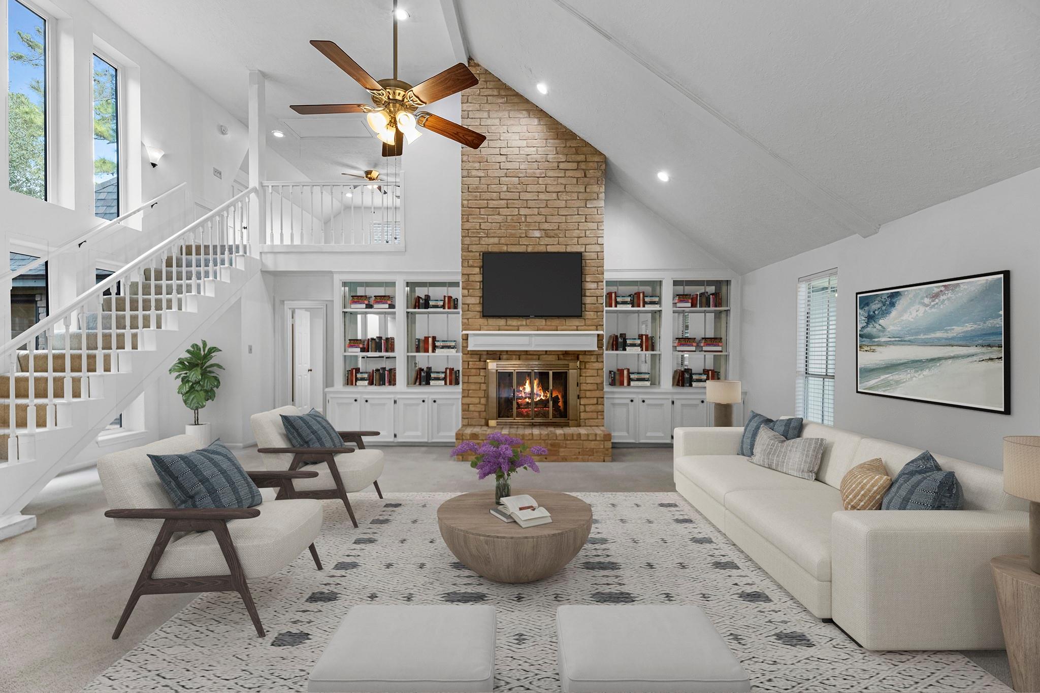 InteriorFireplace:1/Gaslog Fireplace,Wood Burning FireplaceBathroom Description:Full Secondary Bathroom Down,Hollywood Bath,Primary Bath: Separate Shower,Secondary Bath(s): Tub/Shower ComboBedroom Desc:2 Bedrooms Down,1 Bedroom Up,Primary Bed - 1st FloorKitchen Desc:Breakfast Bar,Pantry,Walk-in PantryRoom Description:1 Living Area,Breakfast Room,Entry,Formal Dining,Gameroom Up,Kitchen/Dining Combo,Living Area - 1st Floor,Loft,Media,Utility Room in HouseHeating:Central GasCooling:Central ElectricDishwasher:YesMicrowave:Yes