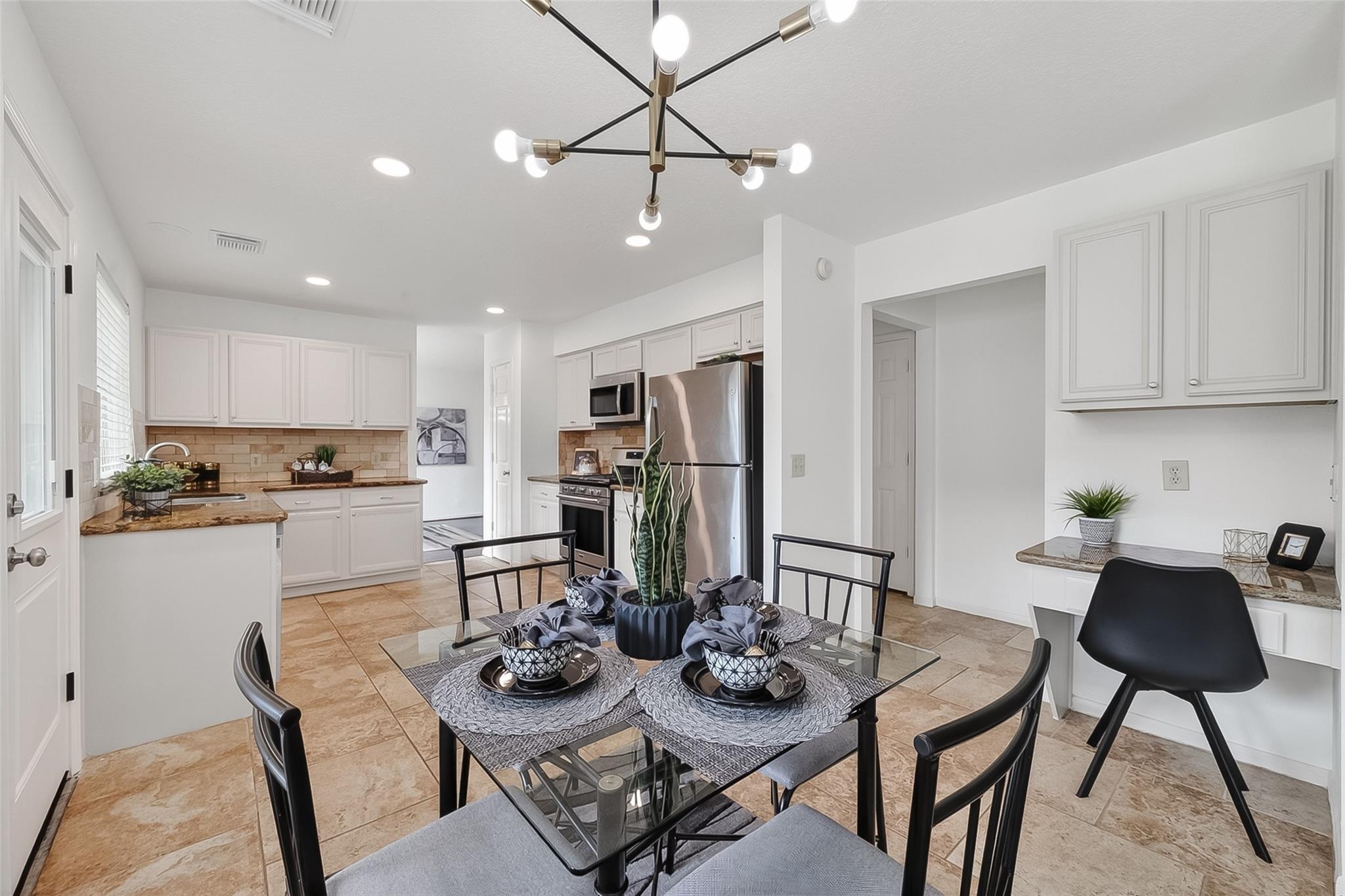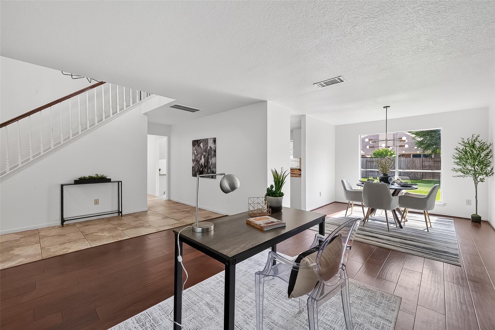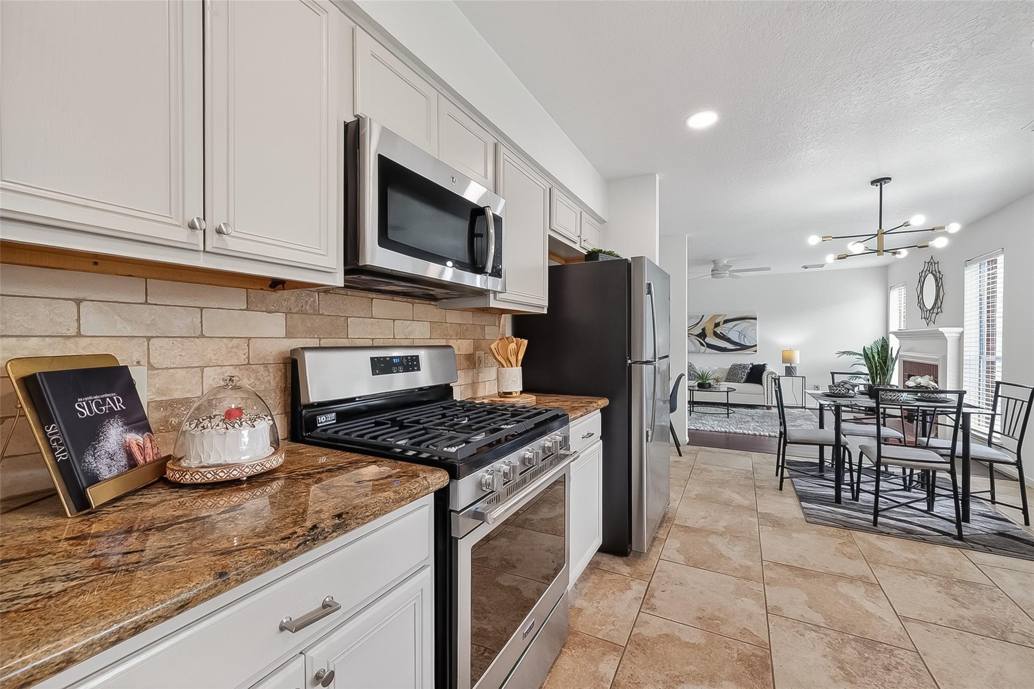 Charming home in the highly sought-after Cinco Ranch community! This impeccably maintained, move-in-ready home features fresh paint throughout, beautiful hard flooring on the first floor, brand-new carpet, updated lighting and hardware, and new ceiling fans. The kitchen shines with granite countertops, stainless steel appliances, a new stove, and a convenient built-in desk. Enjoy the versatility of the layout, offering a formal living area at the entrance that can easily serve as a home office, along with a dedicated formal dining space. The home also boasts updated bathrooms with quartz countertops and a sleek glass shower door. Step outside to a covered patio deck—perfect for relaxing or entertaining. The property also includes an oversized garage, providing ample space for storage or a workshop. Ideally located near major commute routes, shopping, dining, and Cinco Ranch’s exceptional community amenities, including parks and pools, this home truly is a gem.