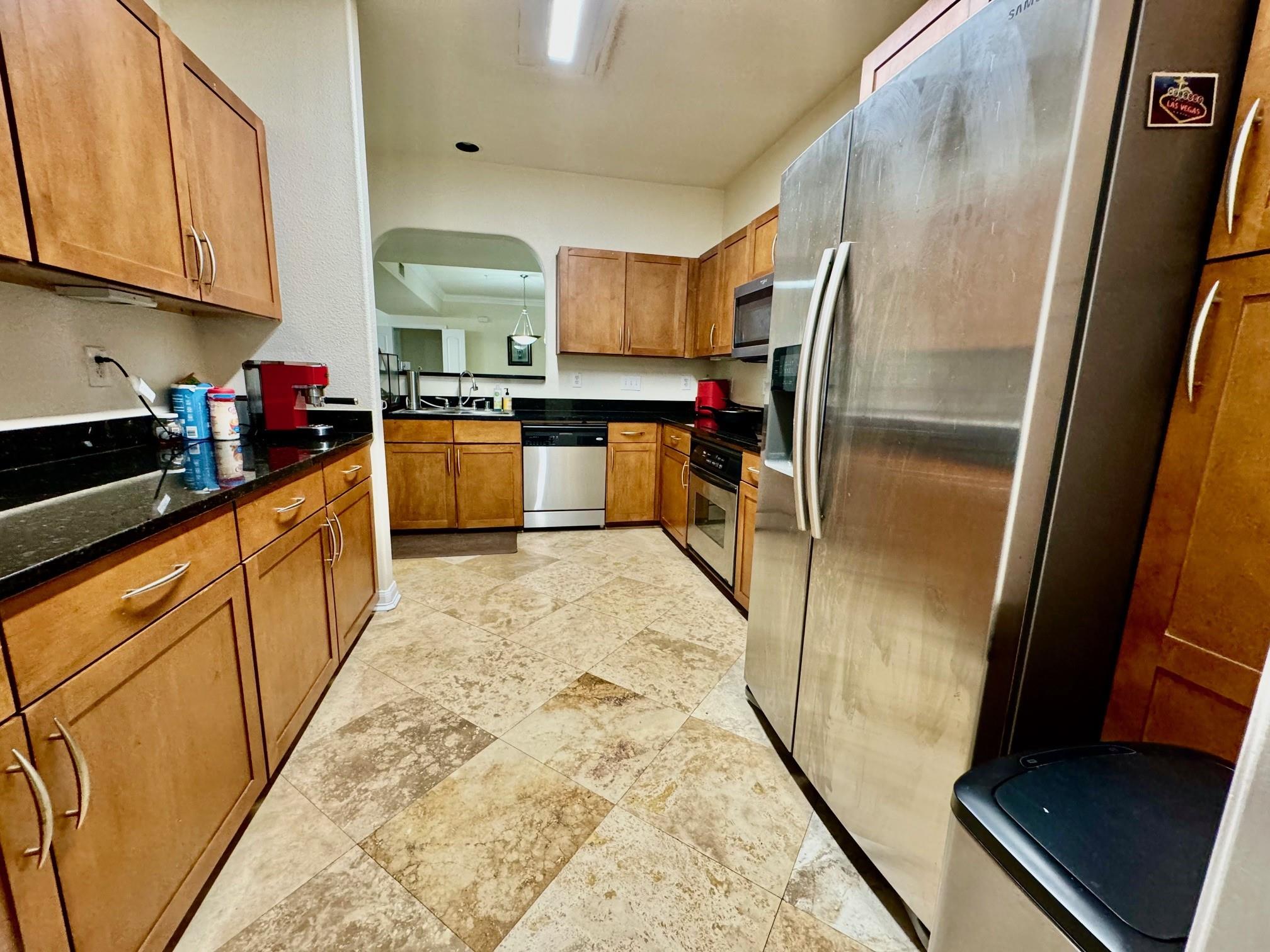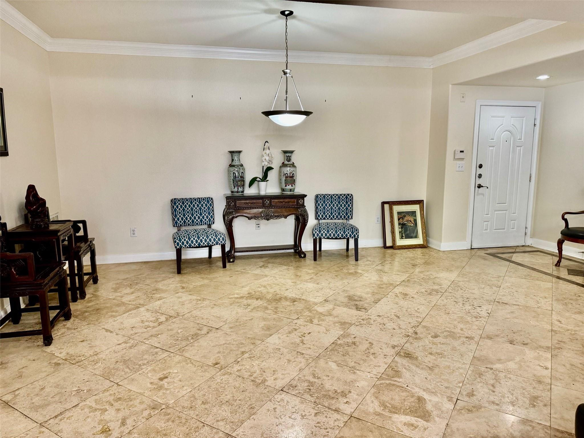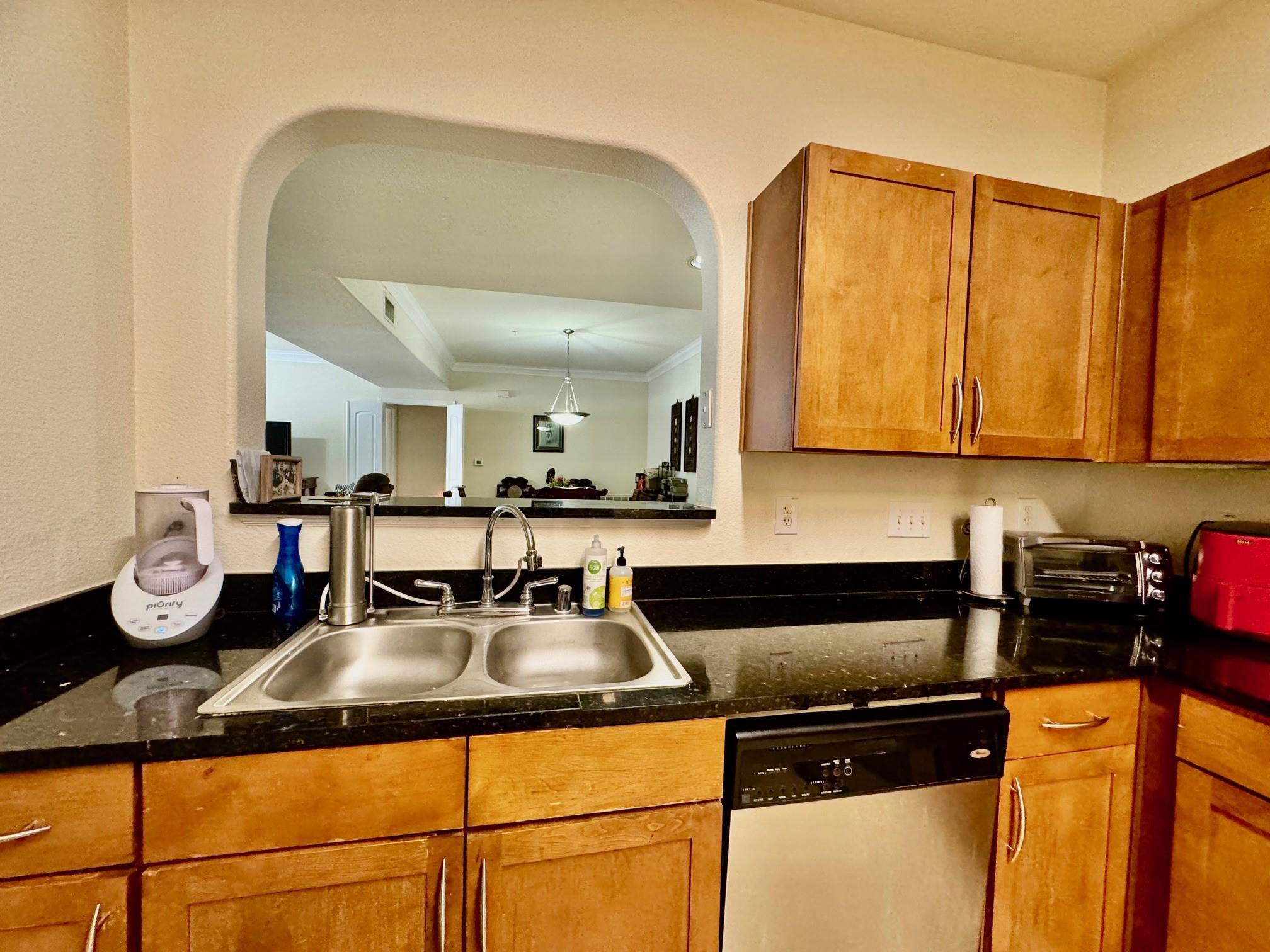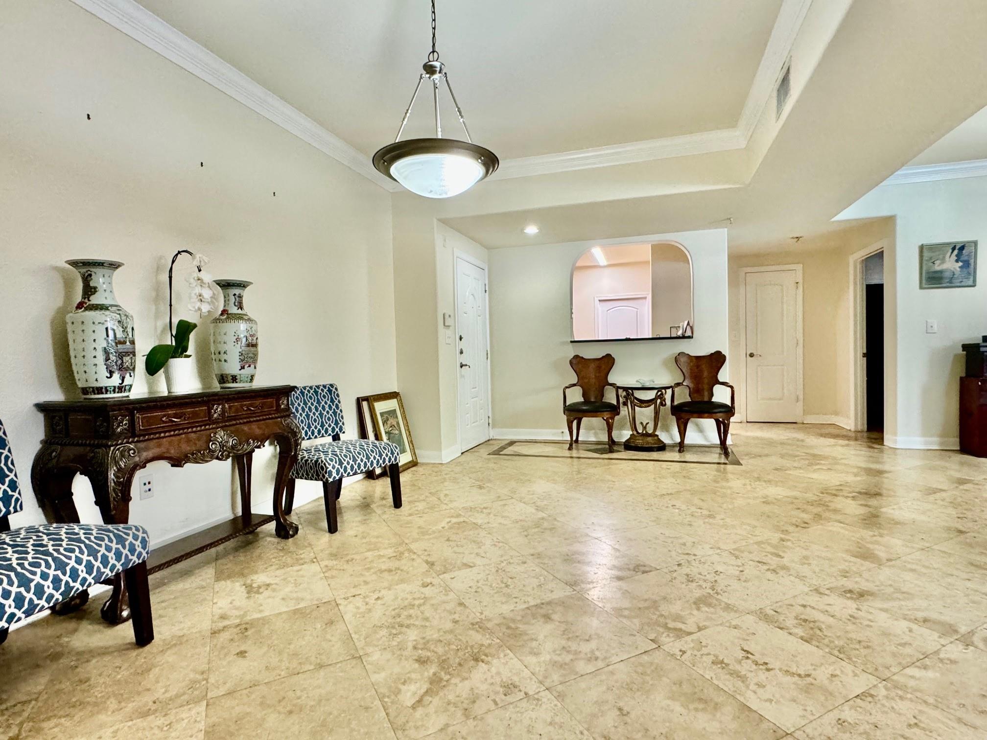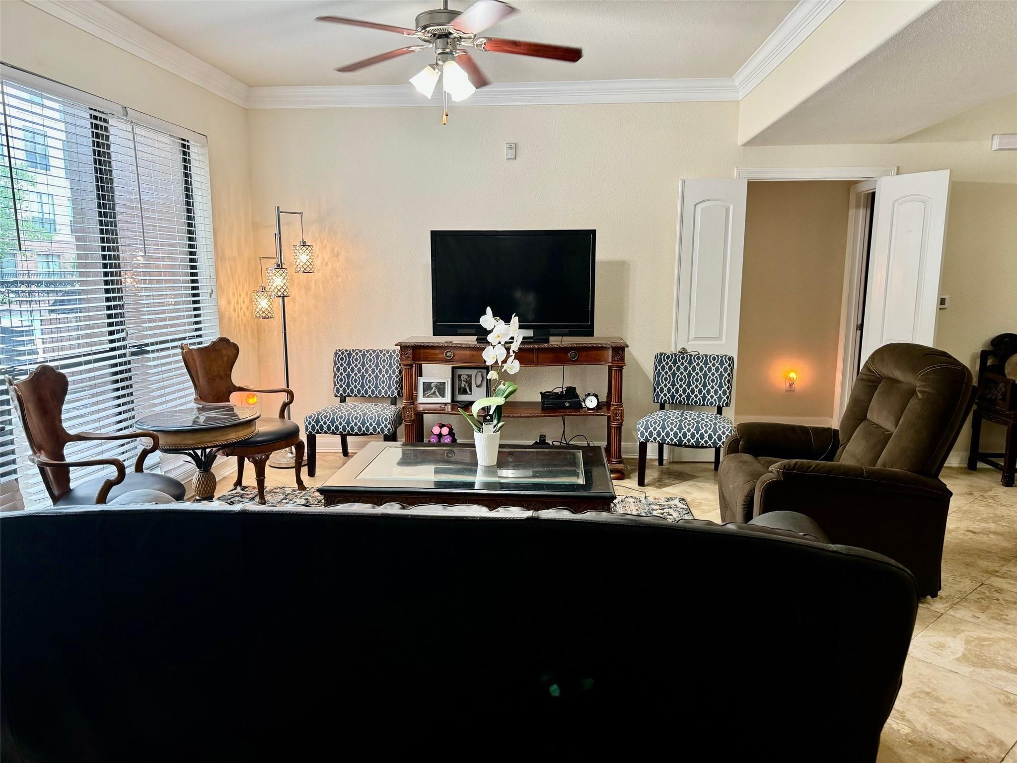 Luxury condominium located in the heart of Sugar Land, gated with upscaled resort type of amenities. Large unit with spacious living and dining areas, 2 bedrooms each has its own bathroom. View of the spectacular waterfall pool from living room and bedrooms, area courtyard from your private balcony. Extra-large kitchen with granite countertops, plenty of counter and cabinets space. Utility room offers washer/dryer and more counter and storage spaces. New Hot water heater/microwave in 2024. Common areas feature living room with electric fireplace and TV, dining tables, bar, full kitchen, meeting room and on-site theater. Enjoy the convenience of major freeways and easy access to shops, restaurants & bars, City Hall, First Colony Mal, nightlife and entertainment at the Sugar Land Town Square! Excellent Fort Bend schools. Low property tax. unit has two assigned parking spaces.