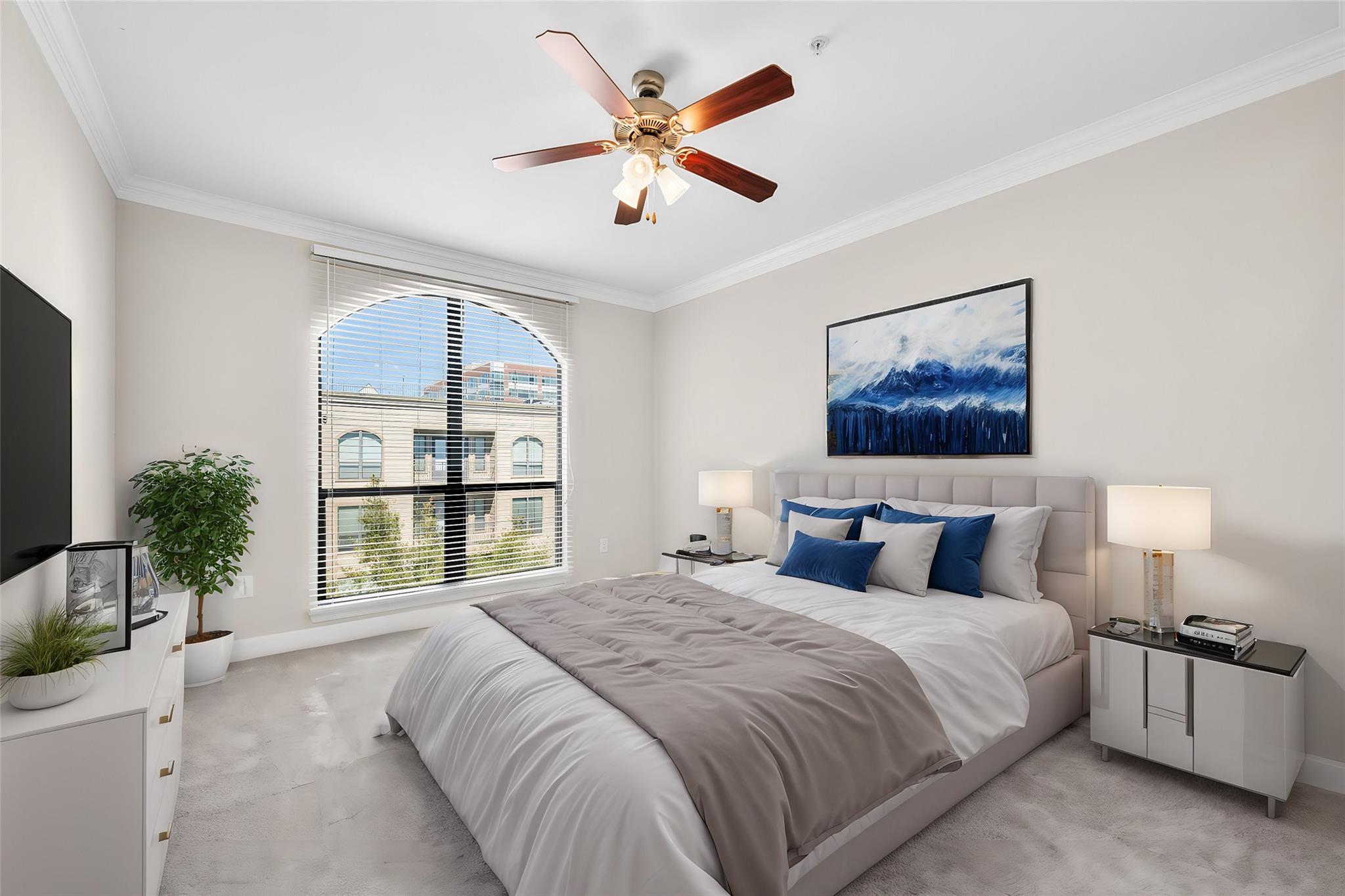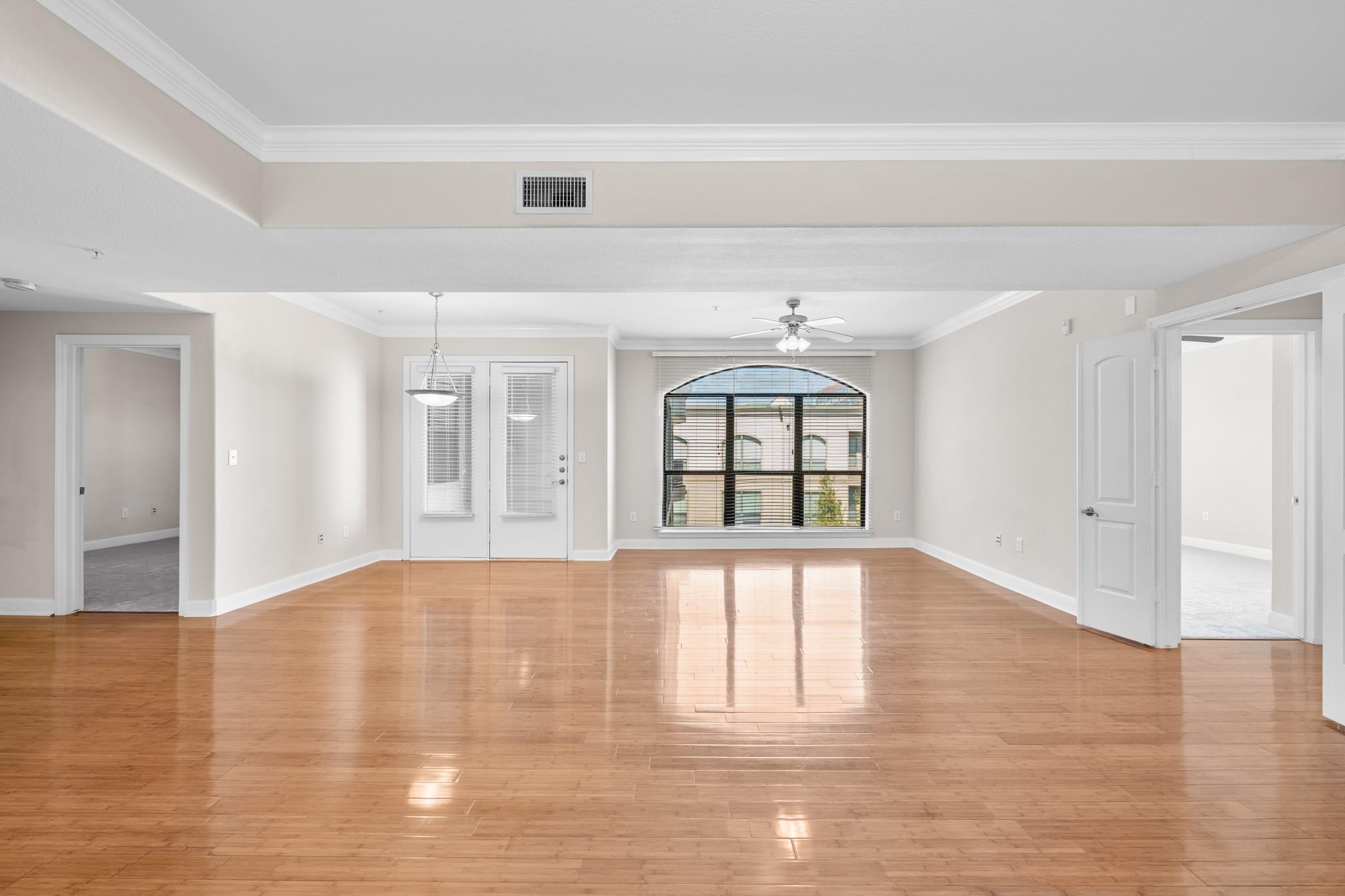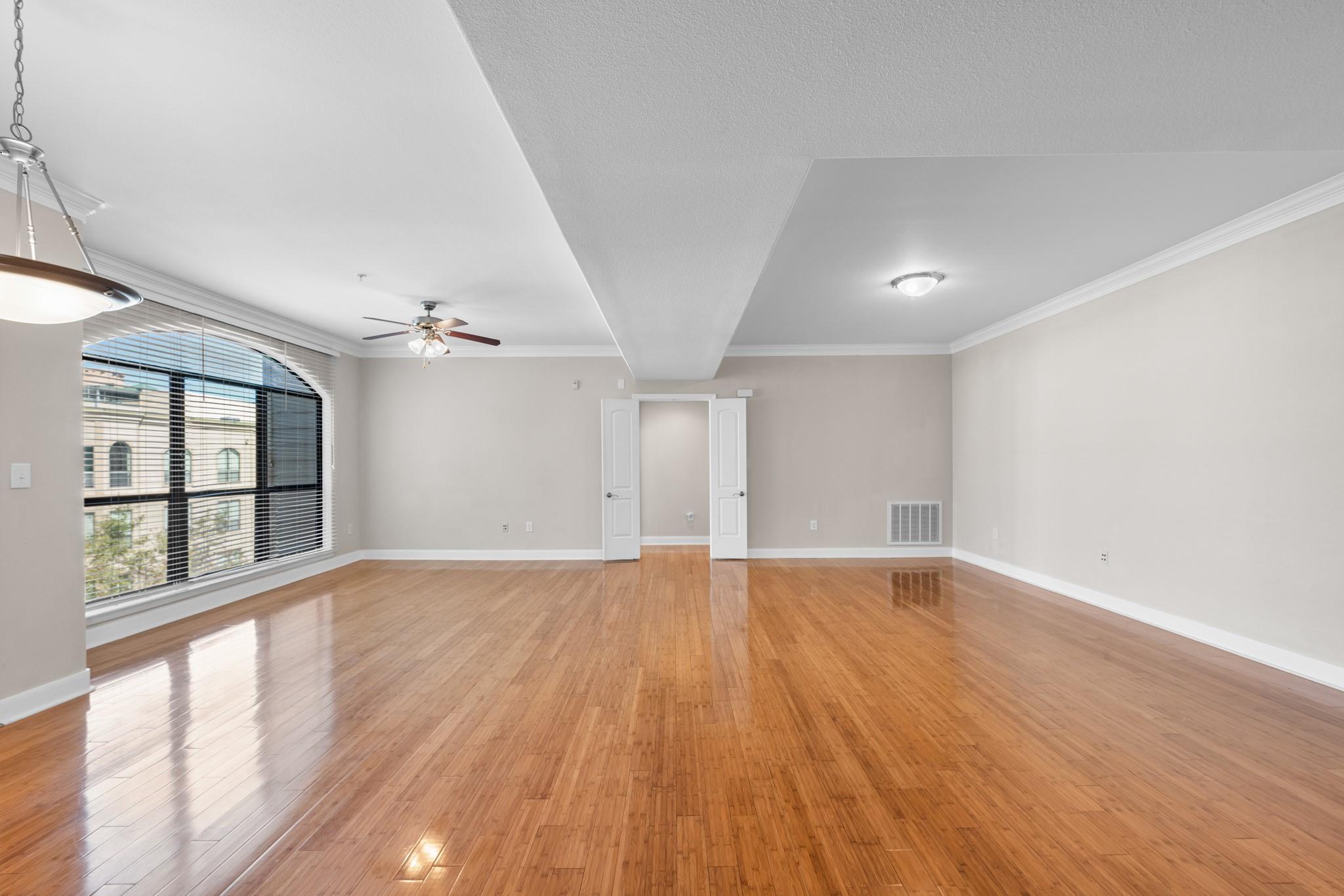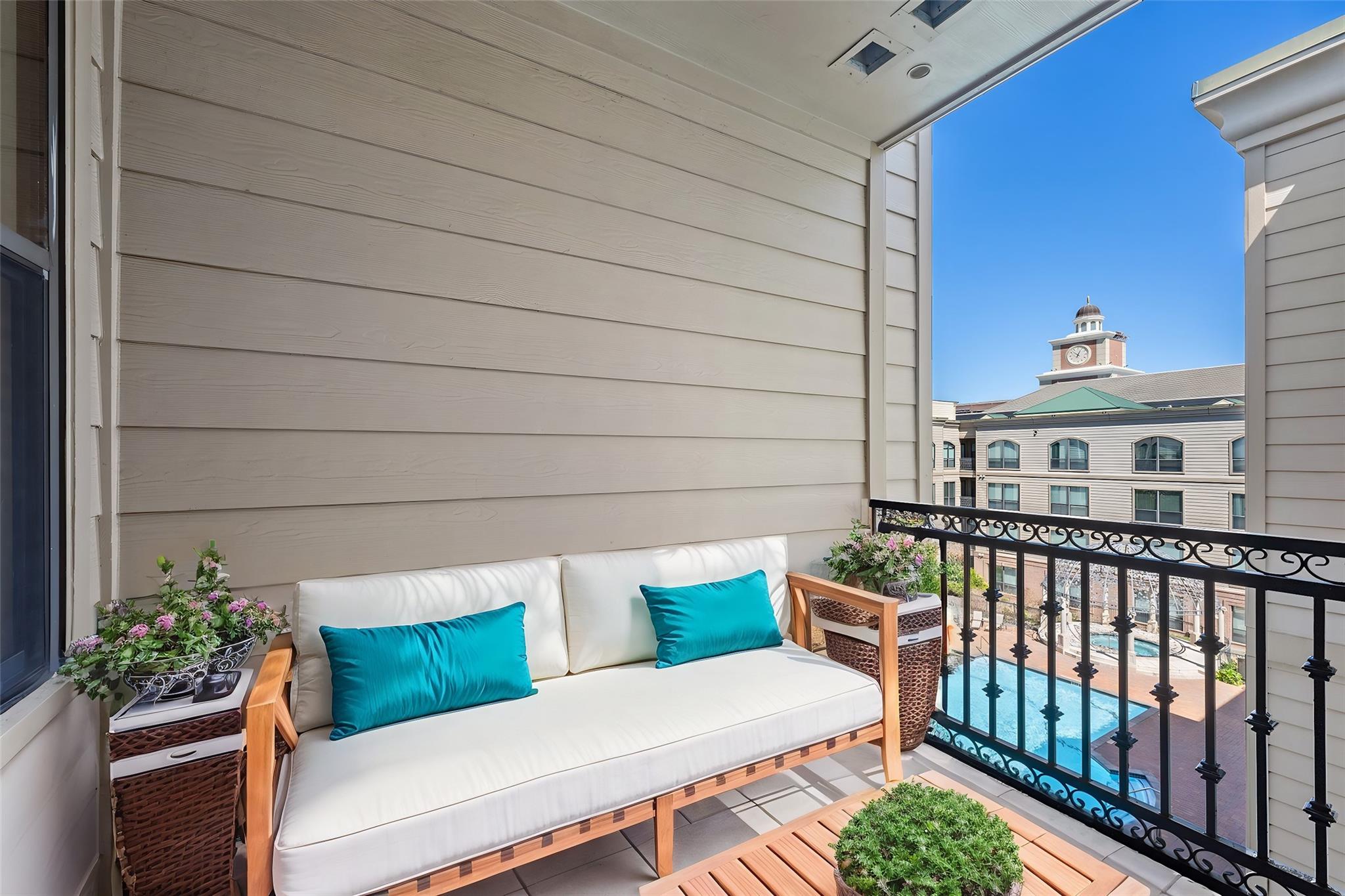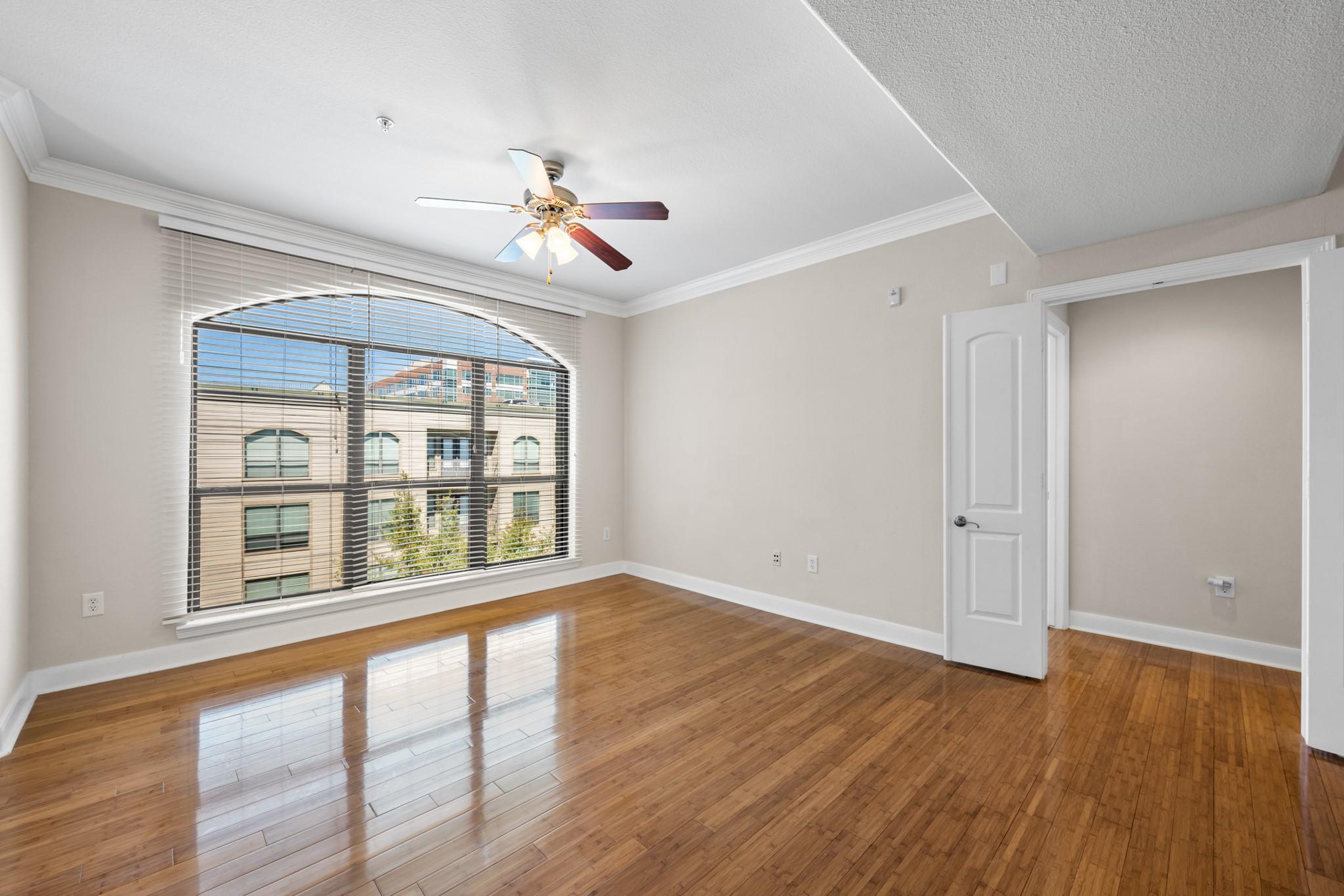 Experience luxury living in this exceptional 4th-floor City Plaza condo overlooking the POOL, featuring 1,478 SF of refined space with 2 bedrooms, each boasting its own bathroom. Stunning bamboo flooring flows through the bright, open-concept living and dining areas, enhancing the modern, elegant aesthetic. Step outside onto your private balcony to enjoy peaceful views overlooking the resort-style pool, with unmatched privacy from having no neighbors above. The kitchen comes fully equipped with appliances, including a fridge, ready for your culinary adventures, while the adjacent utility room offers a washer and dryer. Convenience are prioritized with gated access and two assigned parking spaces in the private garage. As a resident of City Plaza, enjoy access to fantastic amenities such as a resort-style pool, a relaxing spa, Party room, club house with TV, Conference room, Theater room with 15 reclining seats. 2nd, 3rd, and 4th floor patio seating
