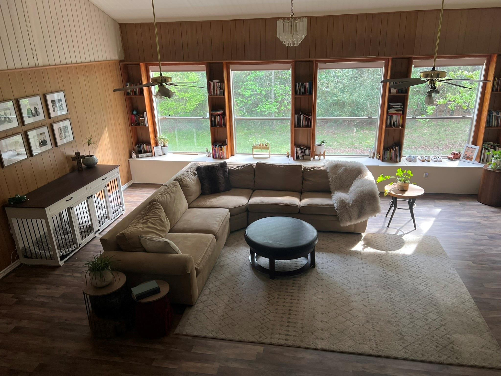 Spacious three-story townhouse offering approximately 1,788 square feet with 2 bedrooms and 2.5 bathrooms. This home features an open living area with high ceilings, large windows that bring in tons of natural light, and a cozy wood-burning fireplace. An attached two-car garage provides convenient parking and storage, while a private fenced patio offers a great spot to relax outdoors. Located in the golf course community of Panorama Village, residents can enjoy nearby neighborhood amenities and easy access to I-45.