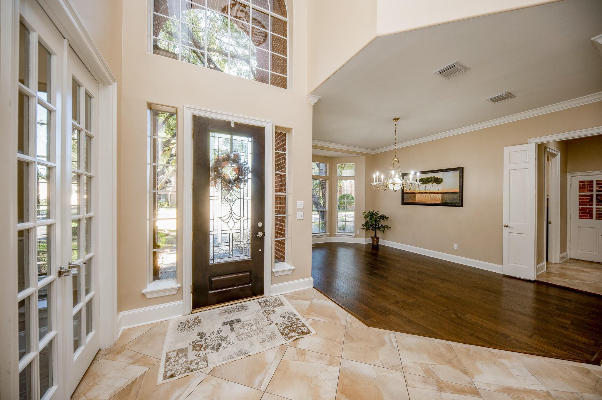 Exquisite 5-bedroom home in a highly desirable gated community! Grand entry with soaring ceilings and formal dining, perfect for entertaining. Recent updates include fresh interior paint, new wood flooring, and tile in main areas. Private office/flex room with French doors. Spacious living room with fireplace opens to a chef’s kitchen featuring new granite countertops, tile backsplash, soft-close cabinets, and island. Remodeled first-floor primary suite offers a luxurious bath with soaking tub, separate shower, and walk-in closet with built-ins. Secondary bedroom with full bath on first floor, ideal for guests. Upstairs includes new carpet, large game room with built-ins, spacious secondary bedrooms, and additional flex room. Step outside and unwind in your private backyard oasis featuring a Texas-sized spa with a relaxing waterfall, large covered patio, and plenty of green space for entertaining. New roof 4/2025!