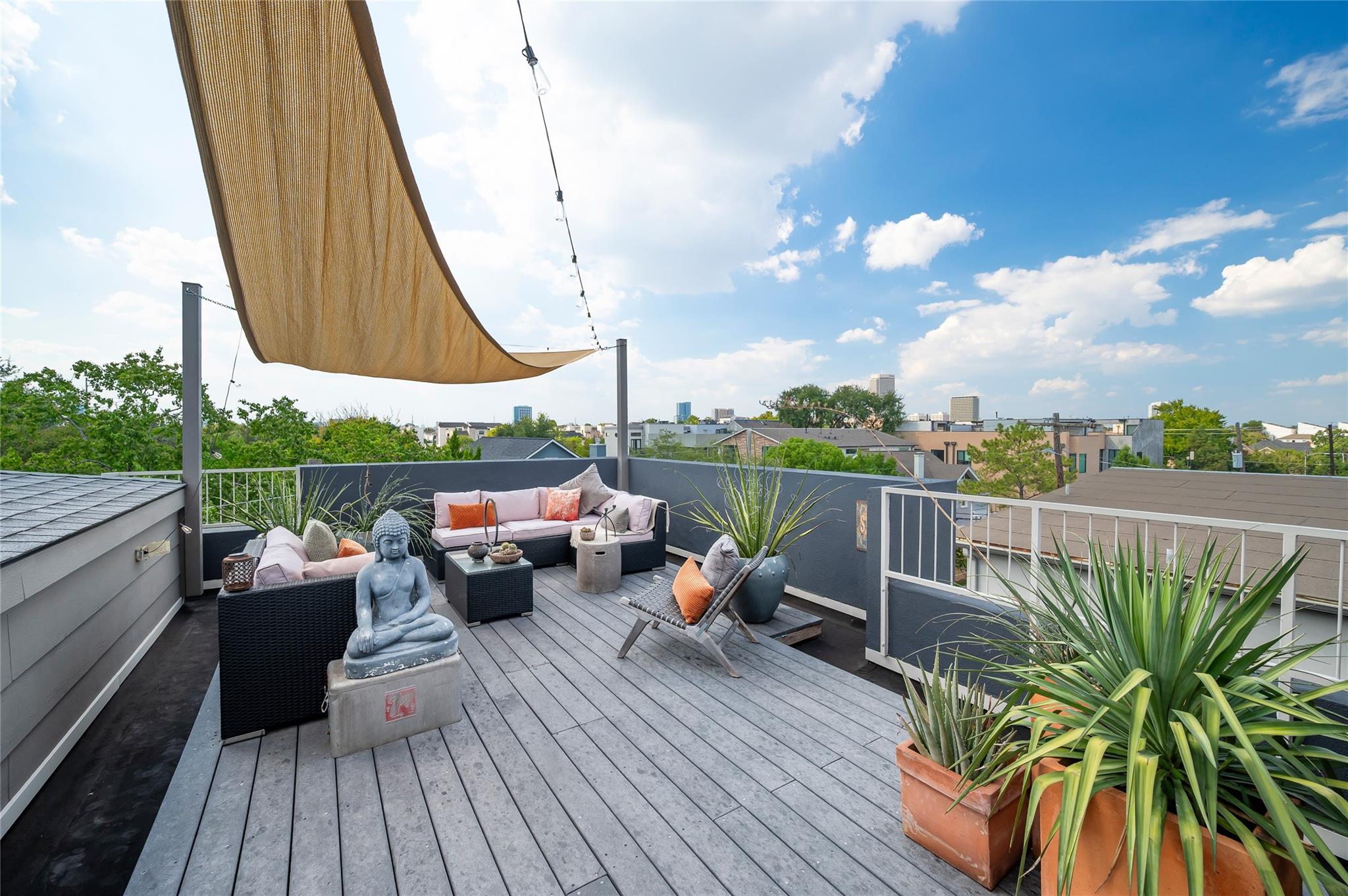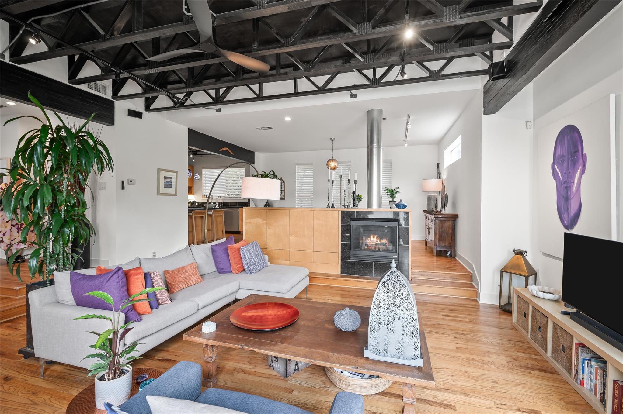 2303 Whitney #A offers the perfect blend of privacy and an unbeatable location. A first-floor bedroom with full en-suite bath provides flexibility for guests or a home office. On the second floor, rich hardwoods, abundant natural light, and high ceilings create an airy yet inviting feel. The living area flows into the dining space and well-appointed kitchen with stainless steel appliances, generous cabinetry, and a breakfast bar. Upstairs, the primary suite is a true retreat with a large walk-in closet and a beautifully appointed bath with dual sinks, soaking tub, and separate shower. Thoughtful updates include new Low-E windows in the living room and primary bedroom, a new roof (2024), and HVAC (2025). Enjoy a private rooftop deck with Downtown views, all just moments from parks, dining, shopping, and everything the city has to offer.