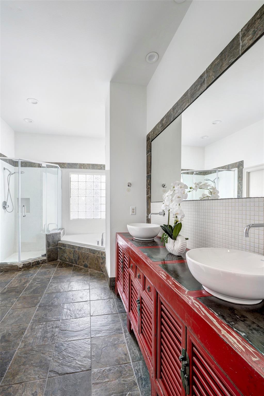 InteriorFireplace:1/Gaslog FireplaceFloors:Slate,Tile,WoodCountertop:Butcher BlockBathroom Description:Half Bath,Primary Bath: Double Sinks,Primary Bath: Jetted Tub,Primary Bath: Separate Shower,Secondary Bath(s): Separate ShowerBedroom Desc:2 Bedrooms Up,All Bedrooms Up,En-Suite Bath,Walk-In ClosetKitchen Desc:Pantry,Pots/Pans Drawers,Under Cabinet LightingRoom Description:Family Room,Kitchen/Dining Combo,Living/Dining Combo,Utility Room in HouseHeating:Central GasCooling:Central ElectricWasher/Dryer Conn:YesDishwasher:YesDisposal:YesCompactor:NoMicrowave:YesRange:Gas RangeOven:Gas OvenIce Maker:NoAppliances:Dryer Included,Electric Dryer Connection,Full Size,Refrigerator,Washer IncludedEnergy Feature:Ceiling FansInterior:Balcony,High Ceiling,Refrigerator Included,Window Coverings