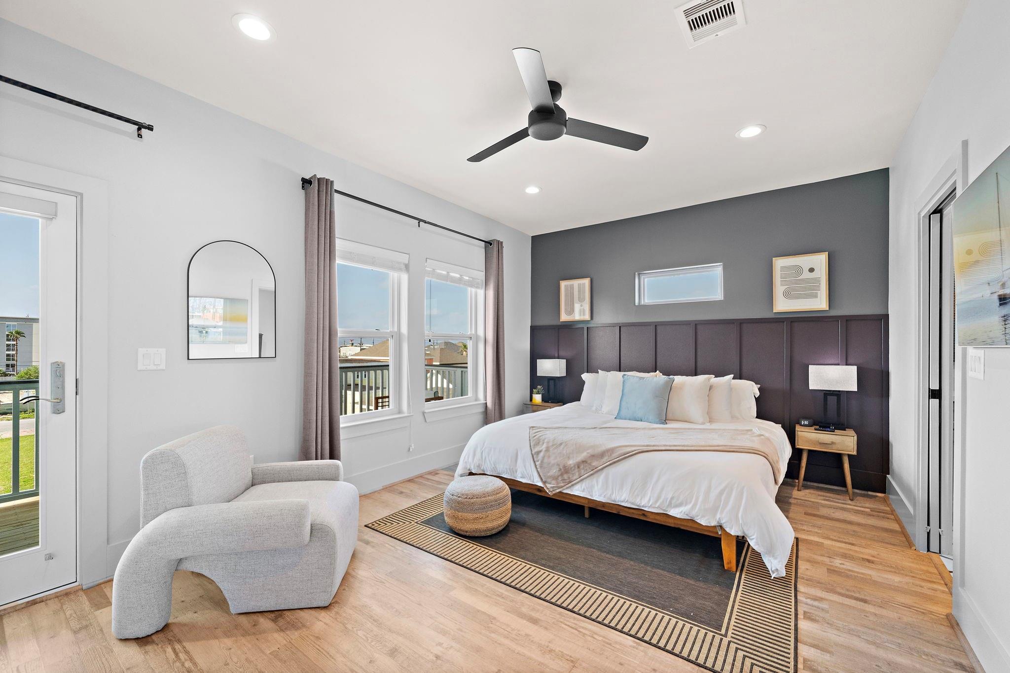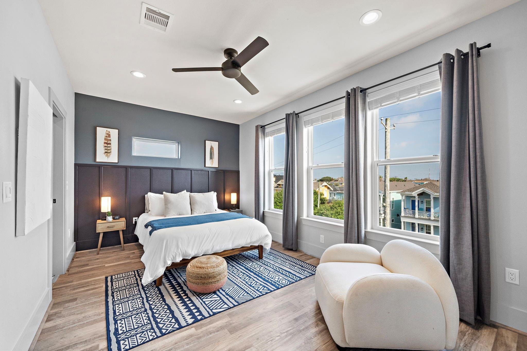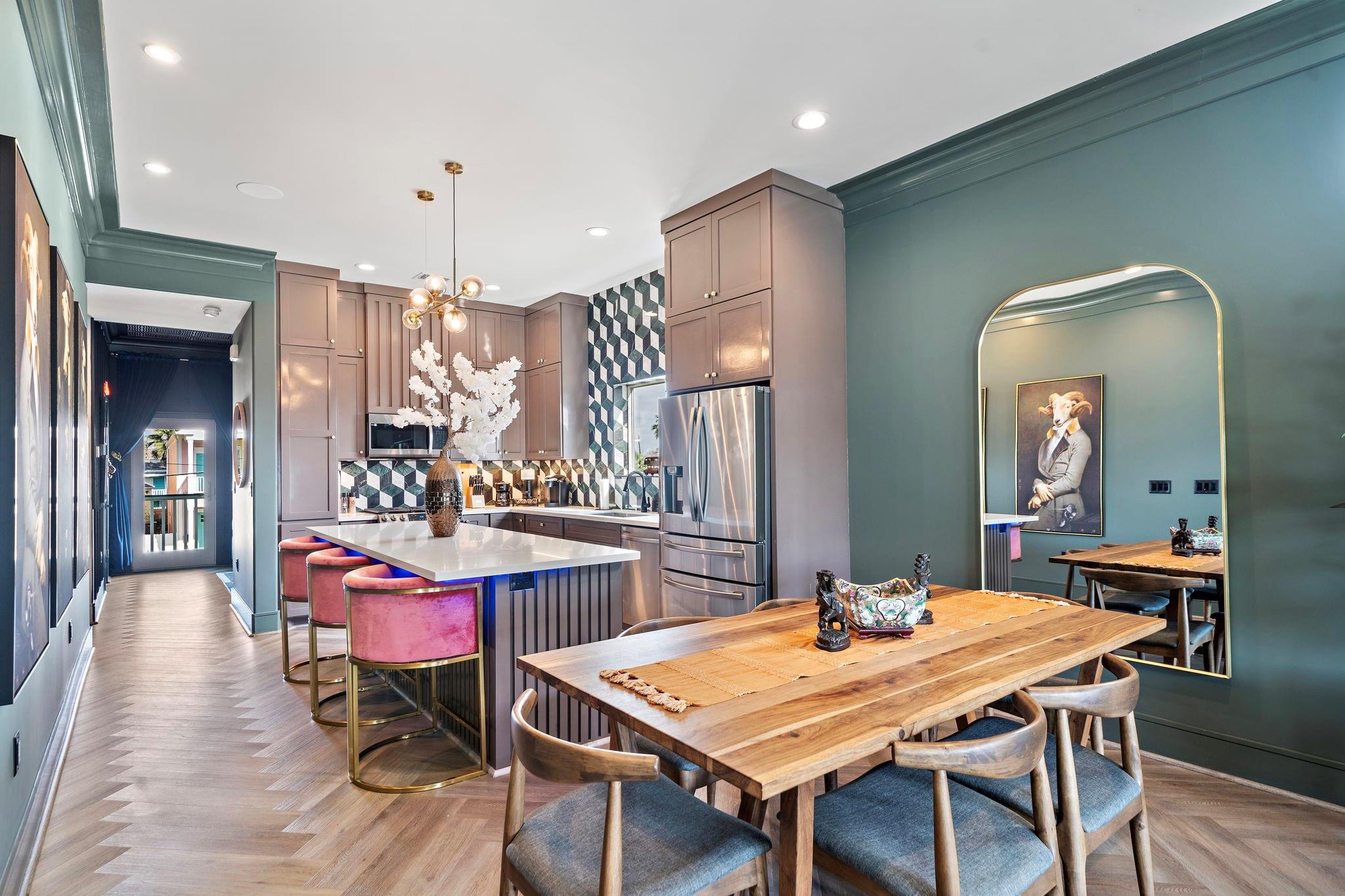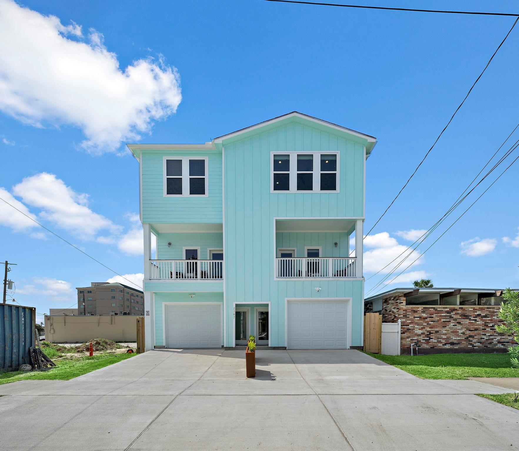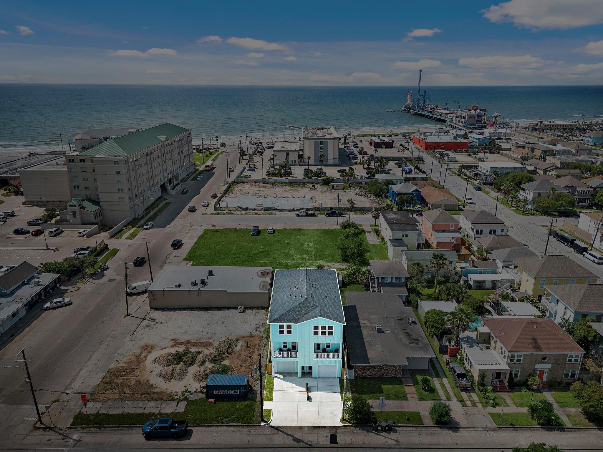Luxury duplex just a 5-minute walk from the Pleasure Pier, beach, and downtown Galveston! Each side offers 4 bedrooms, 3.5 baths, tall ceilings, 2 primary suites, spacious closets, and a bonus room—sold fully furnished and separately metered. Unit A features a heated pool with waterfall, outdoor bar, gym, and speakeasy-style wet bar. Unit B offers a spacious backyard with hot tub and game room. Each unit boasts four balconies—front and rear—with stunning views of the beach, Pleasure Pier, and cruise ships from the 3rd-floor guest suite. Built with storm-rated windows and doors, LVP herringbone floors, marble tile, and quartz countertops. A turn-key, income-producing property perfect for Airbnb or luxury coastal living in one of Galveston’s most desirable locations! Close location to UTMB, Downtown, Beach, Perfect for short term rental, LTR, Resident Nurse rental.