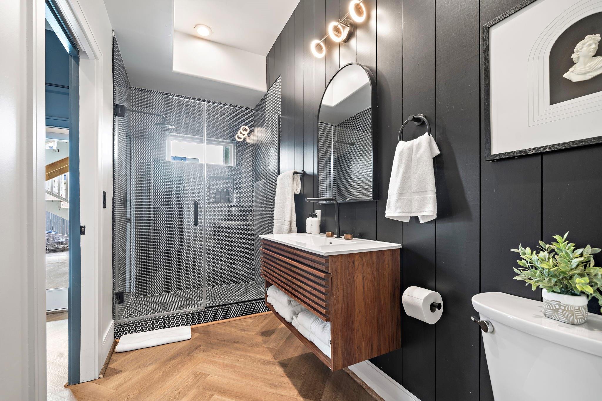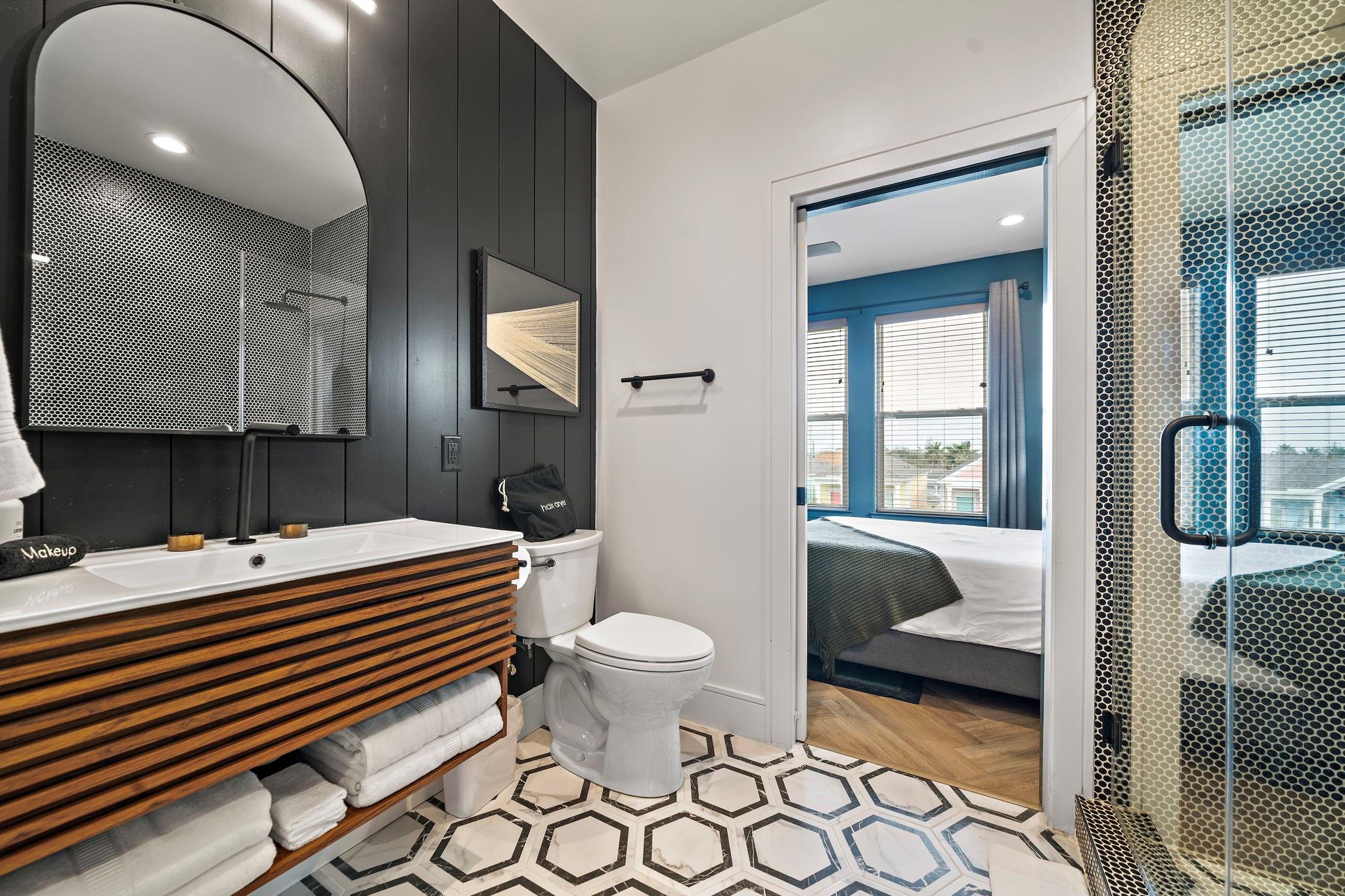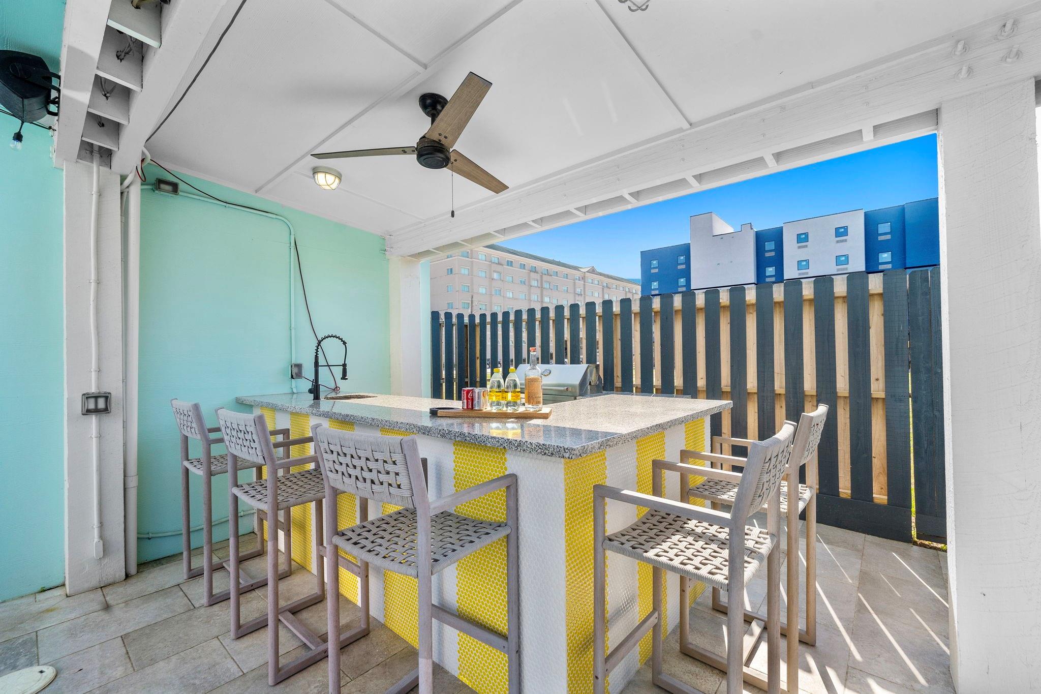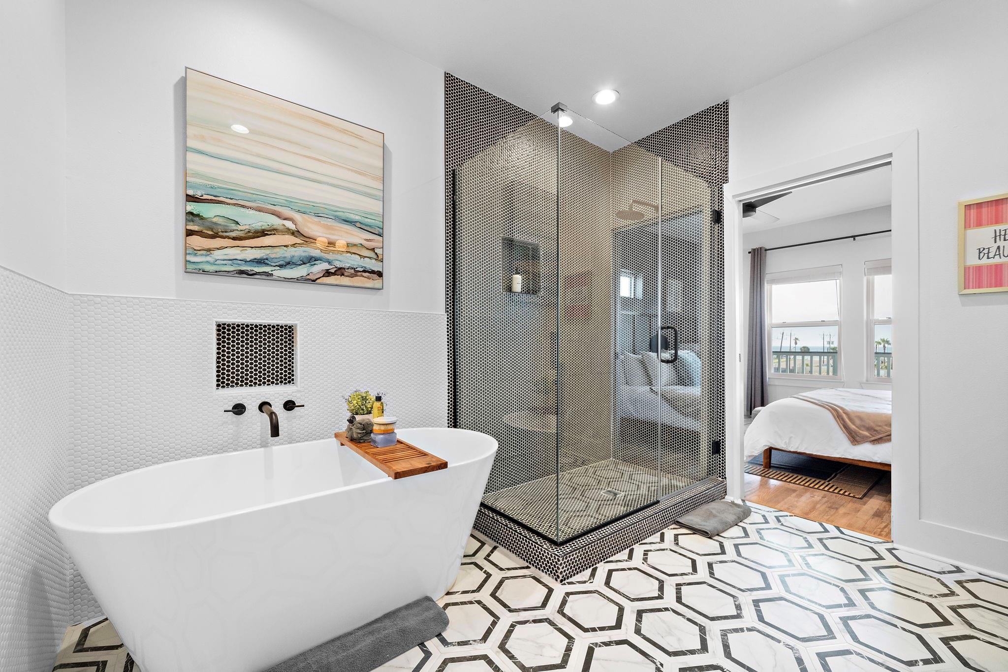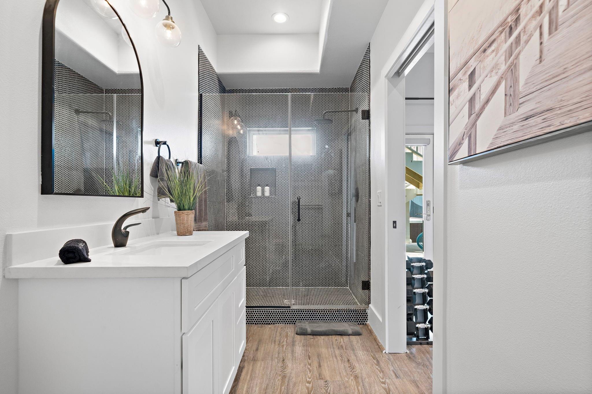 Luxury duplex just a 5-minute walk from the Pleasure Pier, beach, and downtown Galveston! Each side offers 4 bedrooms, 3.5 baths, tall ceilings, 2 primary suites, spacious closets, and a bonus room—sold fully furnished and separately metered. Unit A features a heated pool with waterfall, outdoor bar, gym, and speakeasy-style wet bar. Unit B offers a spacious backyard with hot tub and game room. Each unit boasts four balconies—front and rear—with stunning views of the beach, Pleasure Pier, and cruise ships from the 3rd-floor guest suite. Built with storm-rated windows and doors, LVP herringbone floors, marble tile, and quartz countertops. A turn-key, income-producing property perfect for Airbnb or luxury coastal living in one of Galveston’s most desirable locations! Close location to UTMB, Downtown, Beach, Perfect for short term rental, LTR, Resident Nurse rental.