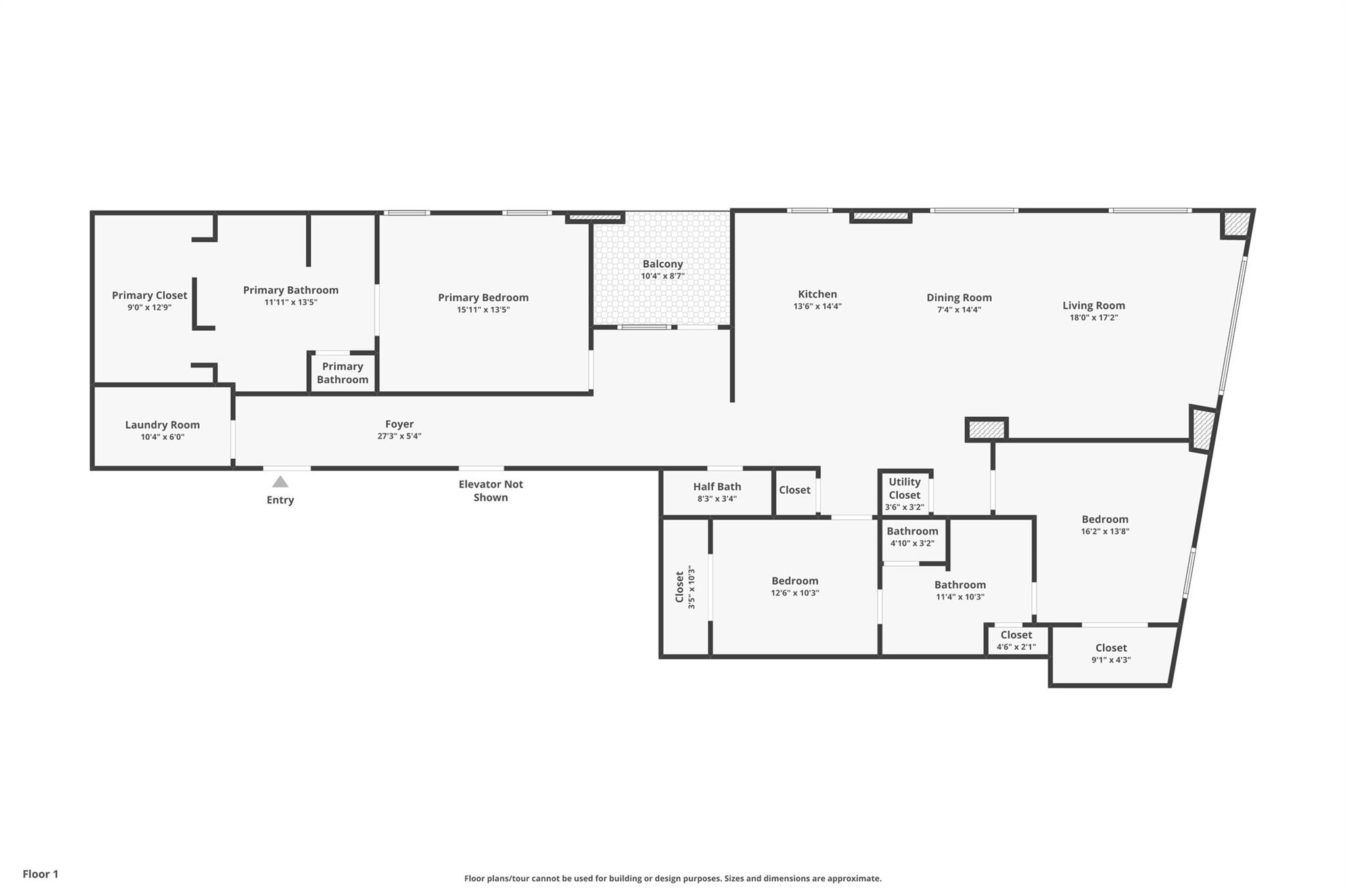 First FloorLiving:18x17Dining:7x14Kitchen:134x14Primary Bedroom:16x14Bedroom:16x14Bedroom 2:13x10Primary Bath:12x14Utility Room:10x6Entry:27x5