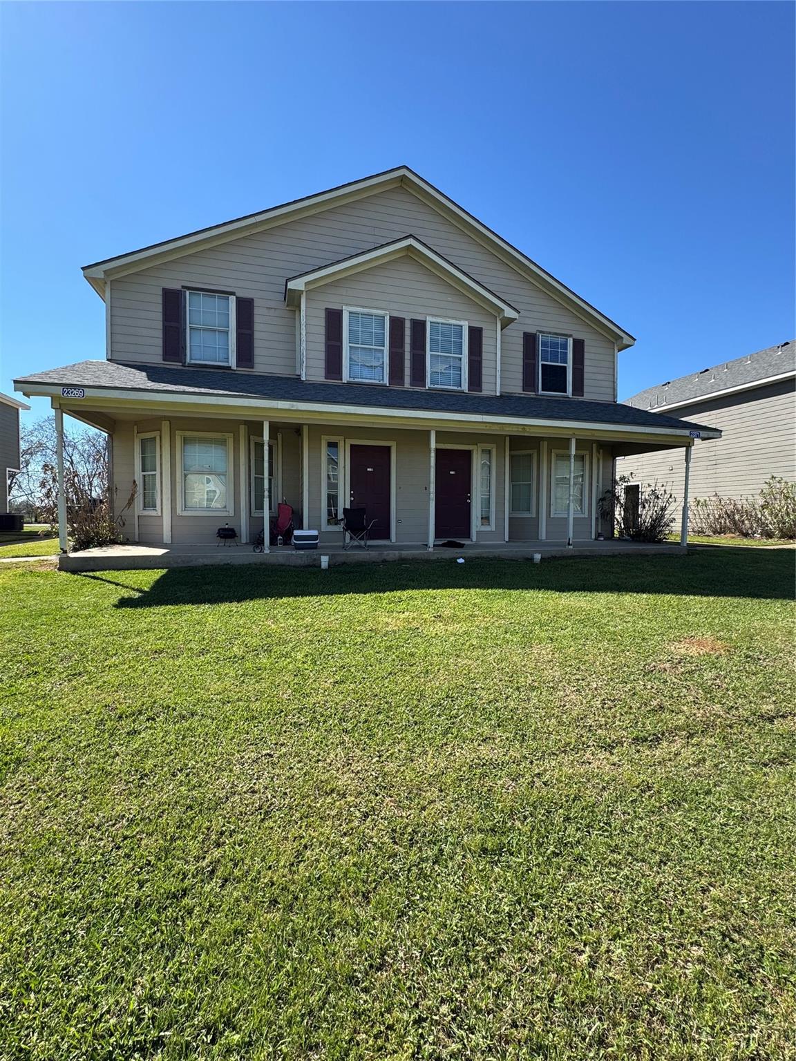Great Investment Opportunity Near Prairie View A&M! Duplex designed for student living featuring 4 bedrooms and 4.5 baths per unit, with each bedroom offering its own private bathroom and furnished with a bed and dresser. Each unit includes a large shared living area that is partially furnished, breakfast bar kitchen with refrigerator, washer, and dryer, plus a shared half bath for guests. Floor plan includes one bedroom downstairs and three upstairs. Flooring features ceramic tile in living and wet areas, with carpet or vinyl in bedrooms and carpeted stairs. Each side provides four parking spaces. School bus stop for pick-up and drop-off and onsite manager. Conveniently located near Hwy 290 with a convenience store nearby, making it ideal for busy Prairie View A&M students.