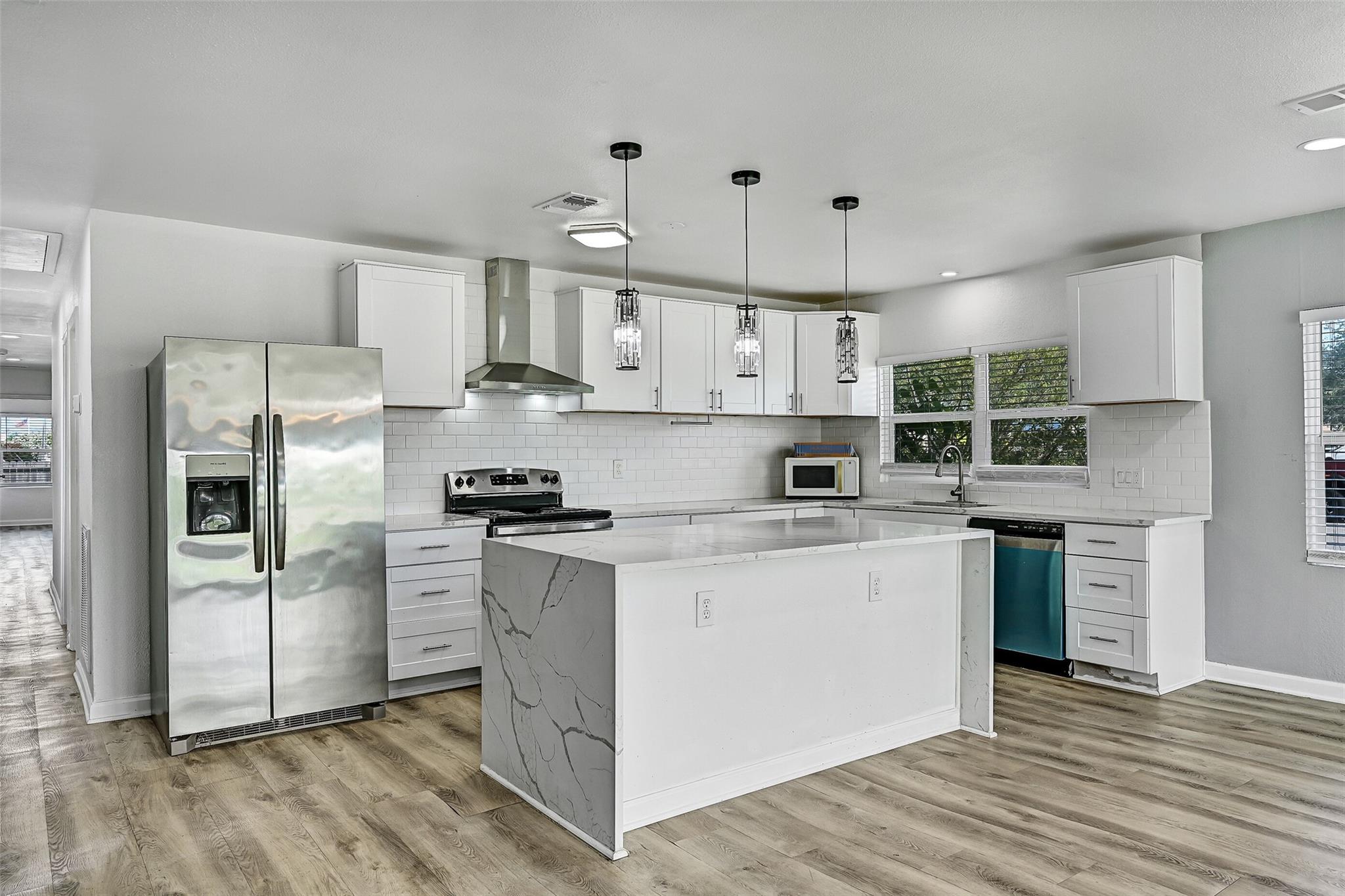 /monthLOCATION LOCATION LOCATION! Up for immediate availability is this UPDATED & modernized 3 bedroom with flex room (possible 4th bedroom) 2 bath home centrally located in Galveston. Modern updates to include a show-stopper bright open kitchen with sparkling quartz countertops, abundance of white shaker cabinetry, easy cleanup LVP flooring throughout (no carpet!), central heat & A/C, & stainless appliances. Abundance of windows let in a lot of natural light. Flex room with a separate entrance with it's own minisplit unit would be a perfect home gym or office - or even a 4th bedroom. Washer & dryer as well as refrigerator included! Feel the Gulf breezes from your oversized fenced back yard and deck spaces. Enjoy being a short bike ride away from the BEACH, grocery stores, & restaurants! Just minutes from Galveston's historic downtown, cruise terminals, restaurants, shopping, UTMB, A&M, & Galveston College. Easy access to Broadway which takes you to I-45. **Pets case by case**